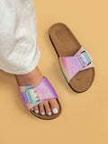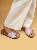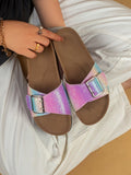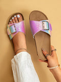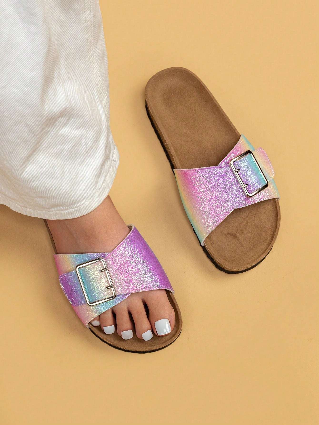 Sparkling Summer: Women's Multi-Color Cork Sandals with Glitter Buckle