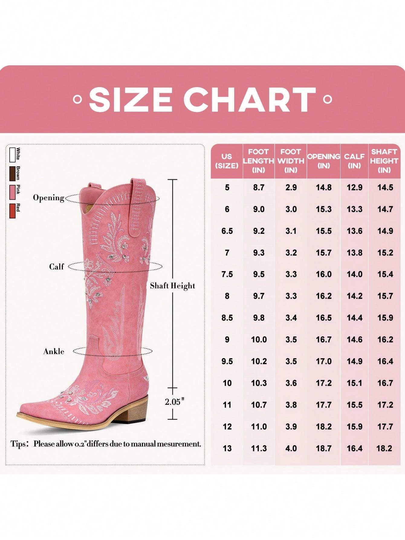 These Sparkly Rhinestone Western Cowboy Boots are a perfect addition to any wardrobe. With a retro knee-high vintage style and classic embroidery, these boots are sure to make a statement. The chunky heel provides both style and comfort, making them perfect for any occasion.