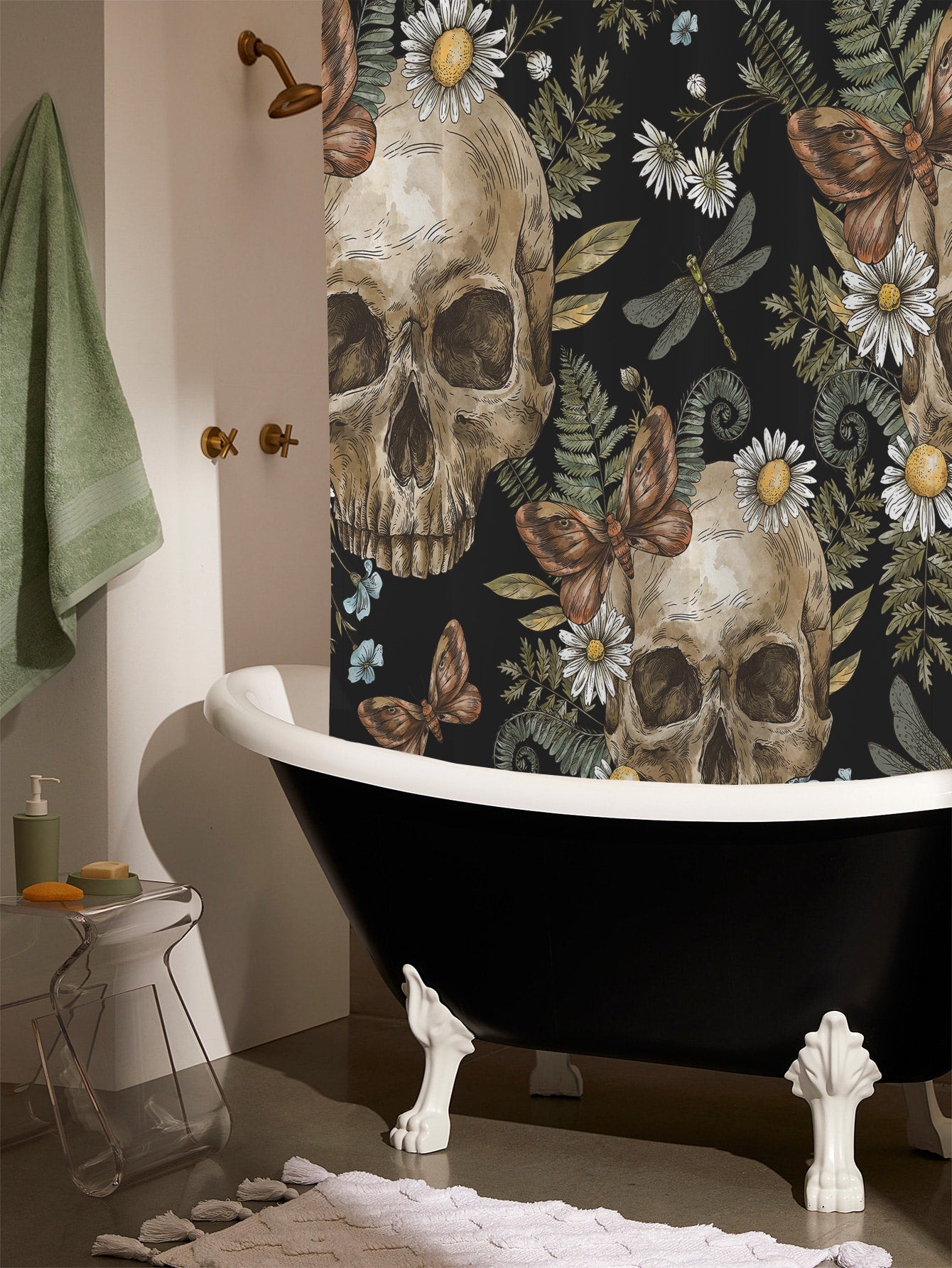 Splish Splash Skulls: Waterproof Shower Curtain with Floral Pattern