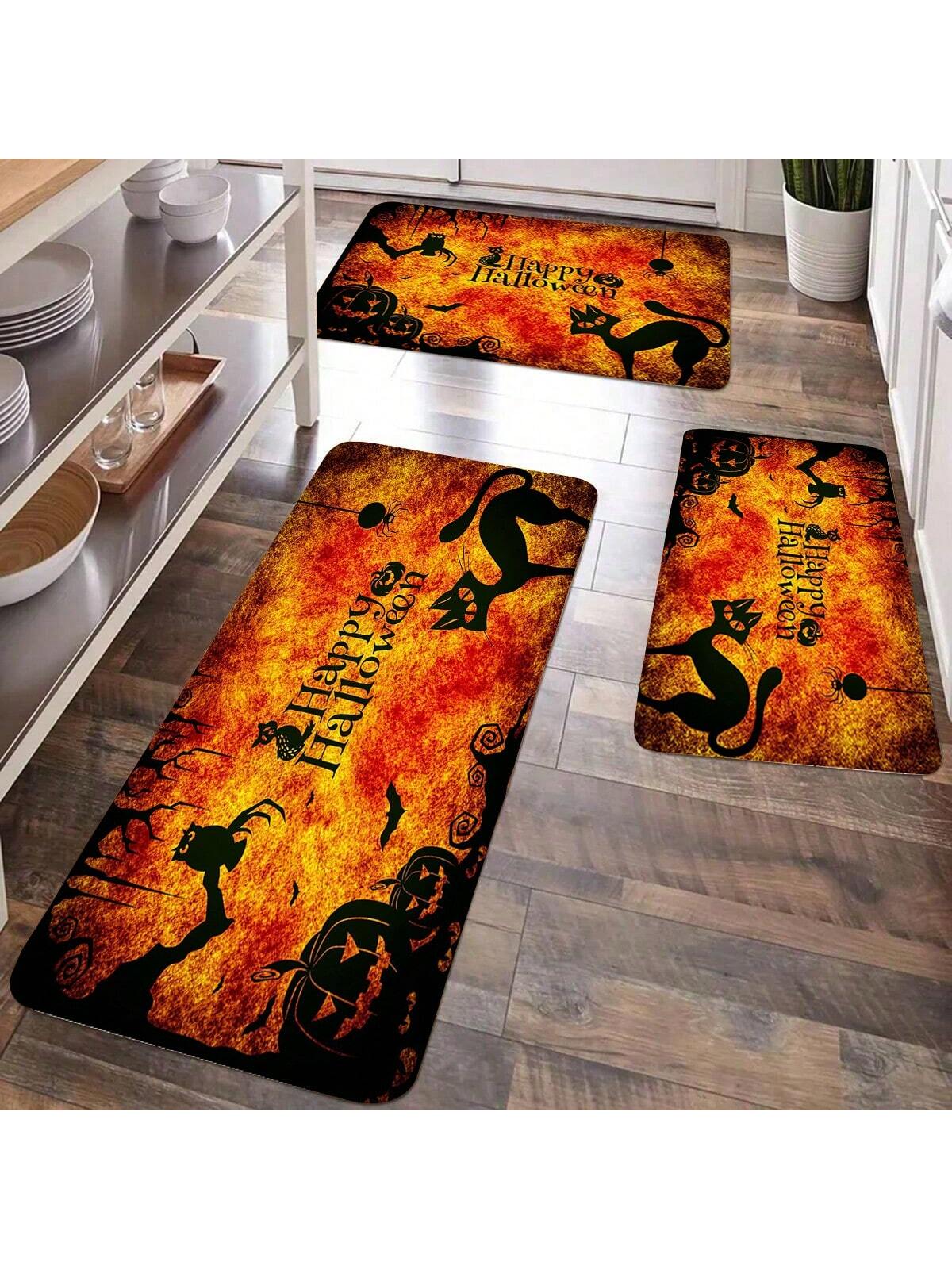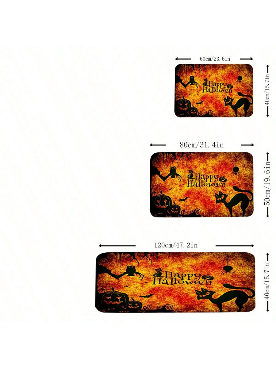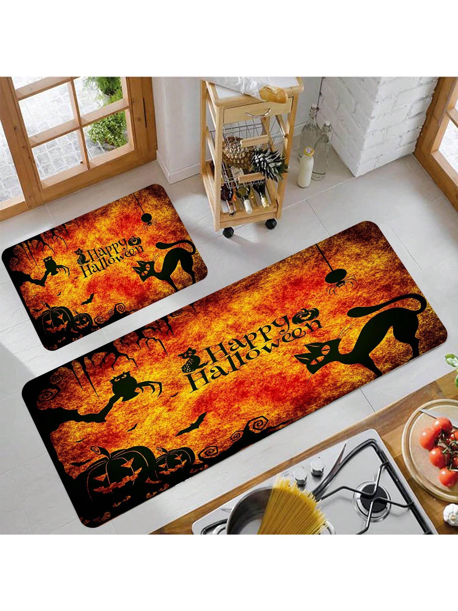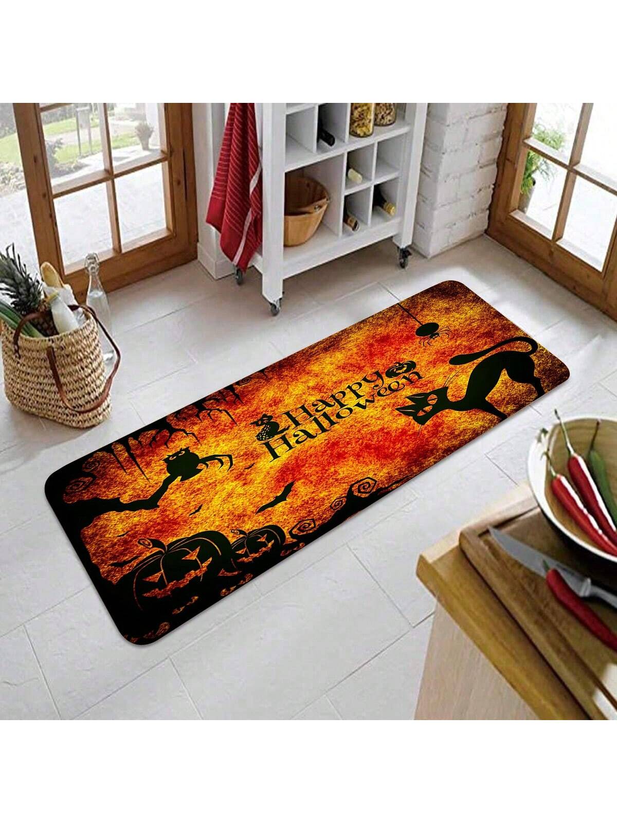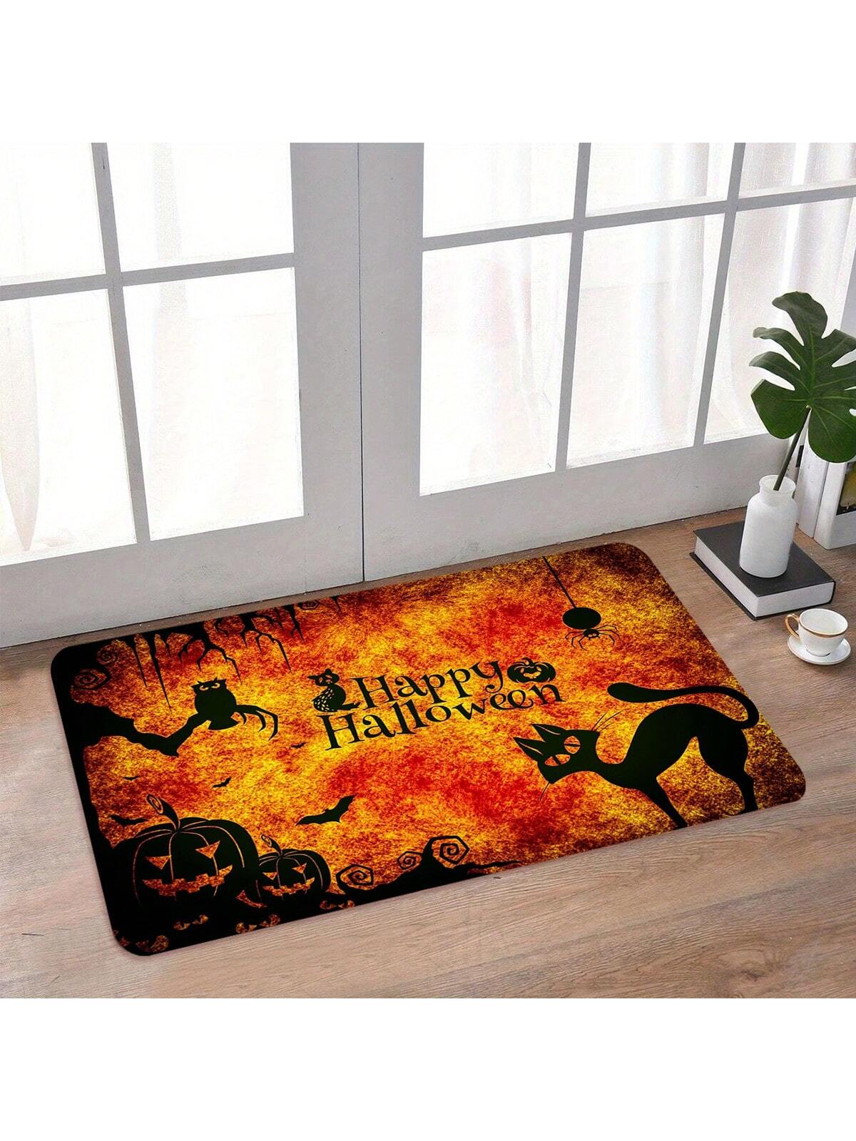 Spooky Chic Halloween Black Cat Print Non-Slip Doormat - Perfect for Any Room