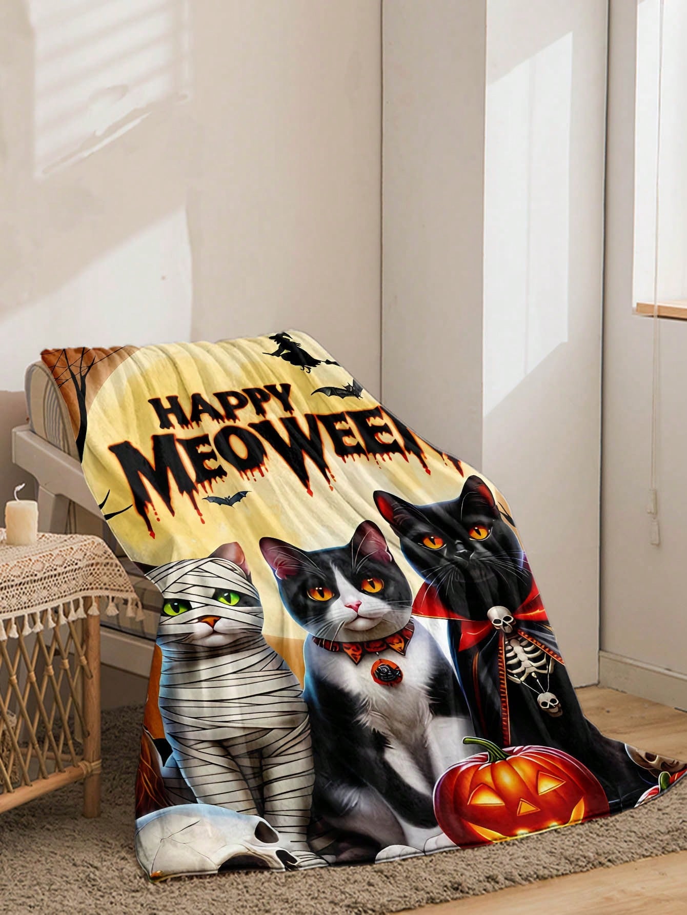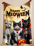 Spooky Graffiti Halloween Cats Printed Flannel Blanket - Perfect Home Decor and Holiday Gift