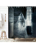 Spooky Halloween Ghost Printed Shower Curtain Set for Bathroom Decor
