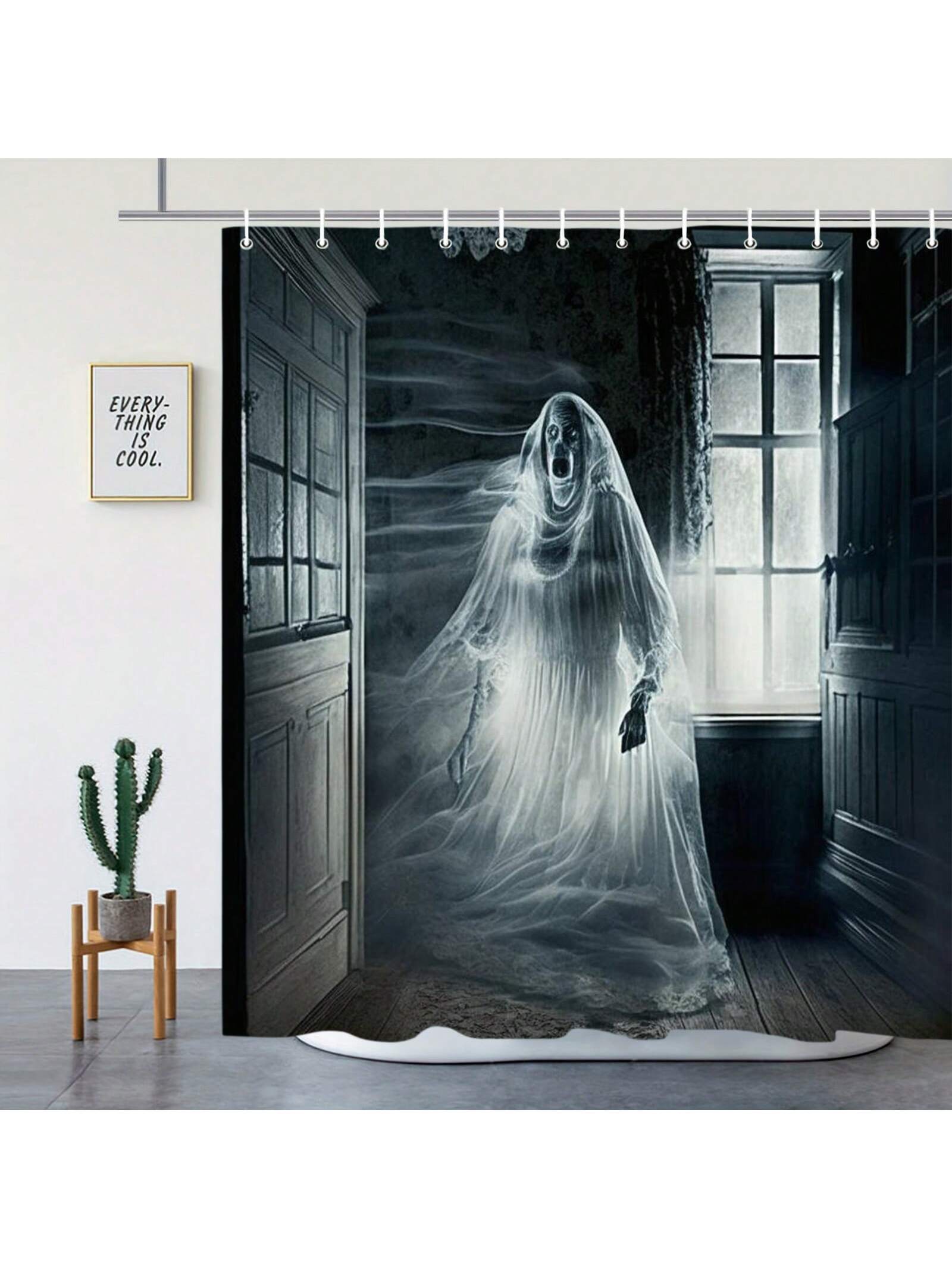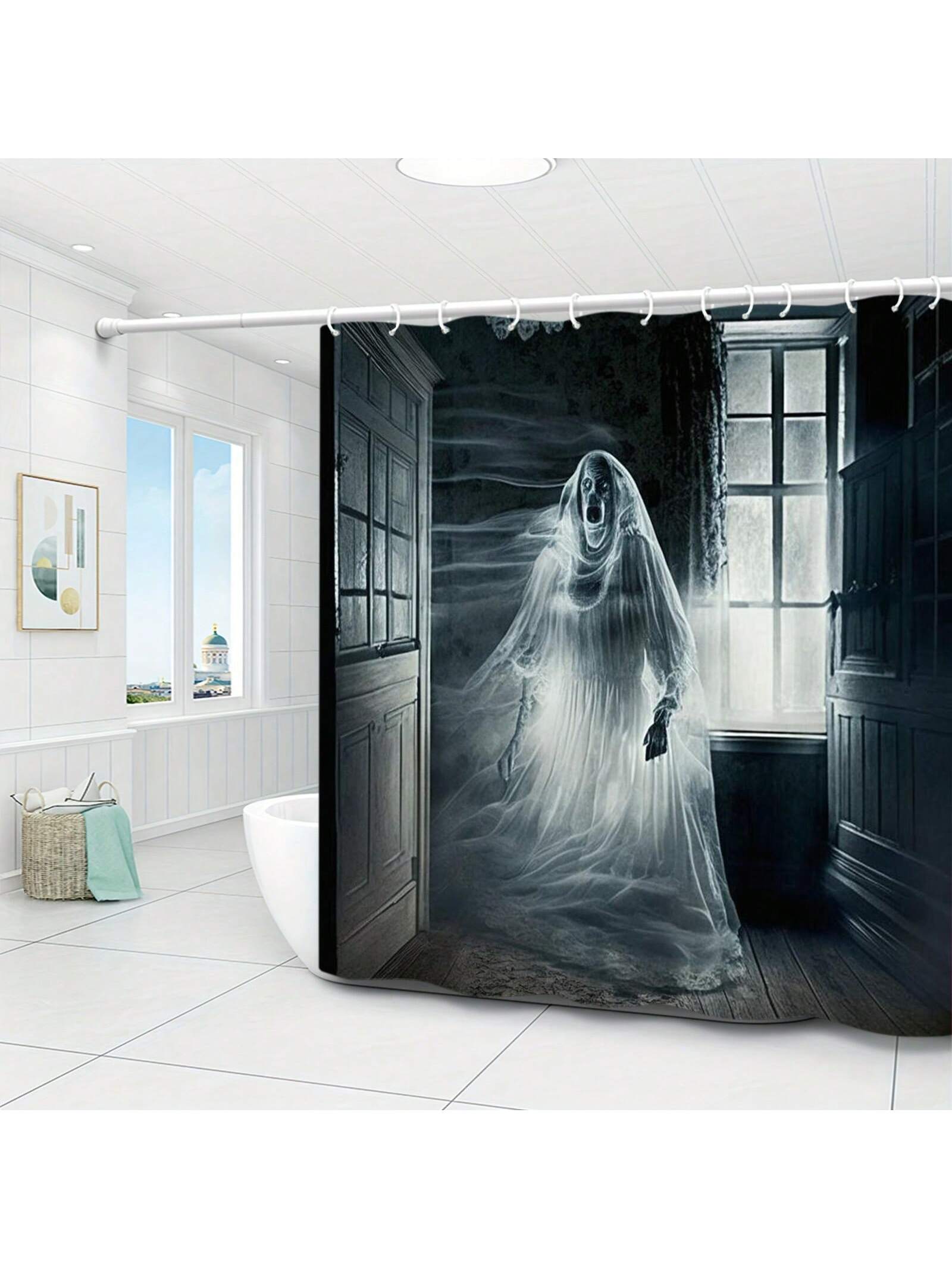 Transform your bathroom into a spooky Halloween retreat with our Ghost Printed Shower Curtain Set! The hauntingly beautiful design features a ghostly motif, adding a touch of eerie elegance to your décor. Crafted with durable materials, this set is perfect for creating a creepy atmosphere for your bathroom.