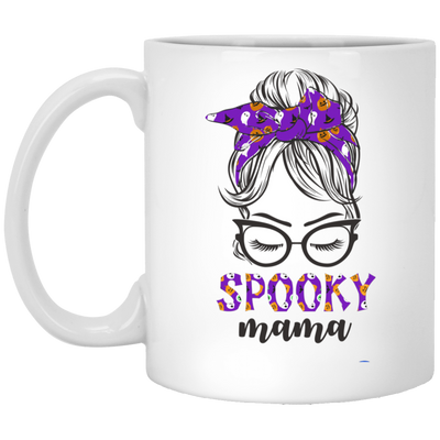 Spooky Mama, Halloween Party, Messy Buns Halloween White Mug