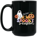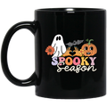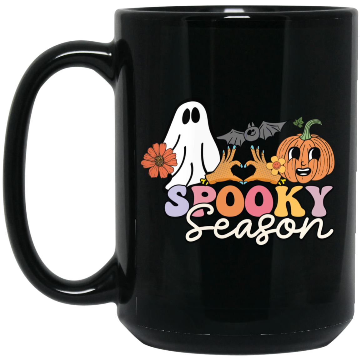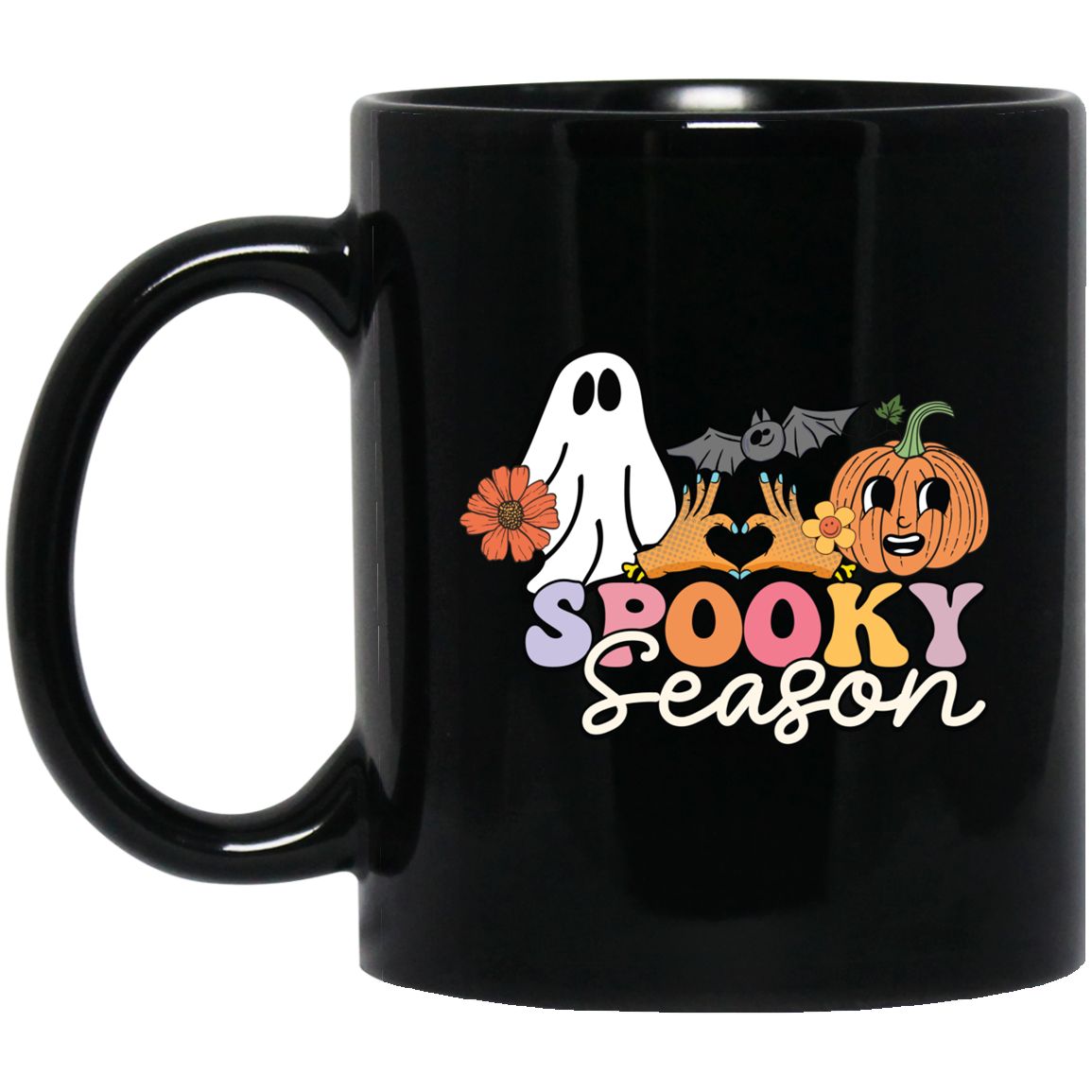 Spooky Season, Groovy Halloween, Boo And Bat Black Mug