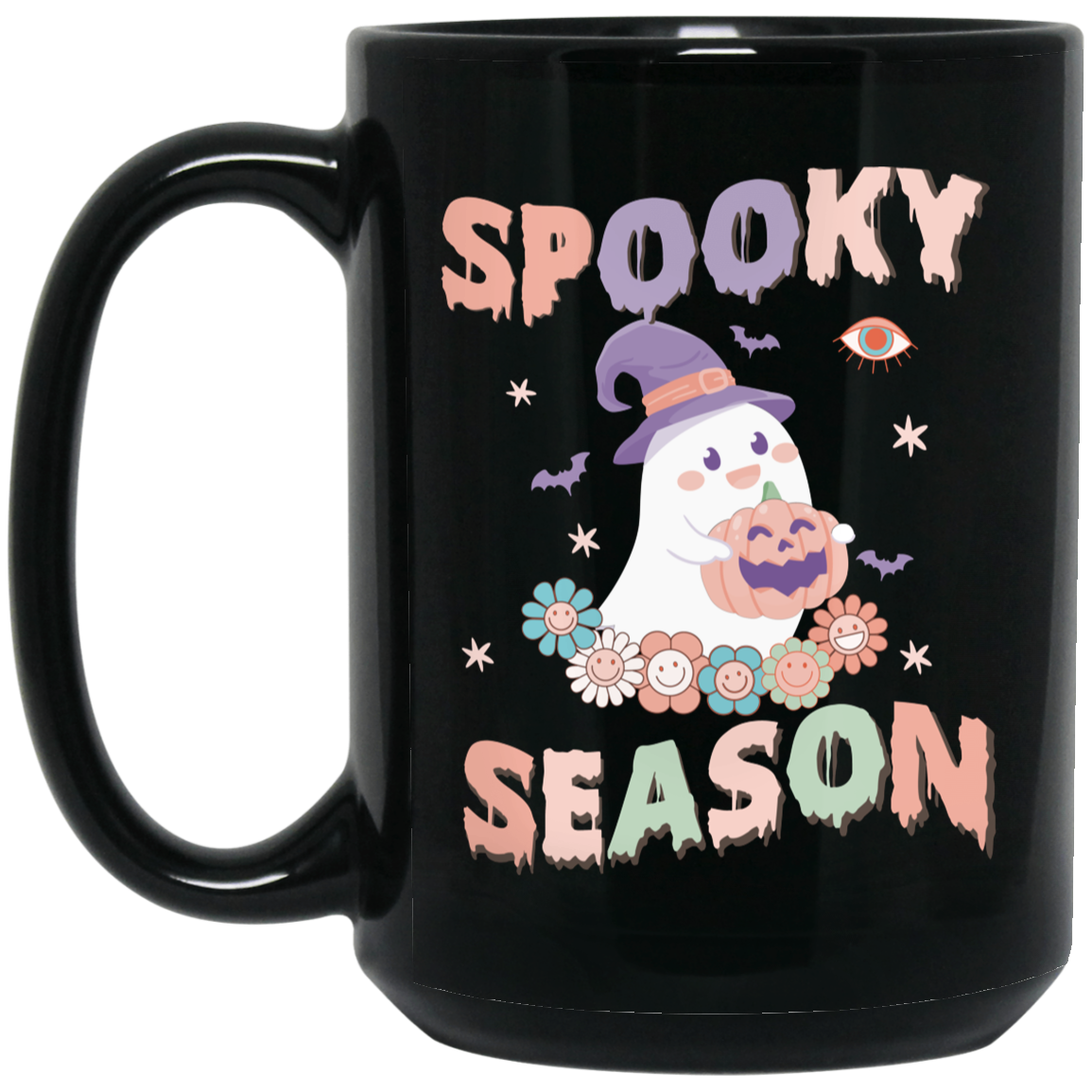 Spooky Season, Happy Halloween, Cute Boo Black Mug