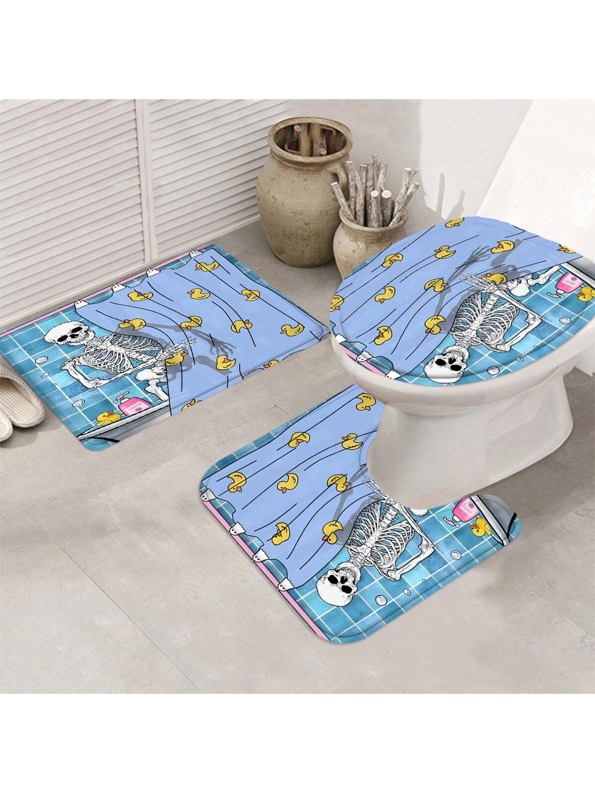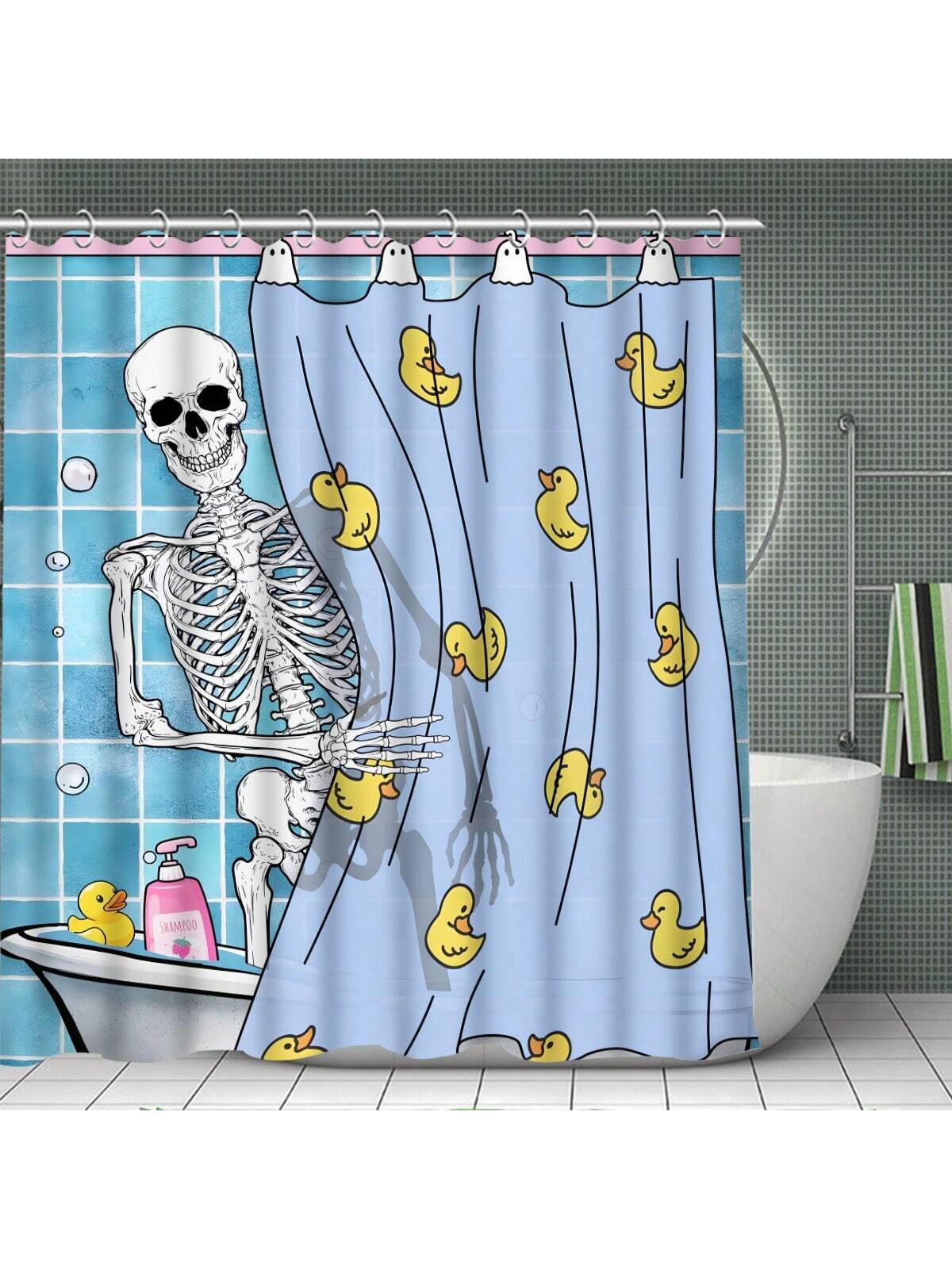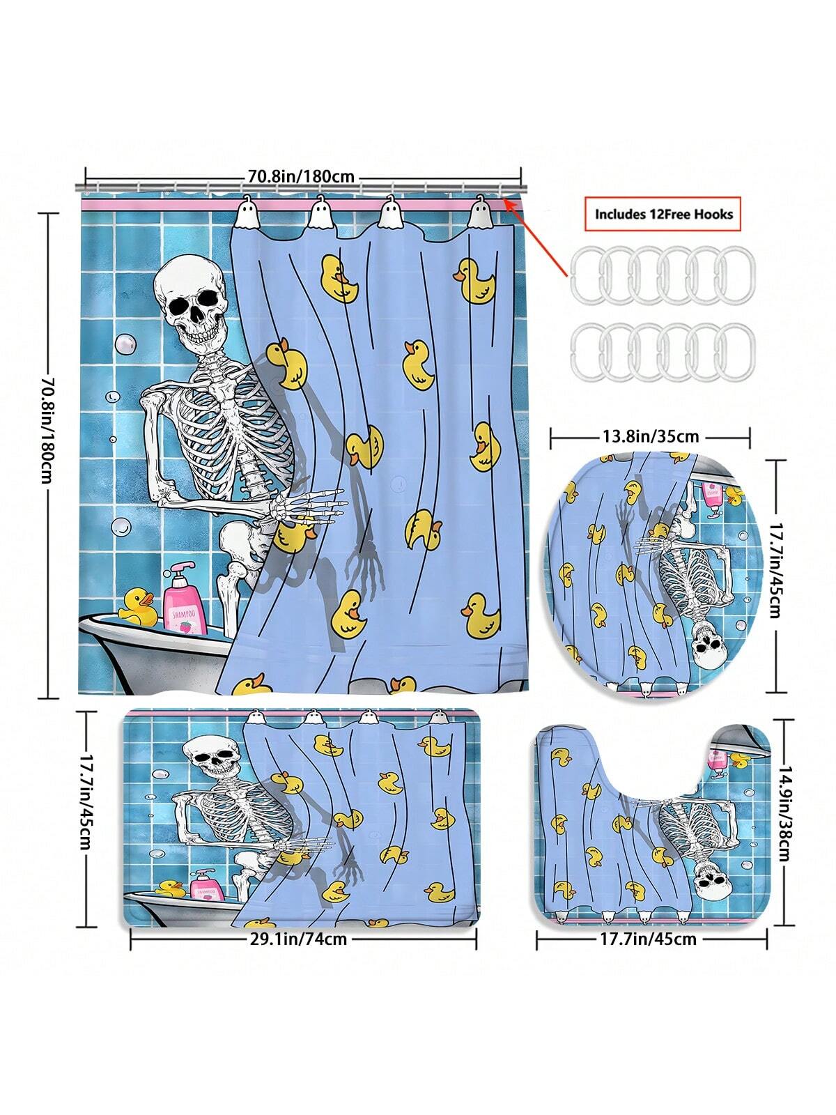 Spooky Skull Bathroom Shower Curtain Set for Halloween Decor