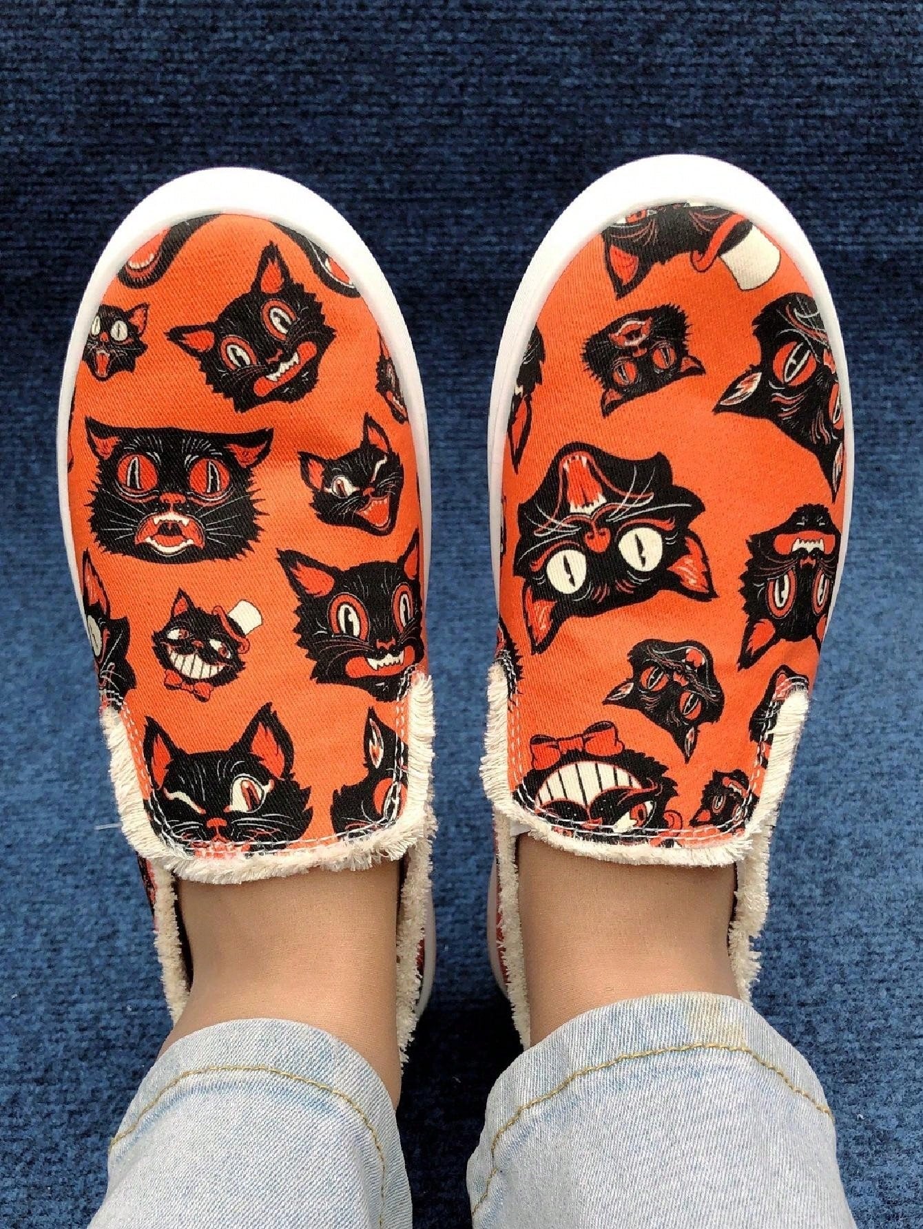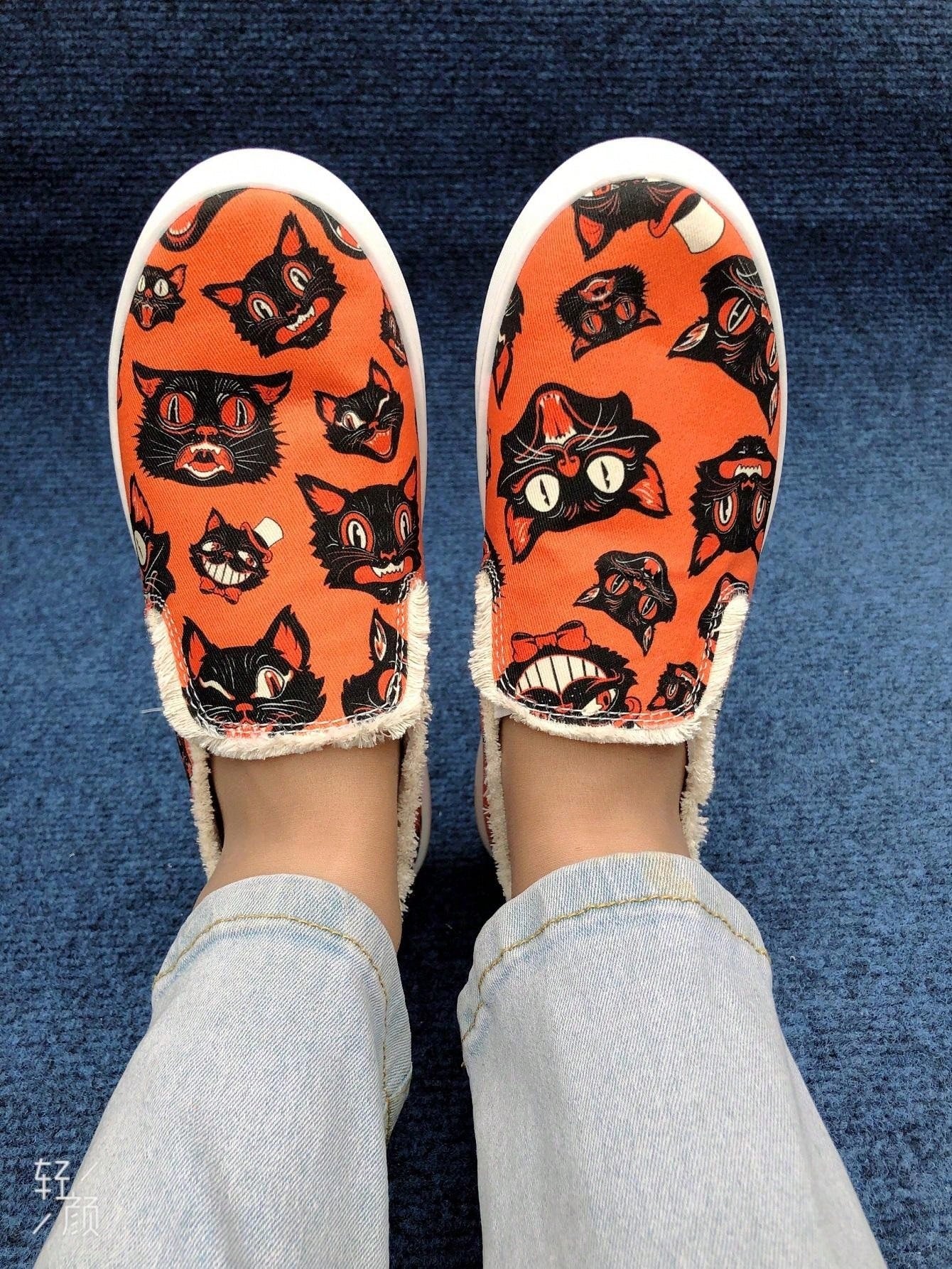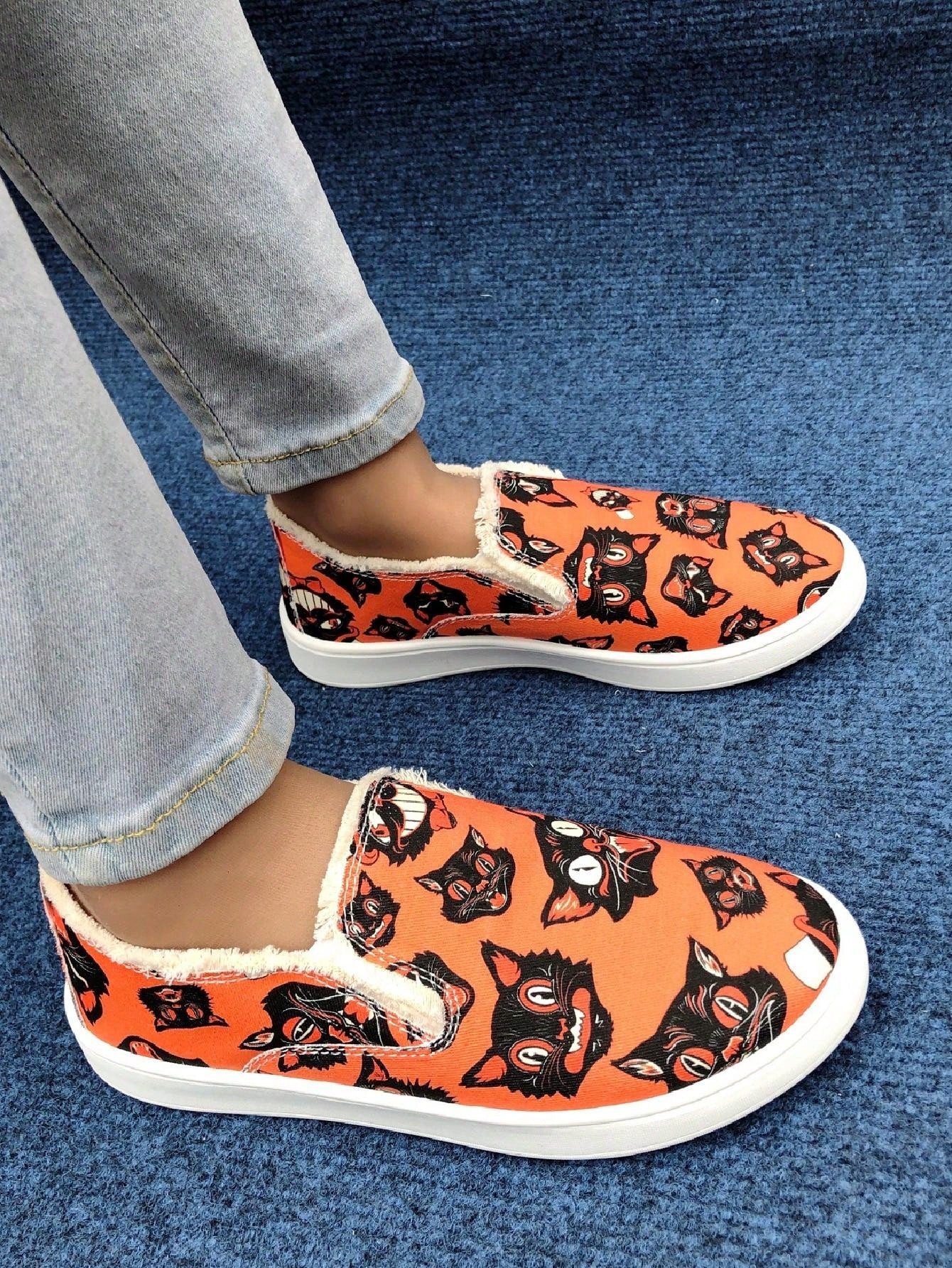 Spooky Style: Women's Halloween Canvas Slip-On Flats – Comfortable and Non-Slip