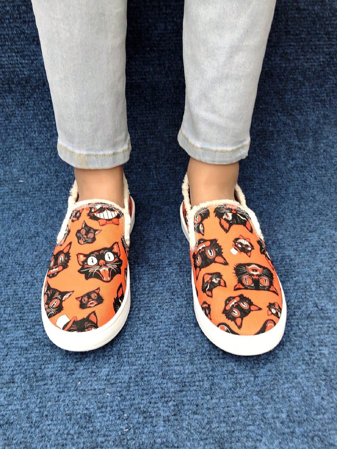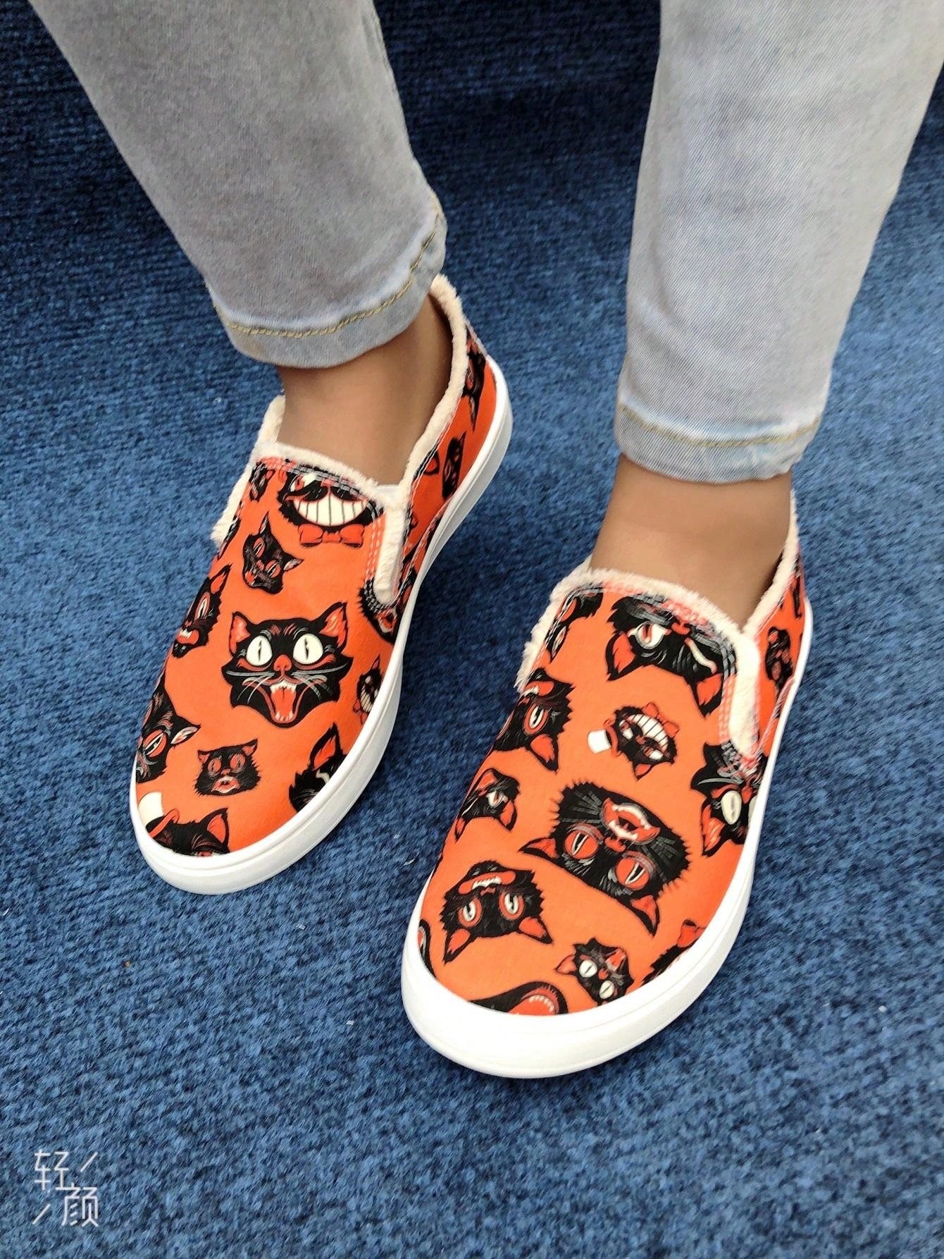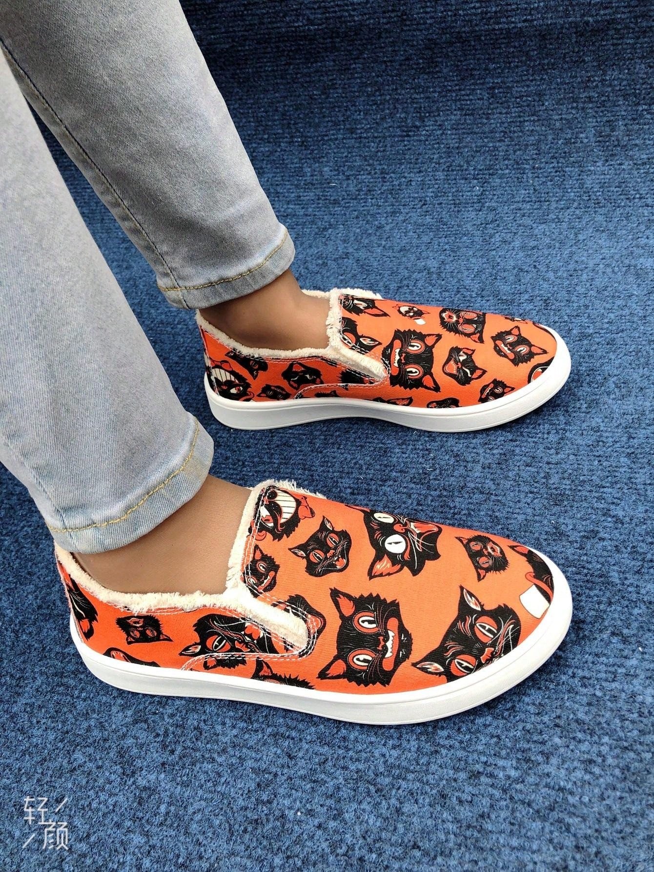 Spooky Style: Women's Halloween Canvas Slip-On Flats – Comfortable and Non-Slip