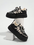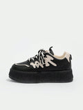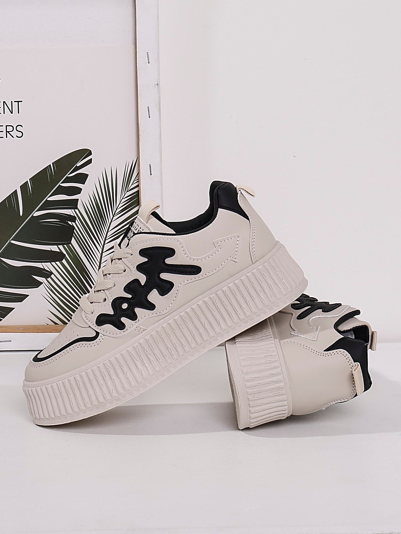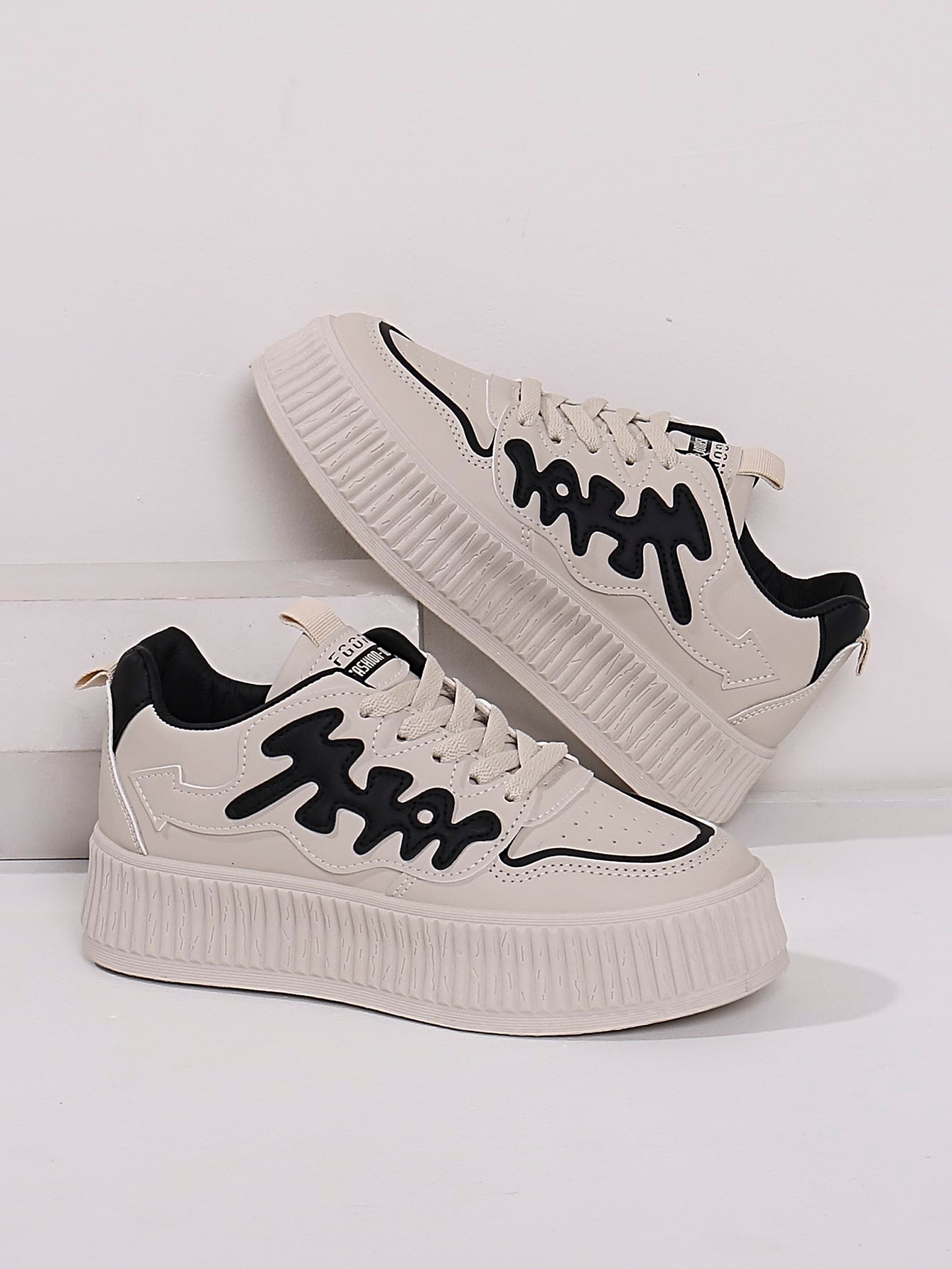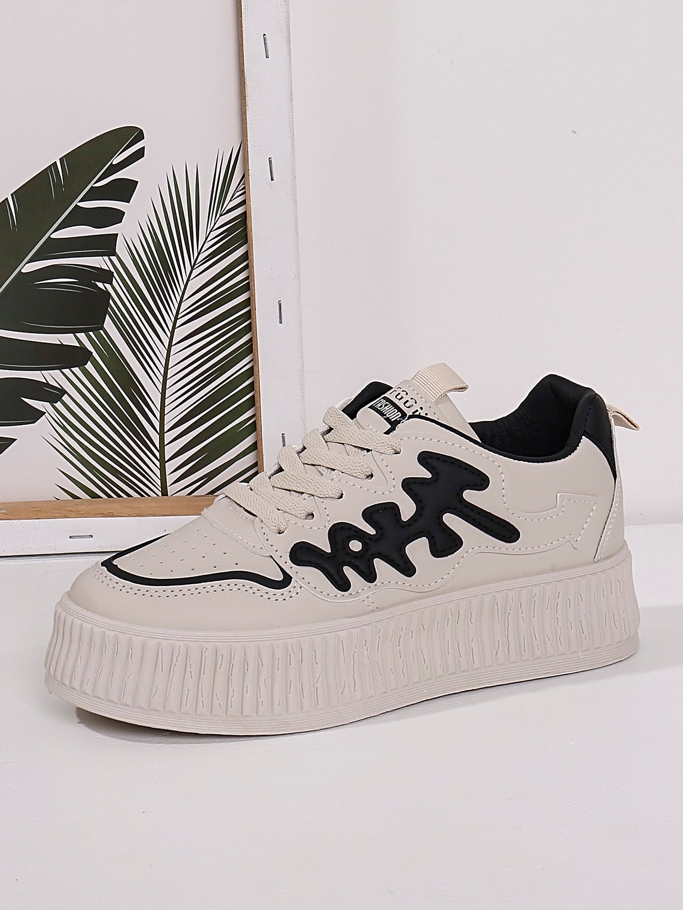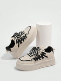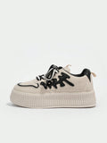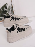 Sporty Chic: Beige Letter Graphic Lace-up Sneakers for Women