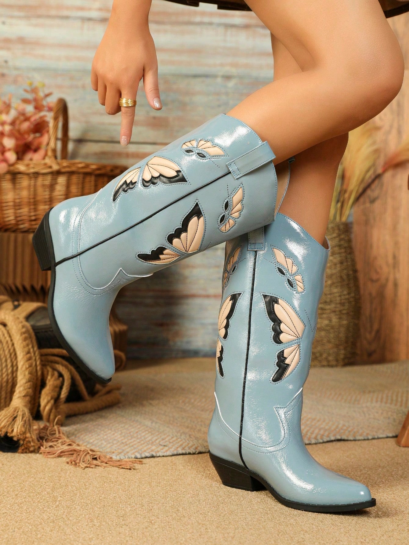 Spring into Style with Butterfly 3D Flower Patchwork Cowboy Boots