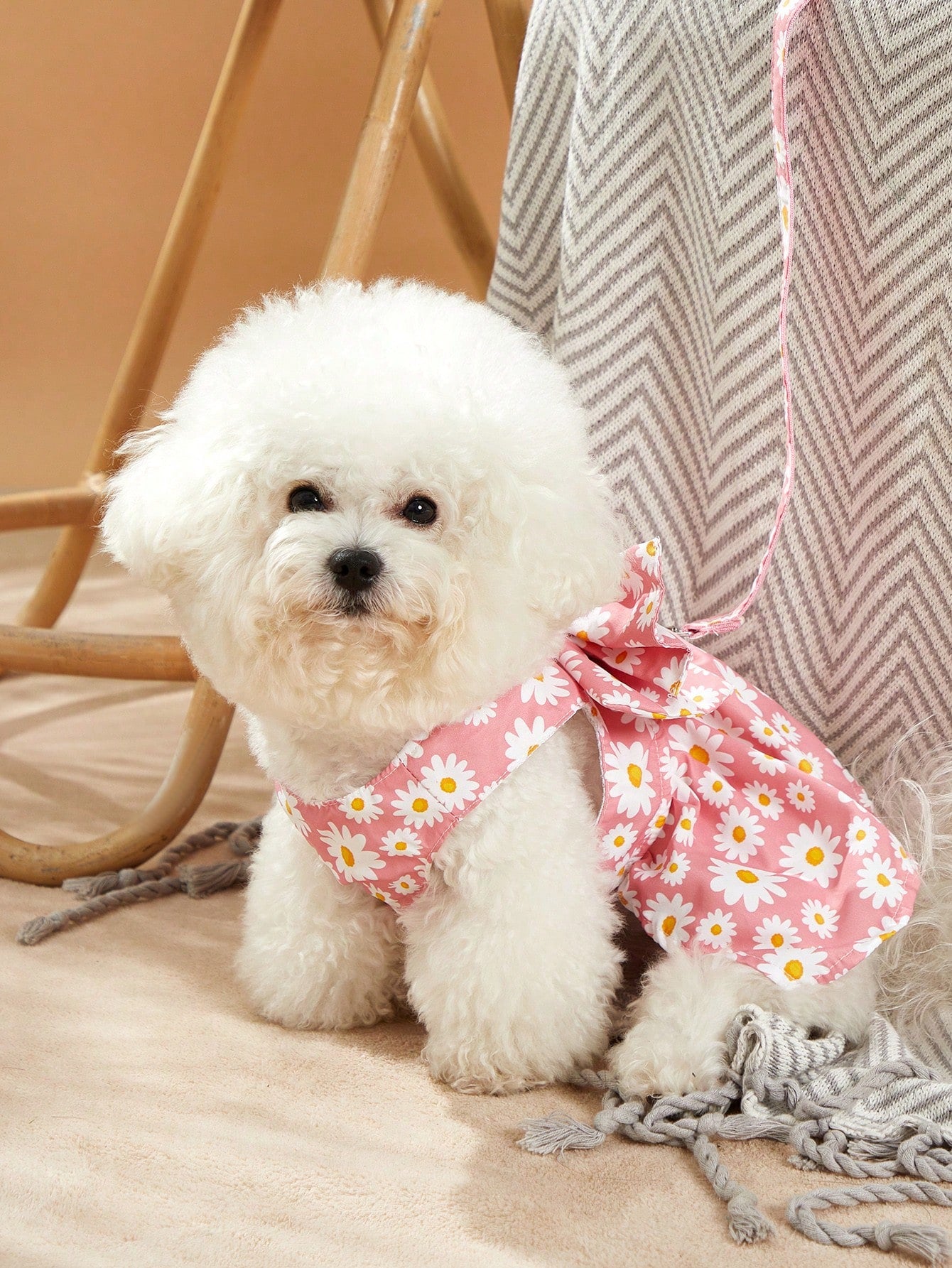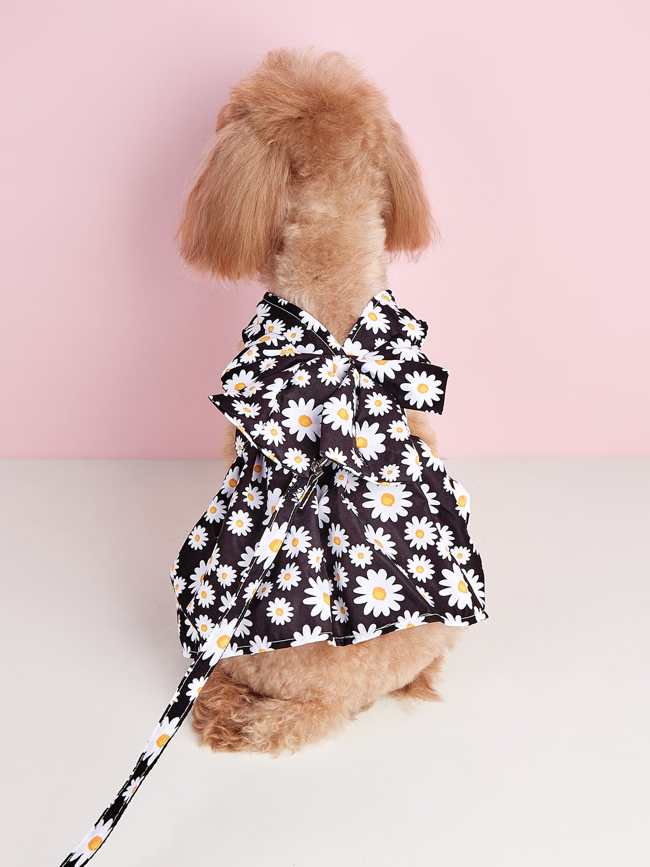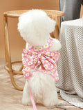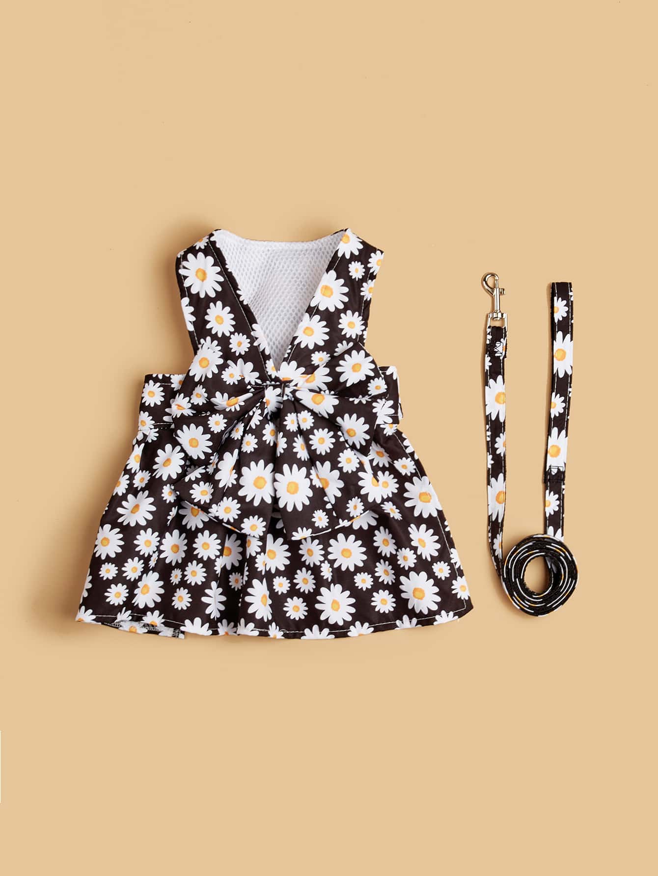 Springtime Style: Flower Print Dogs Dress with Leash for Outdoor Adventures