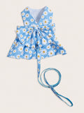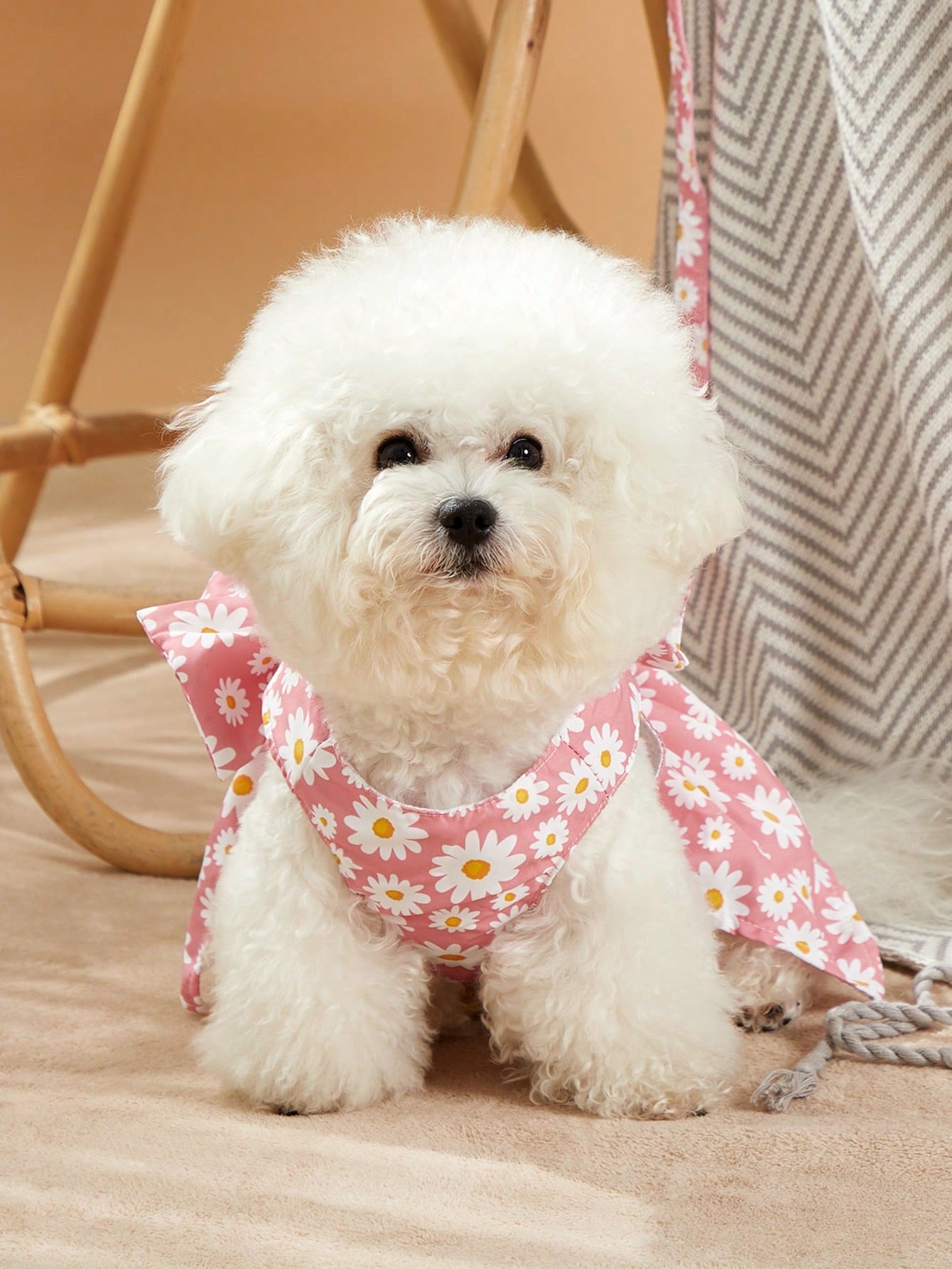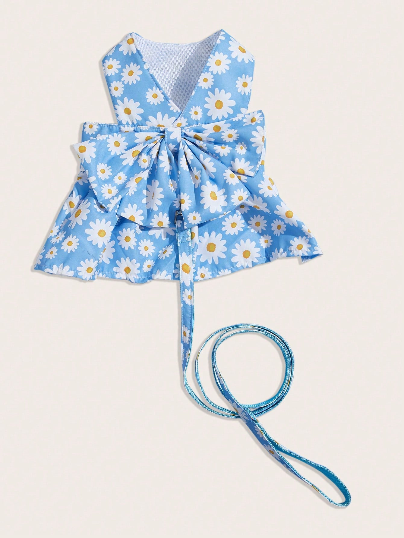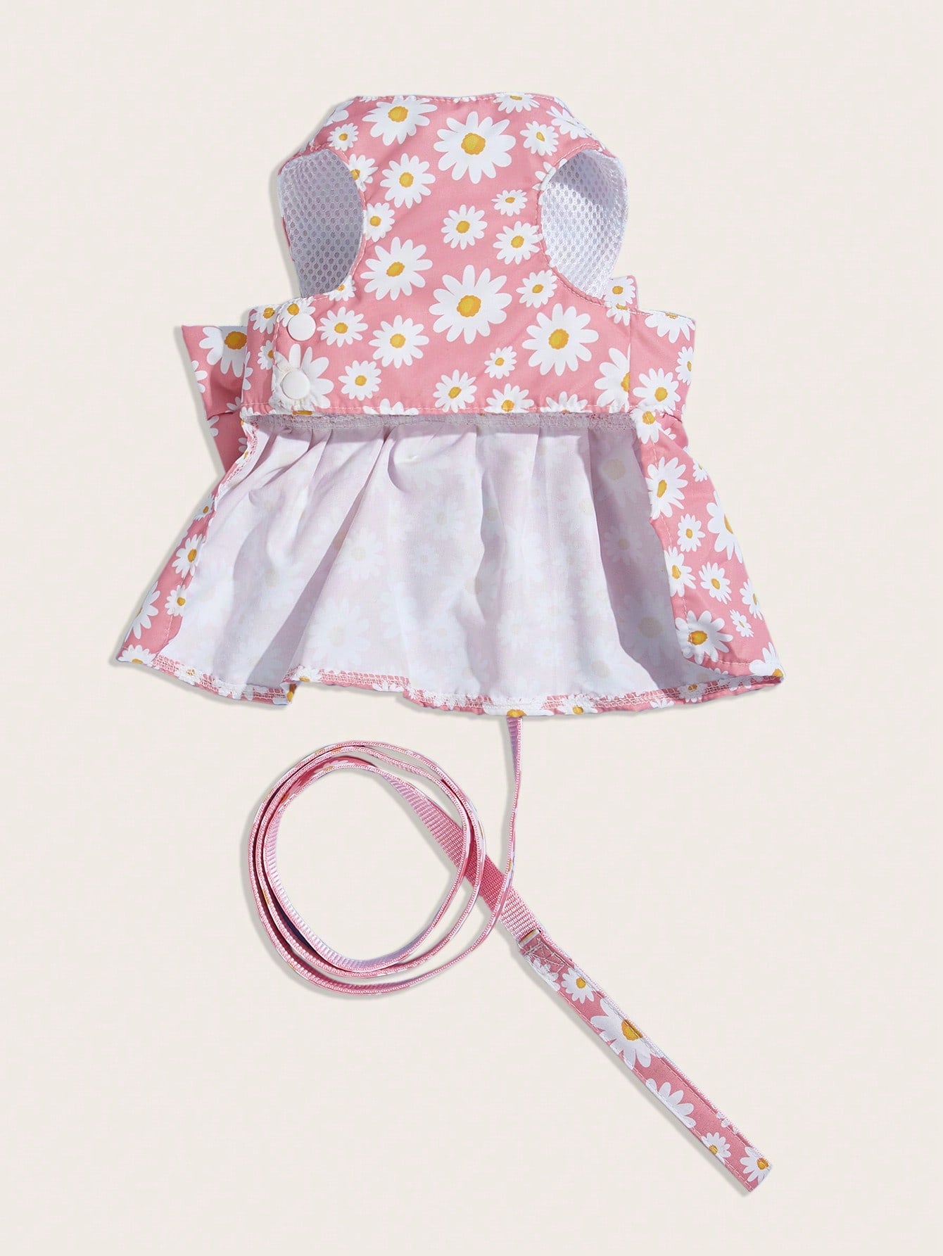 Springtime Style: Flower Print Dogs Dress with Leash for Outdoor Adventures