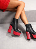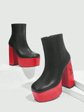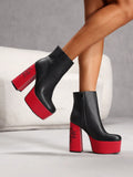 Square Toe Chunky Heel Party Ankle Boots - Waterproof and Embroidered for Fashionable Casual Outdoor Wear