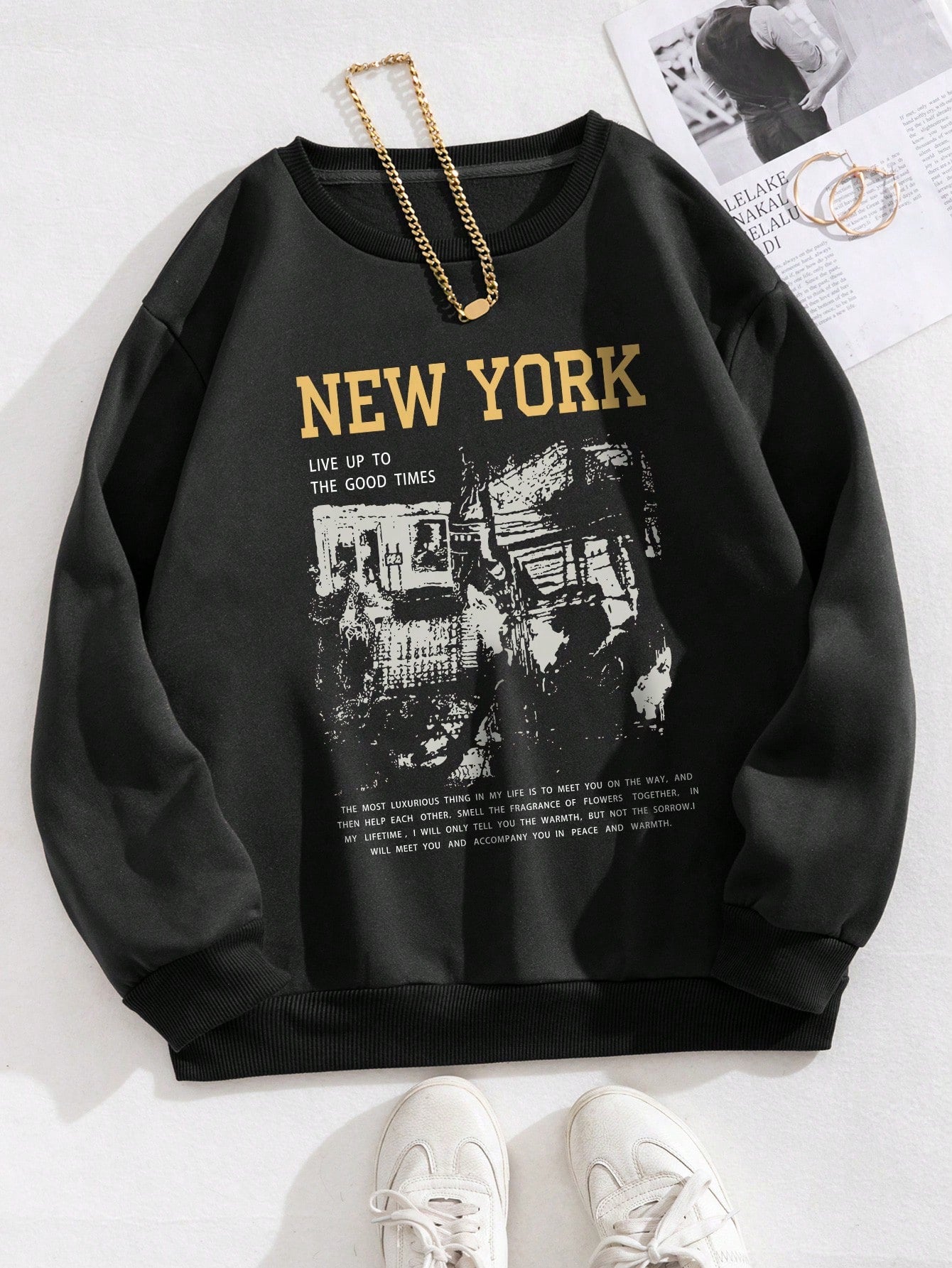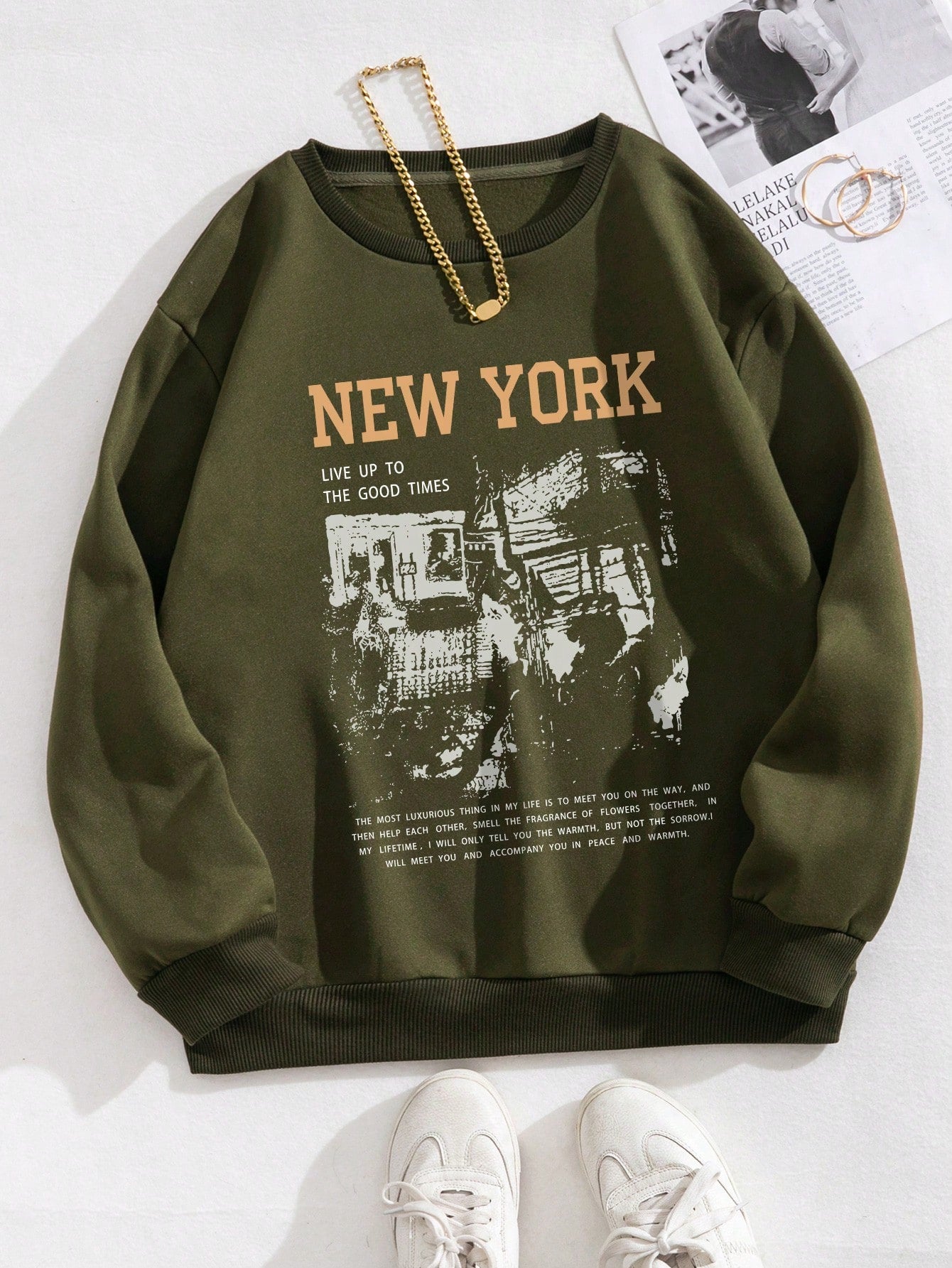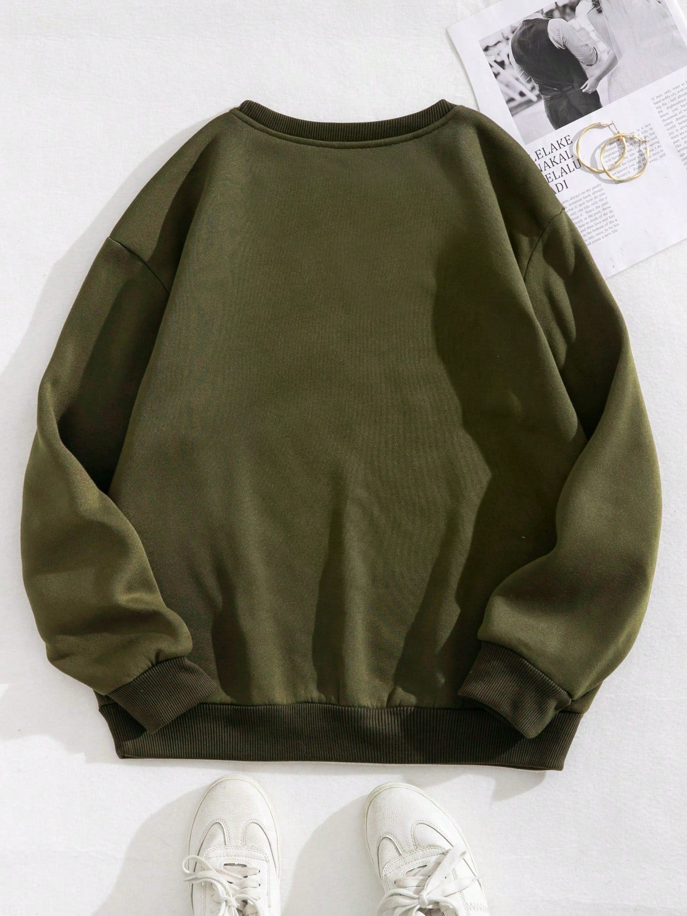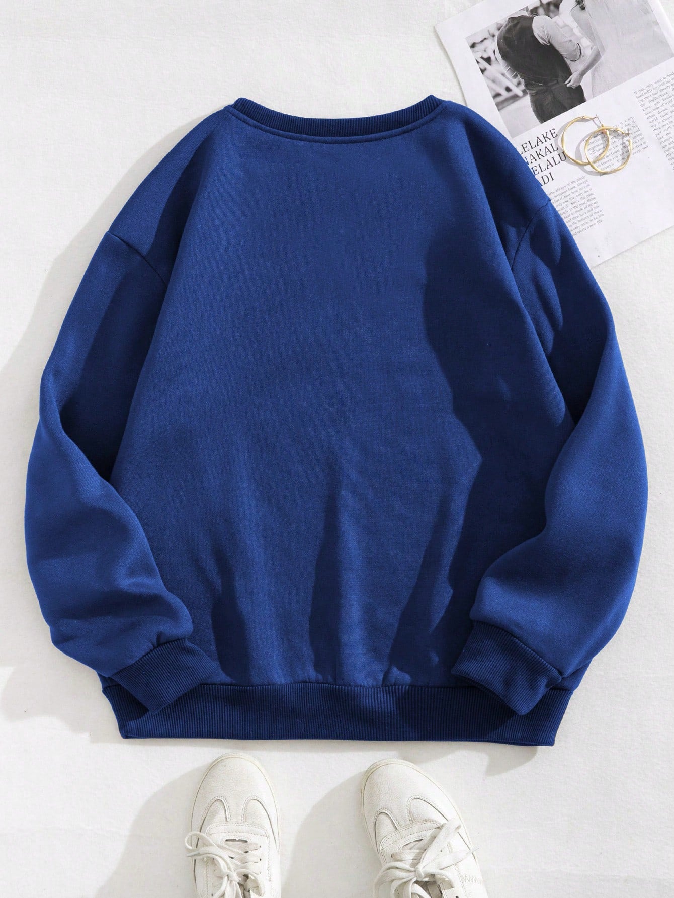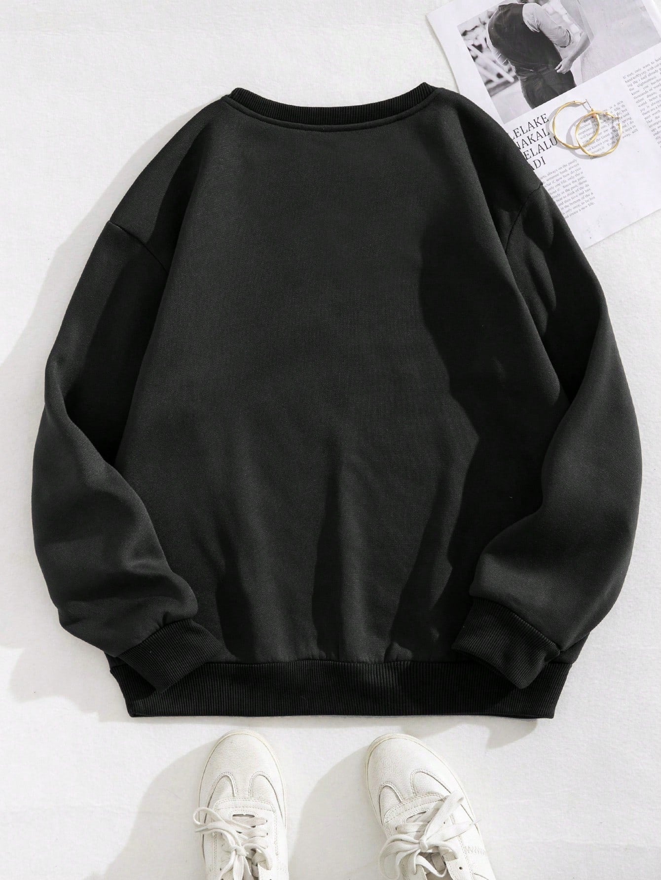 Stay Cozy and Stylish with our Letter Figure Graphic Thermal-Lined Sweatshirt