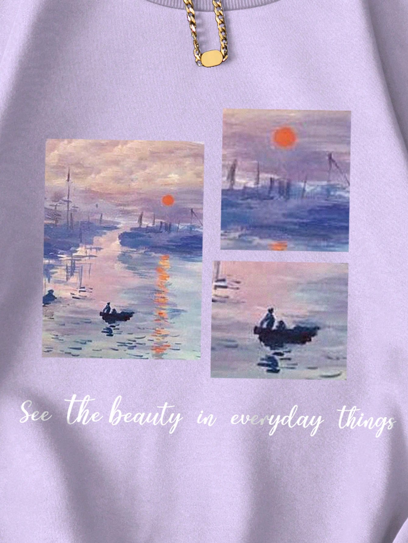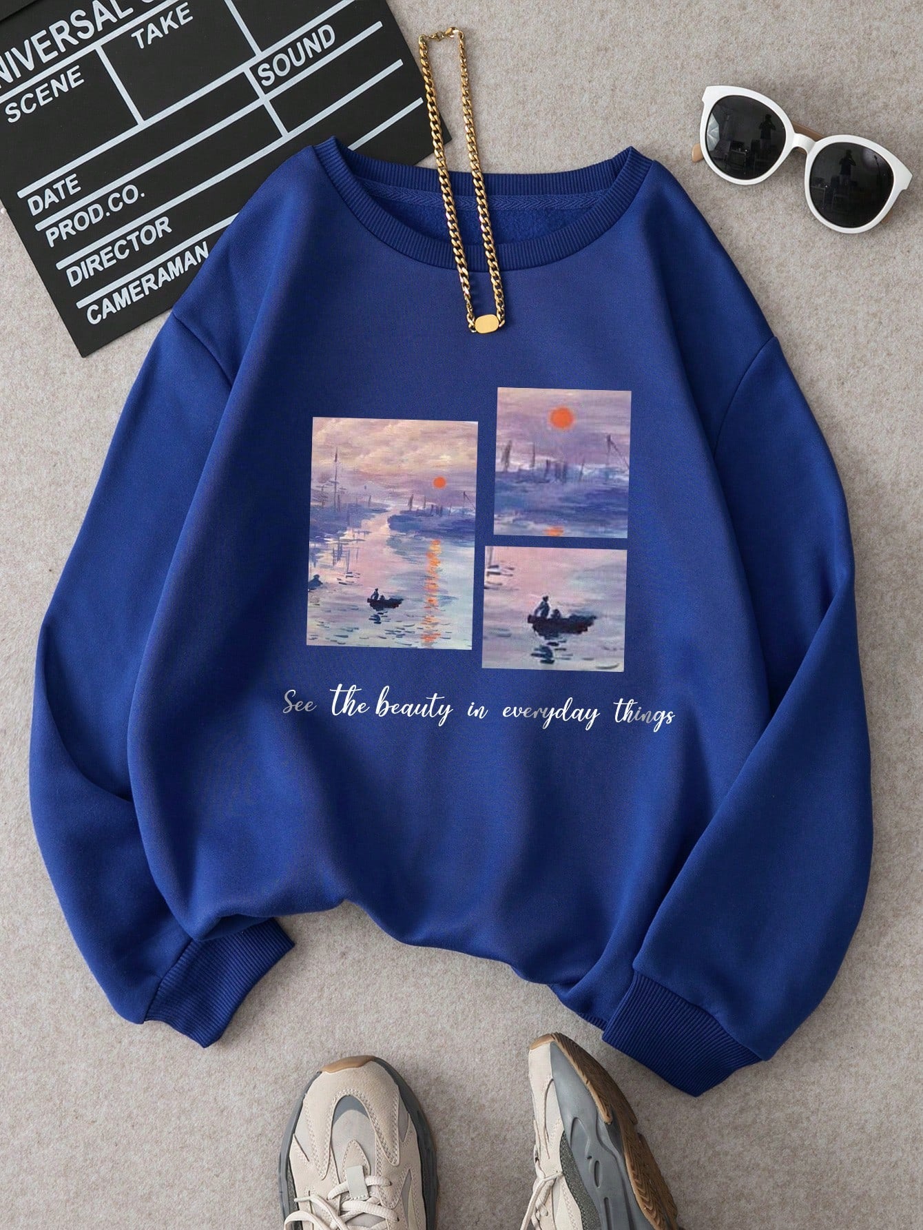 Stay Cozy and Stylish with Slogan Graphic Thermal Lined Sweatshirt