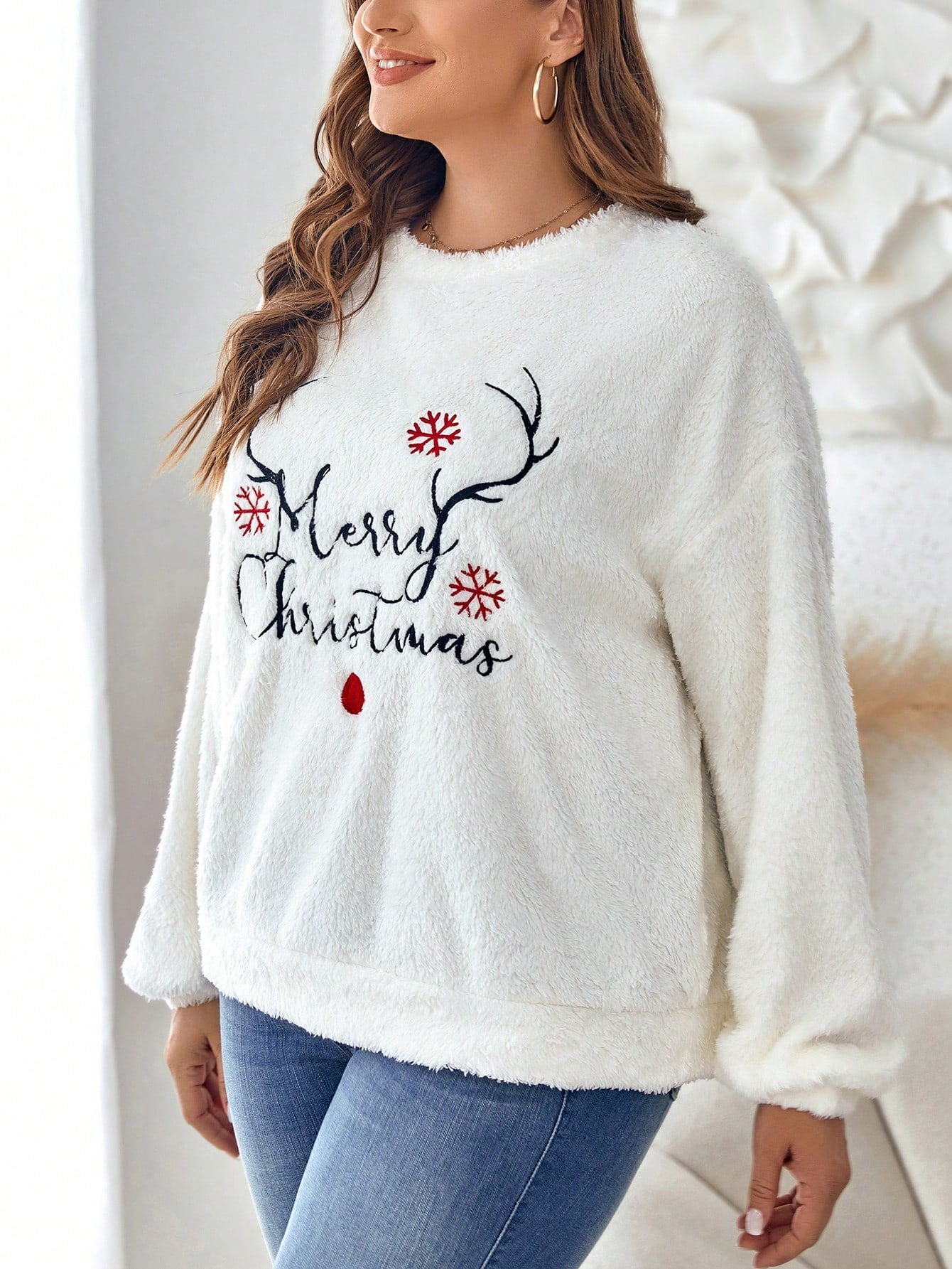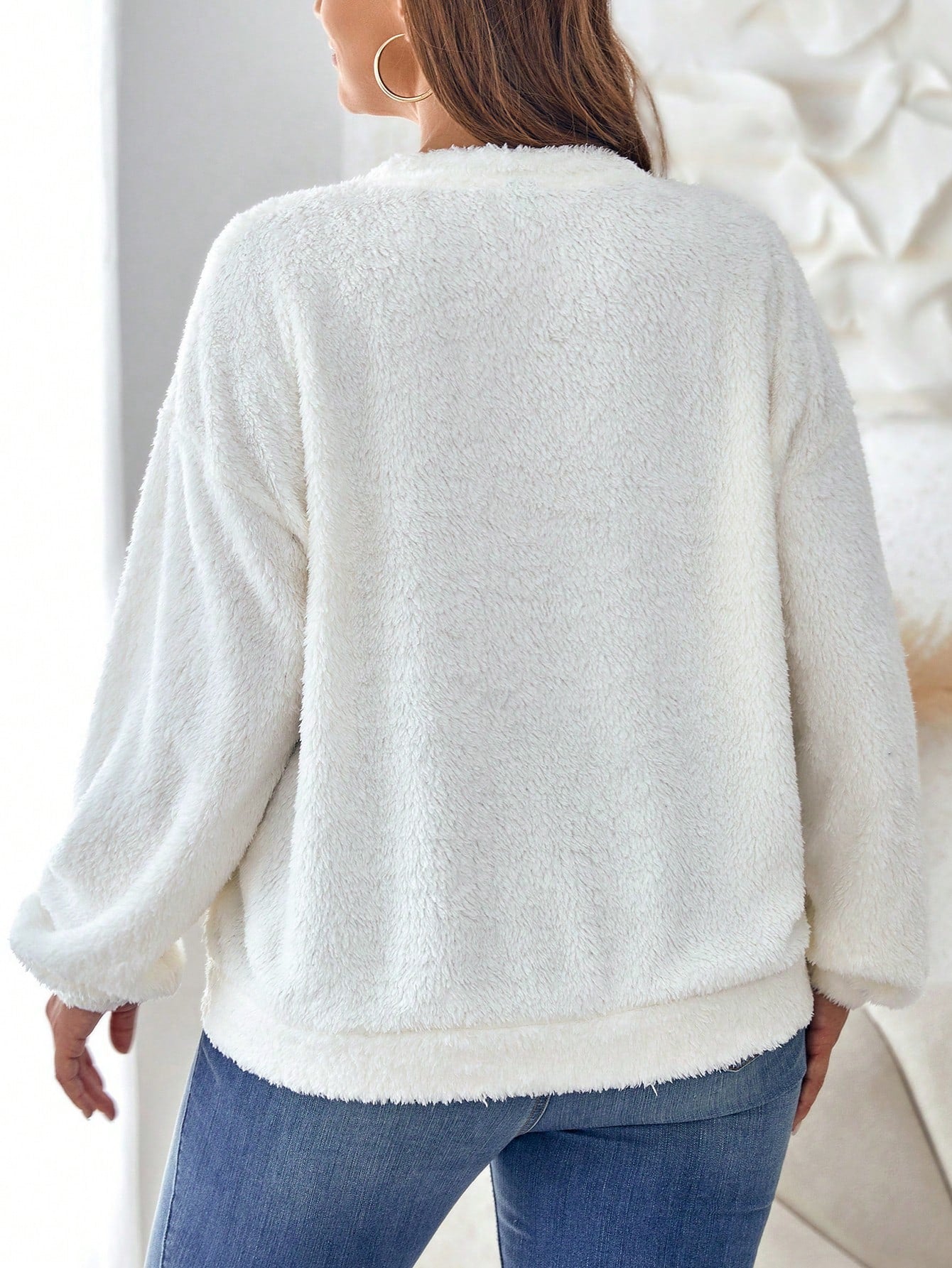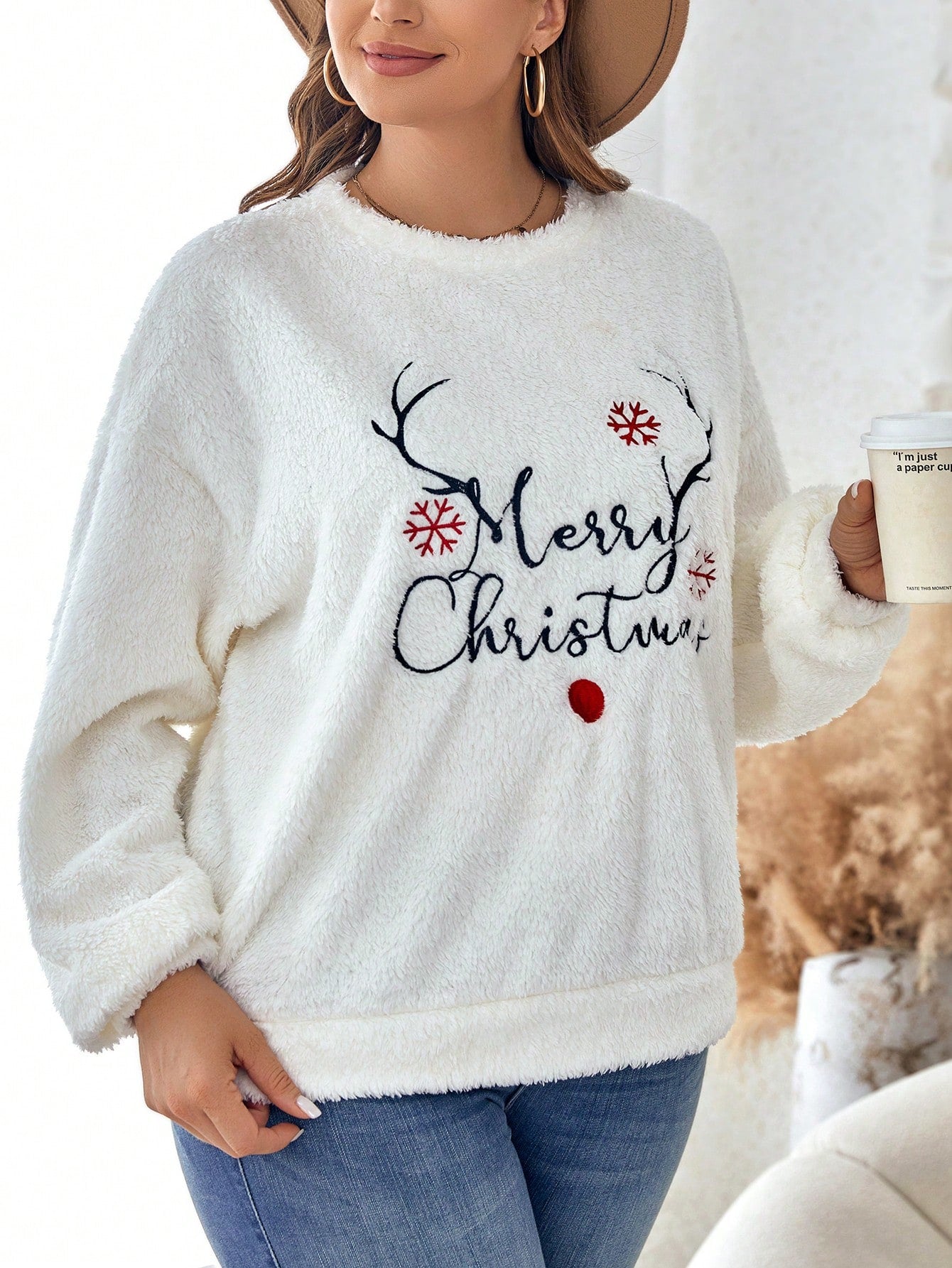 Stay Cozy and Stylish with the Slogan Embroidery Drop Shoulder Teddy Sweatshirt