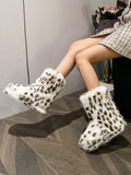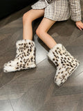 Stay Cozy in Style with our Faux Fur Leopard Print Mid-Calf Snow Boots