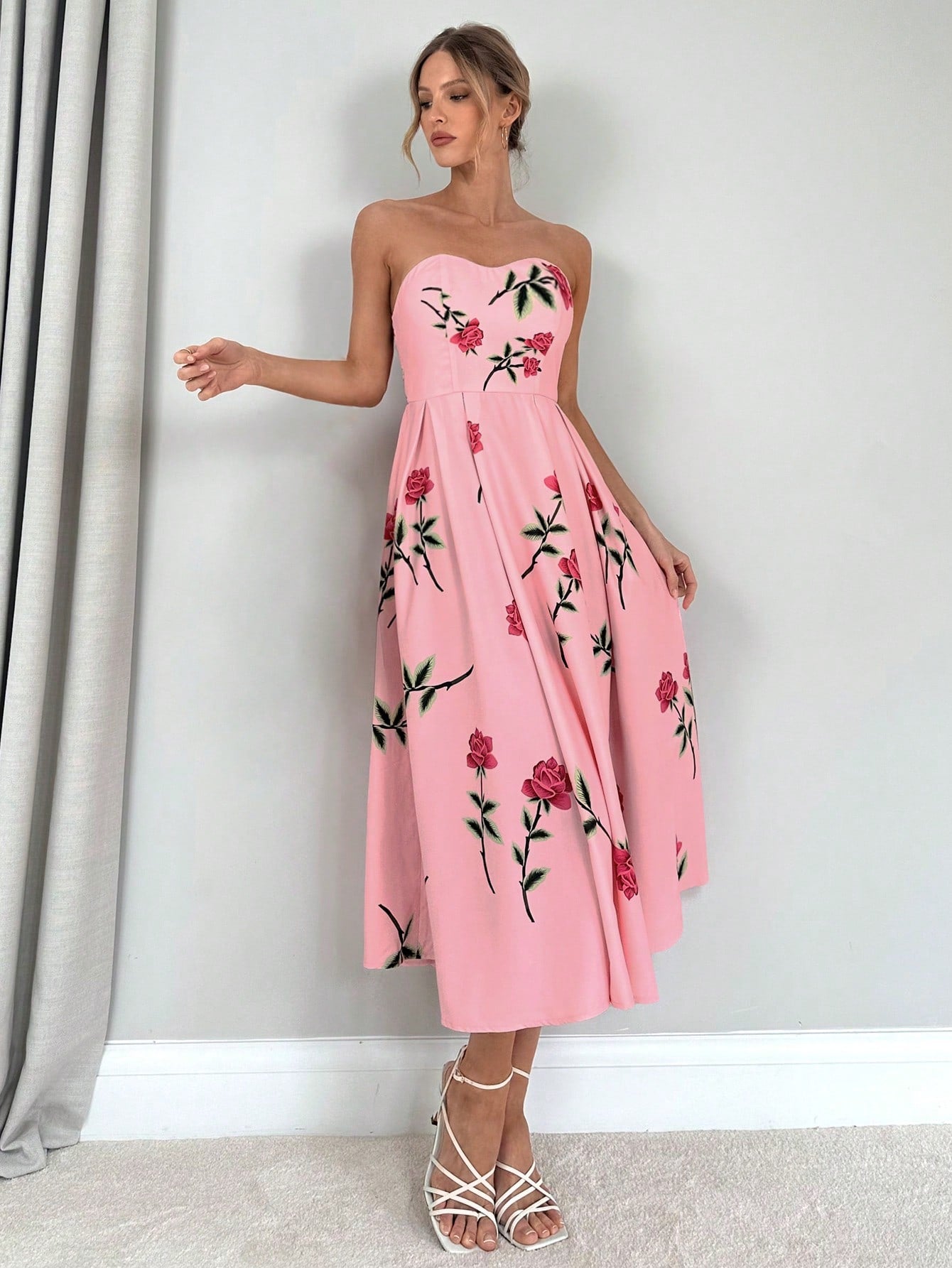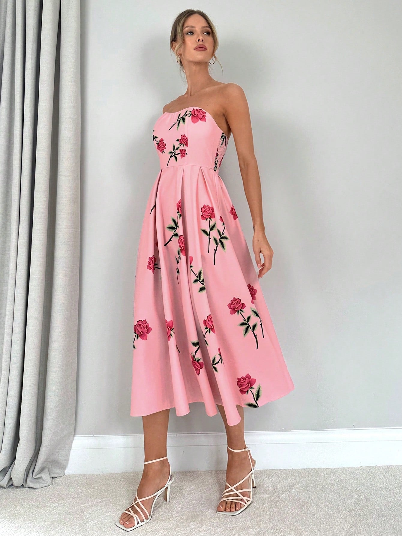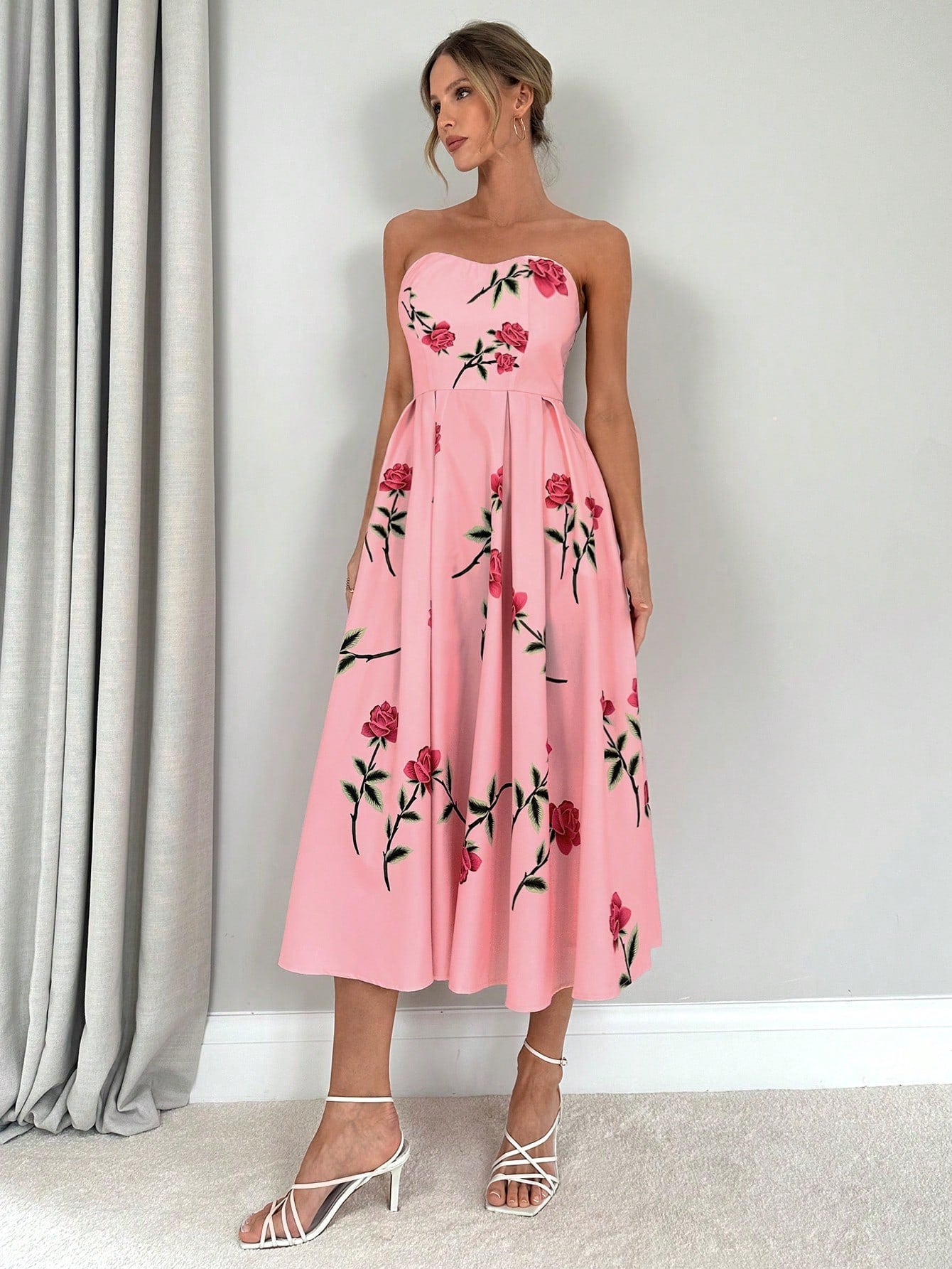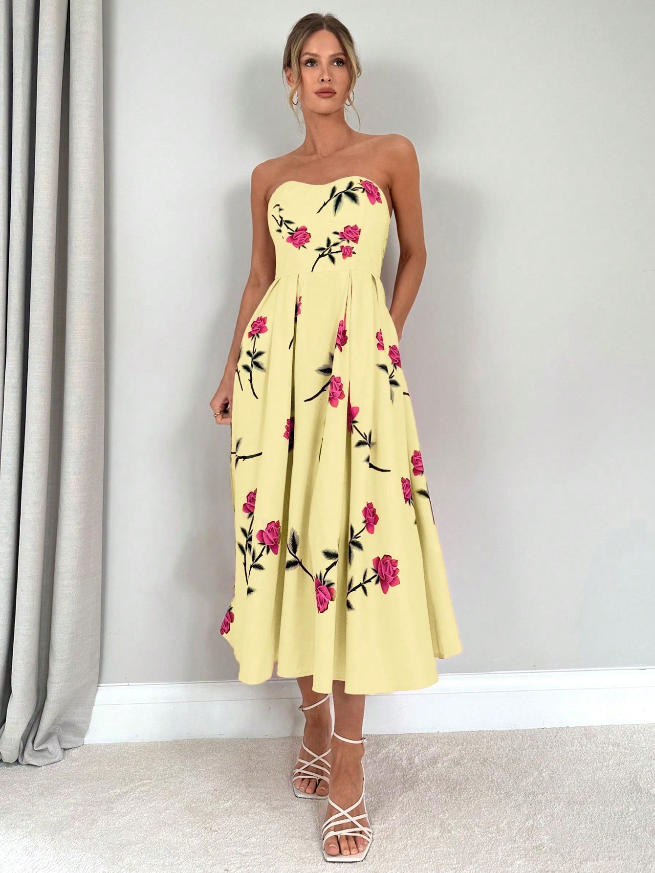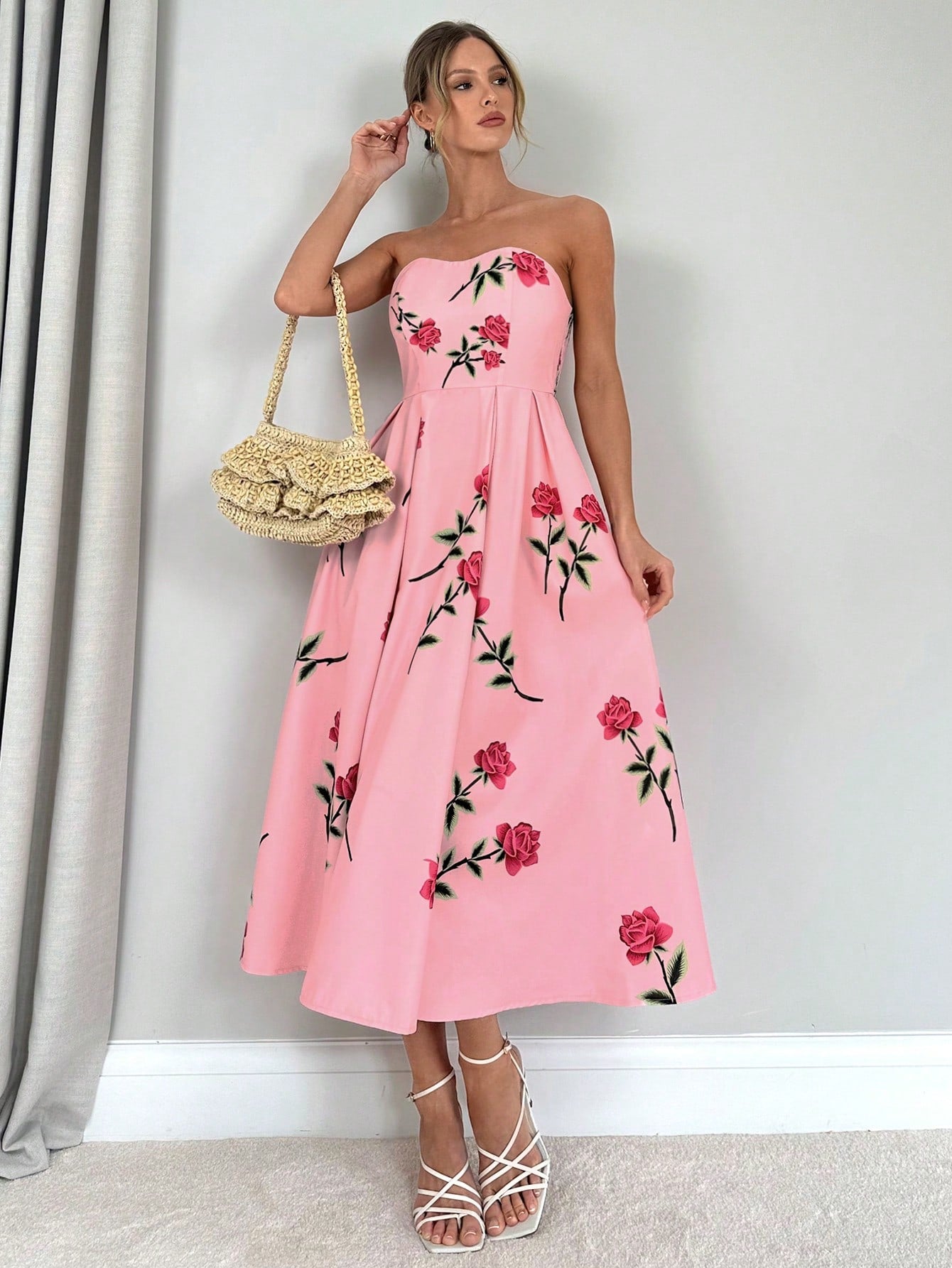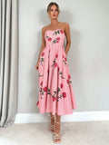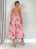 Stay Elegant and Chic in Summer with Women's Floral Rose Print Apron Dress