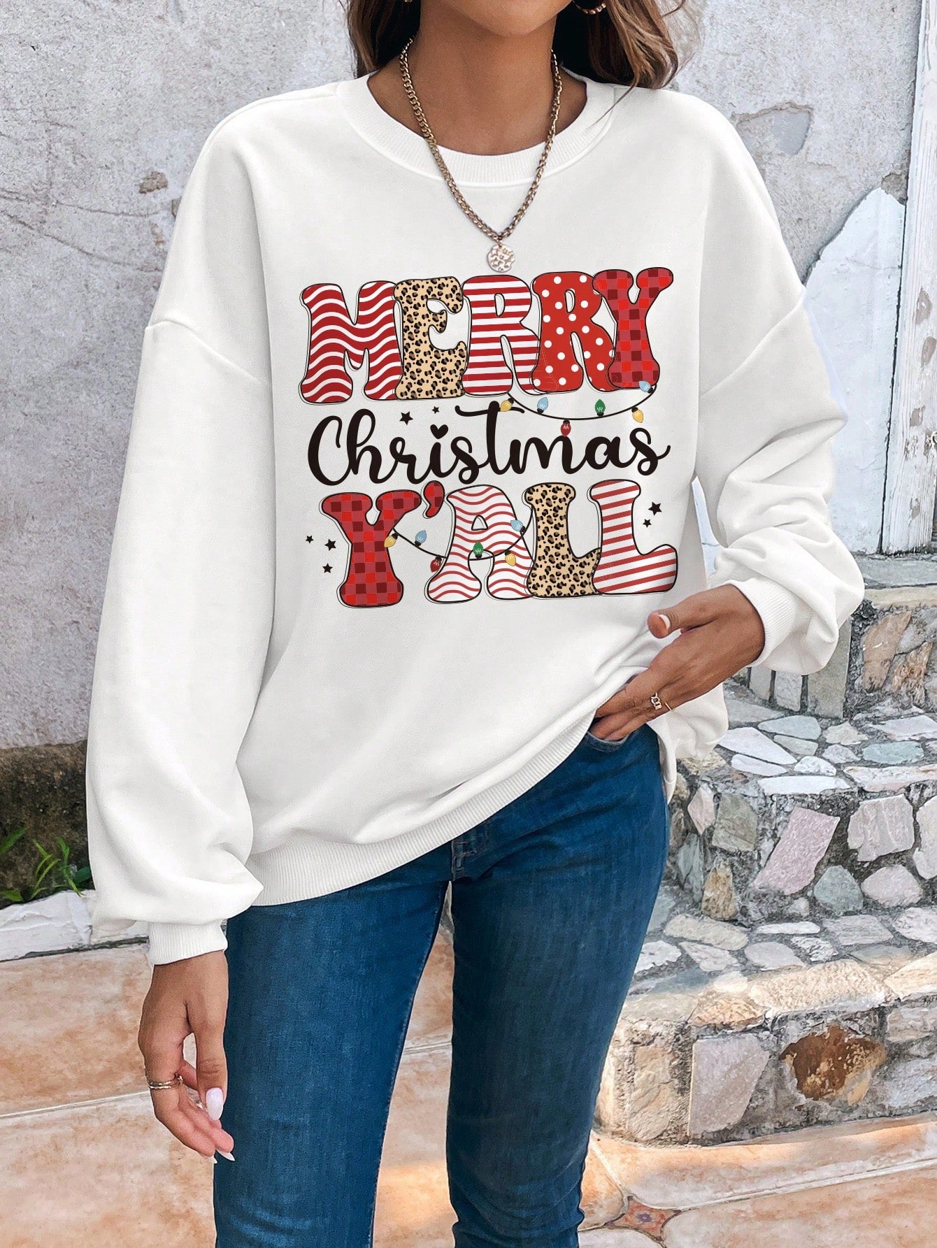 Stay Festive and Cozy with the Christmas Print Drop Shoulder Sweatshirt