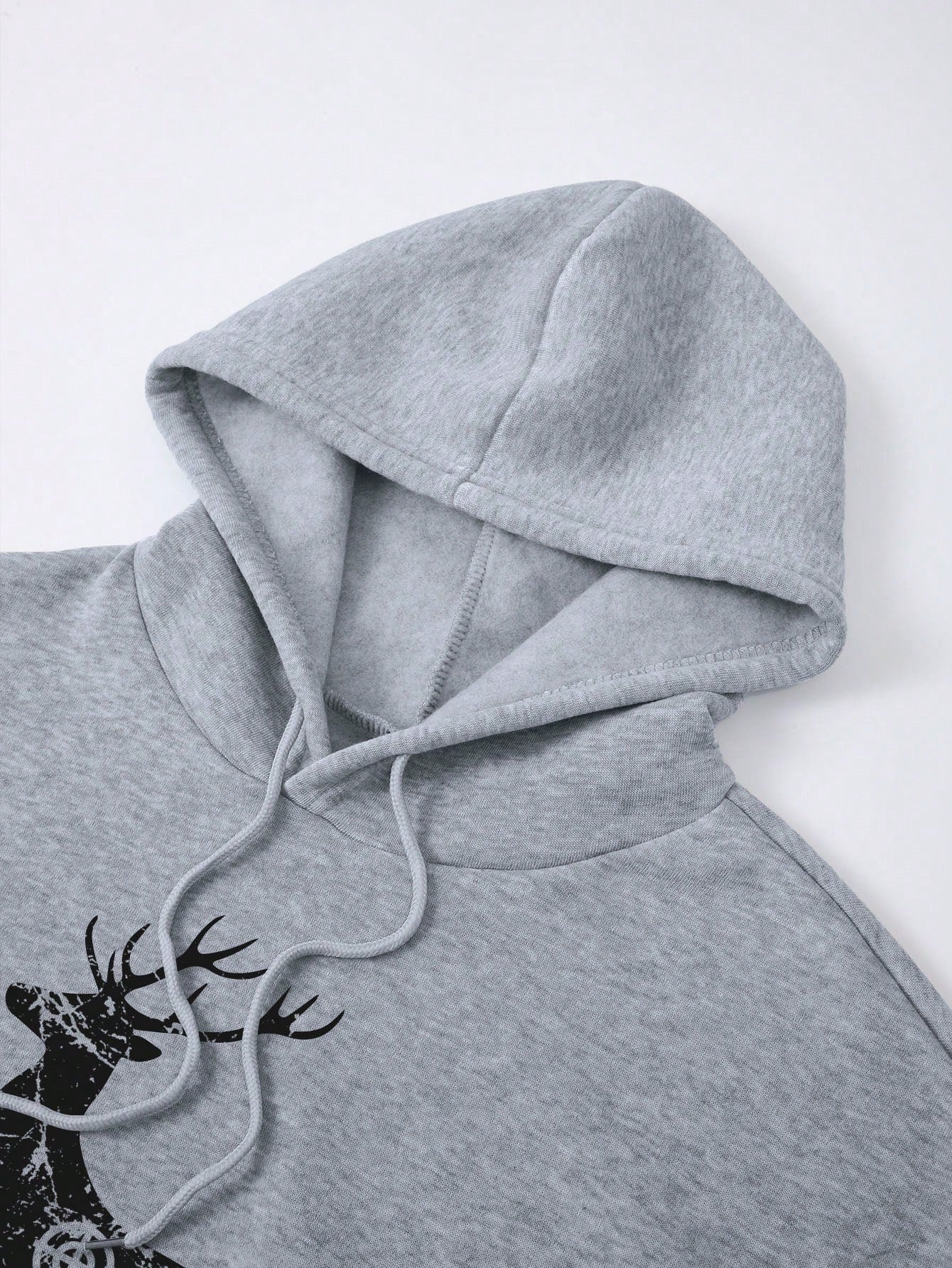 Stay Warm in Style: Men's Deer Letter Graphic Thermal Lined Hoodie