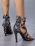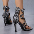Step Out in Style with Women's Snake Skin Stiletto Gladiator Sandal Boots