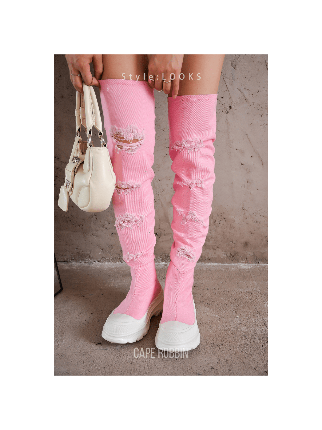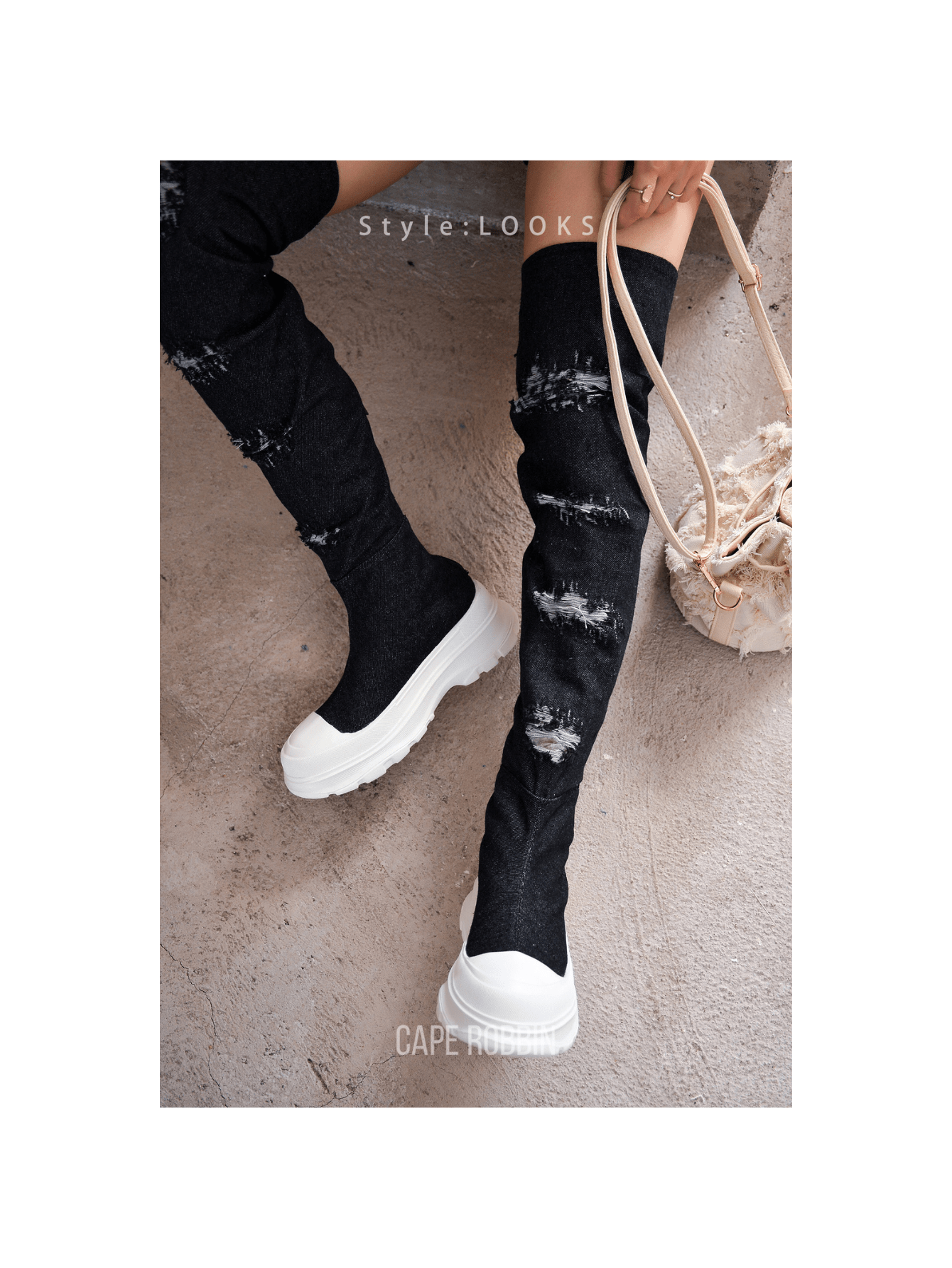 Step Up Your Style with Chunky Sole Thigh High Denim Sneakers