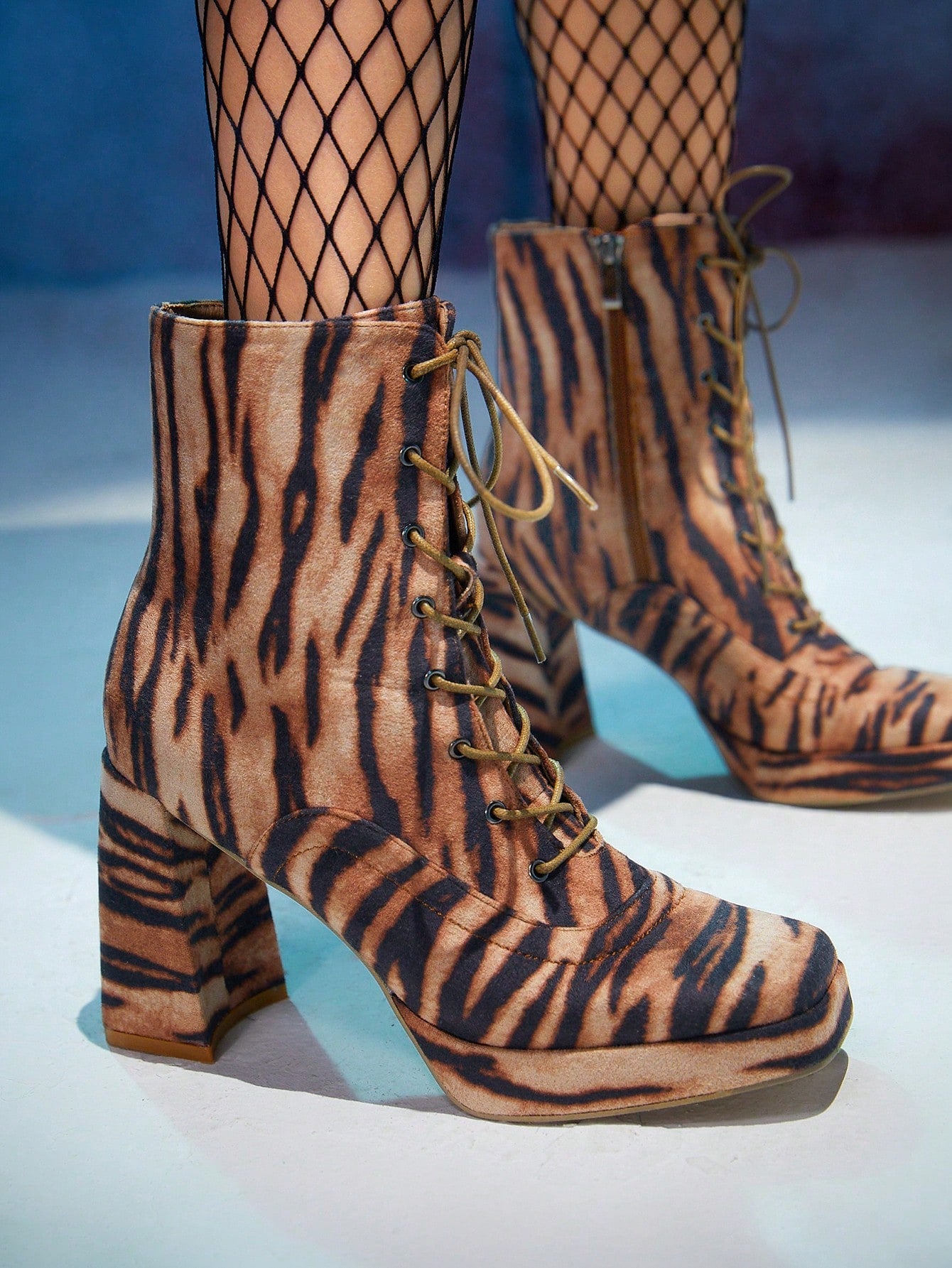 Boots. The chunky heel provides height and support while the classic lace-up design offers comfort and a secure fit. Elevate your style with this must-have footwear."