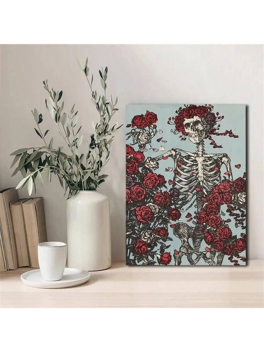 Stunning Blooming Rose Skull Canvas Wall Art - Unique Home Decor Poster