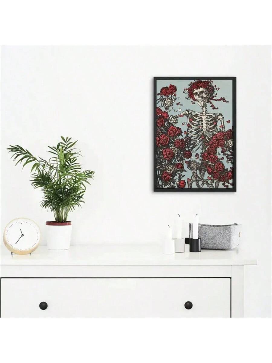 Enhance your home decor with this stunning blooming rose skull canvas wall art. The unique design adds a touch of elegance while the canvas material creates a durable and long-lasting piece. Perfect for any room, this poster is a must-have for any art enthusiast and adds character to any space.