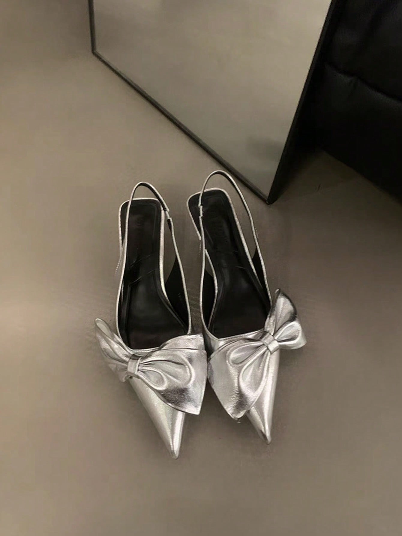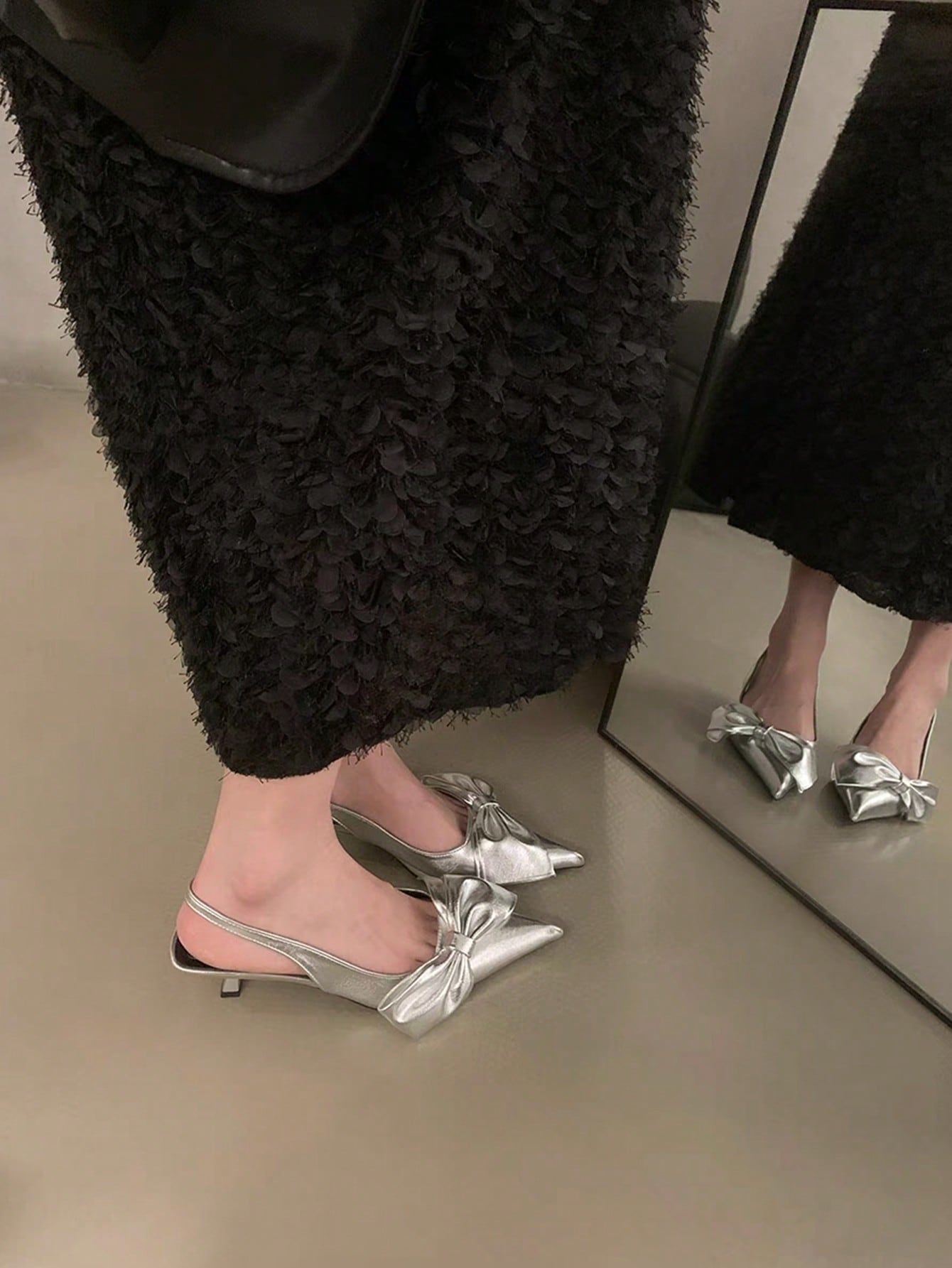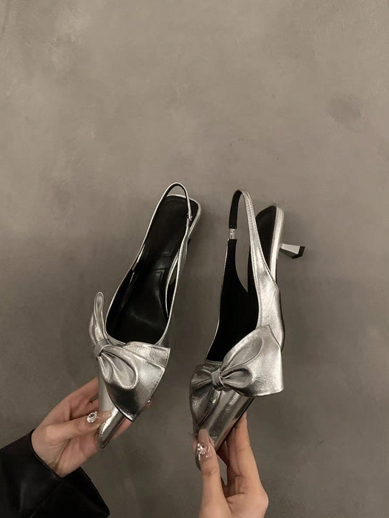 Stunning Silver Stiletto Sandals with Bow Detail – European & American Style High Heels