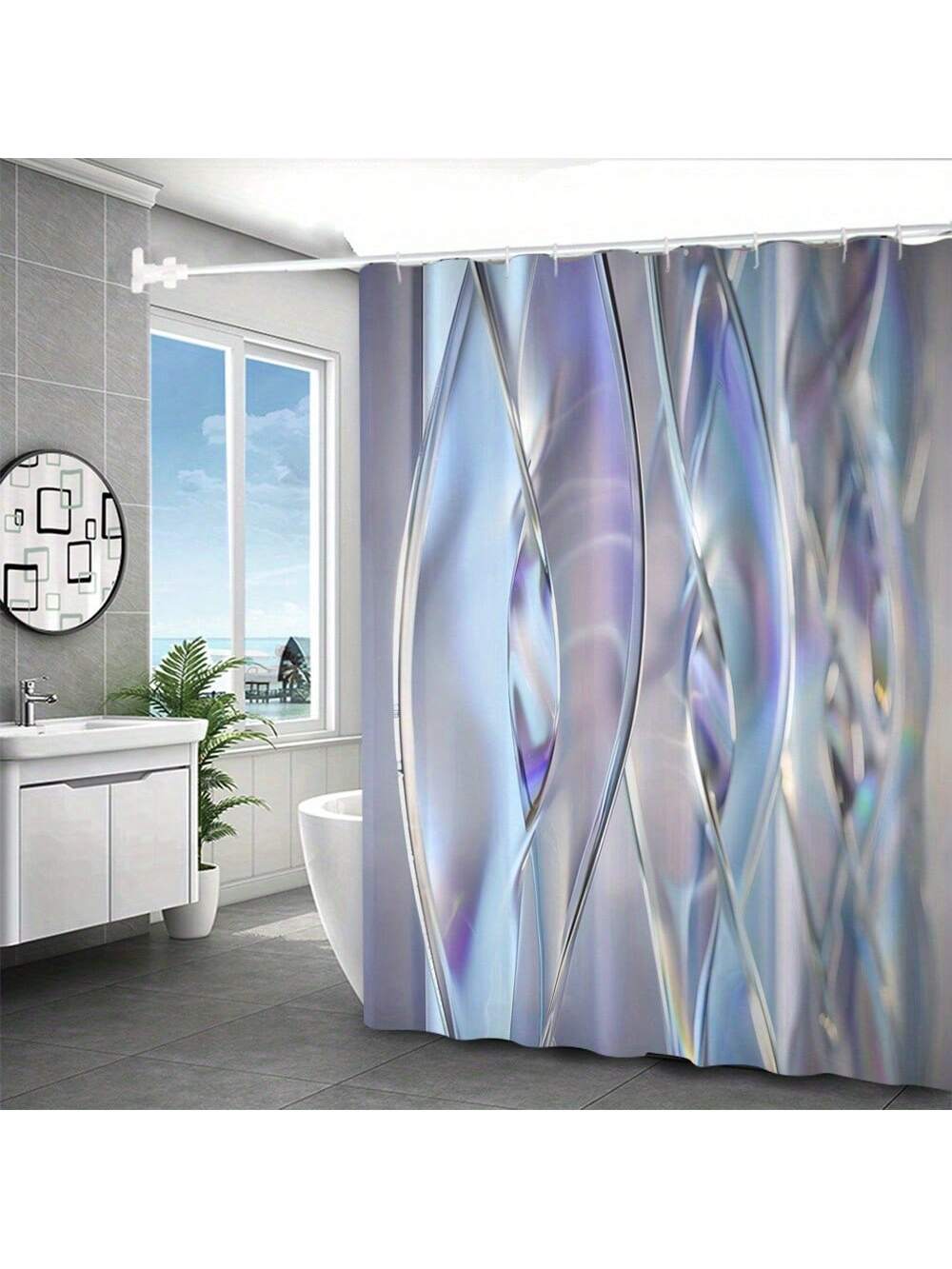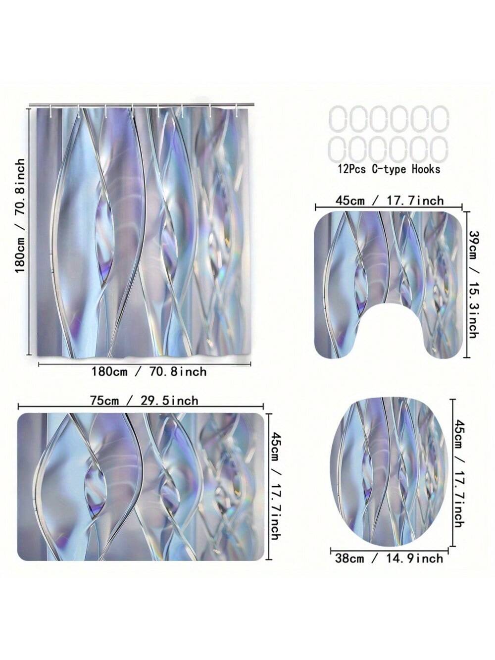 This 4-piece shower curtain set combines both style and function. The irregular stripes add a modern touch, while the digital 3D-printed design ensures a waterproof finish. Upgrade your bathroom with this stylish and practical set.