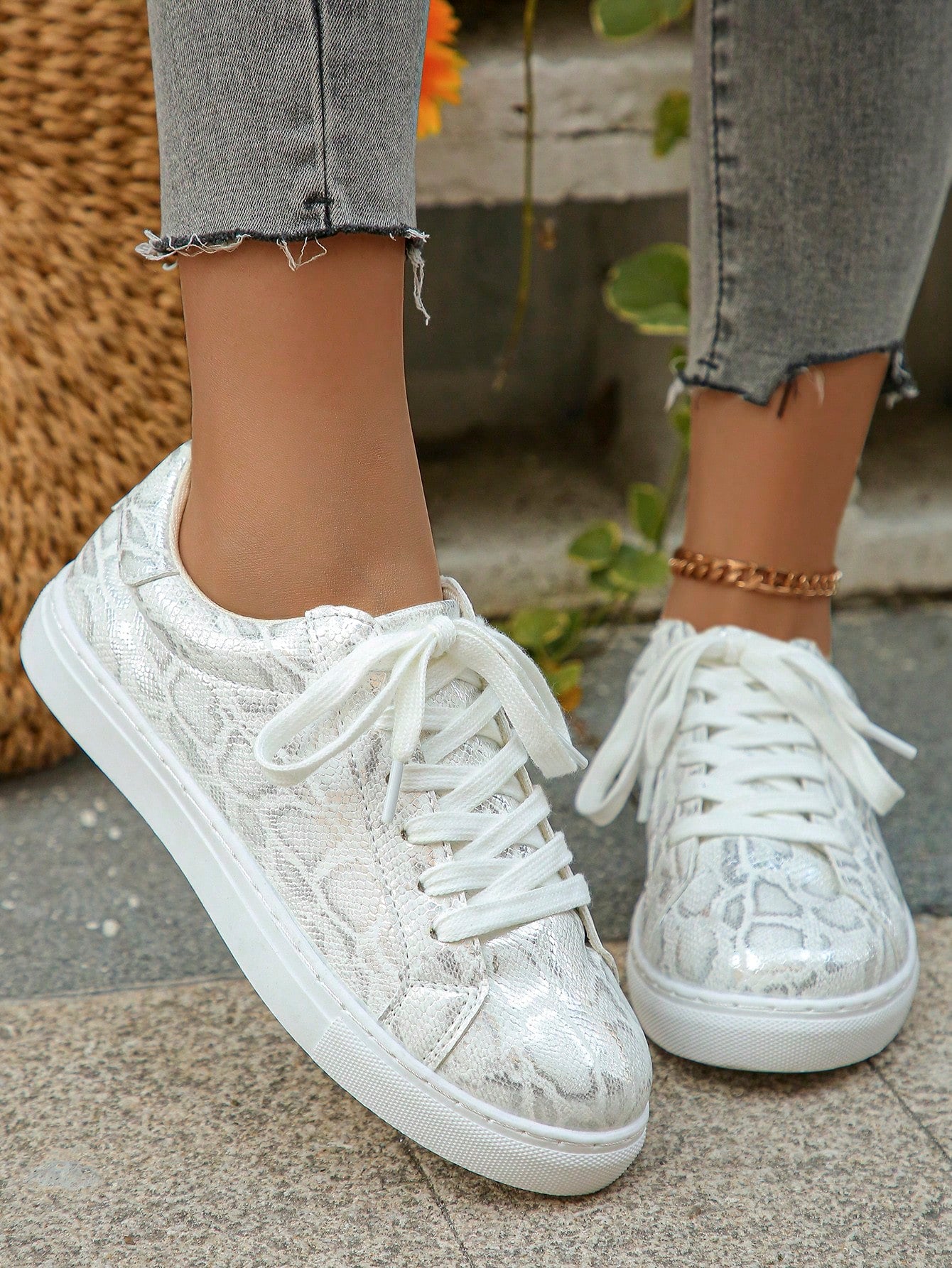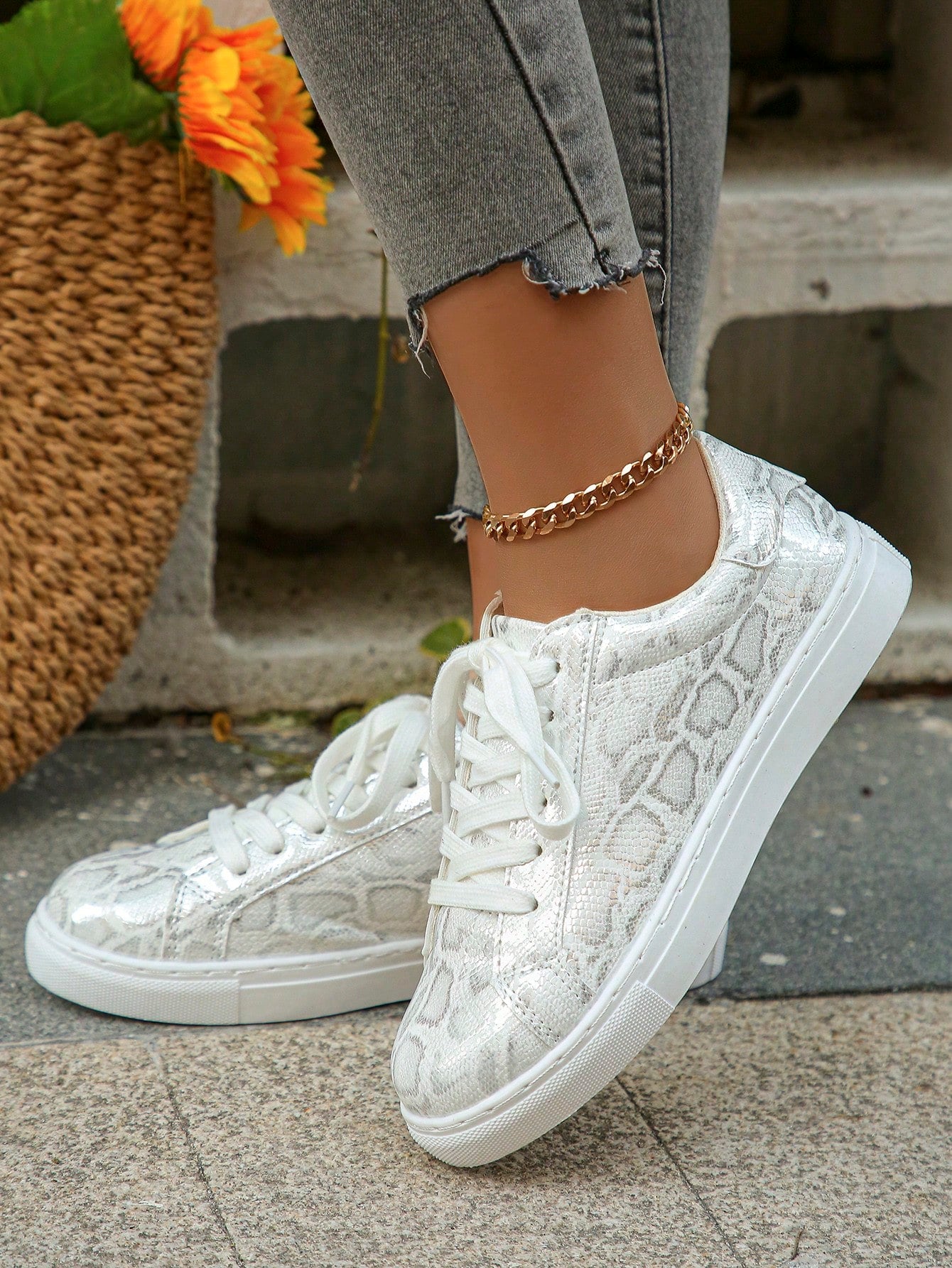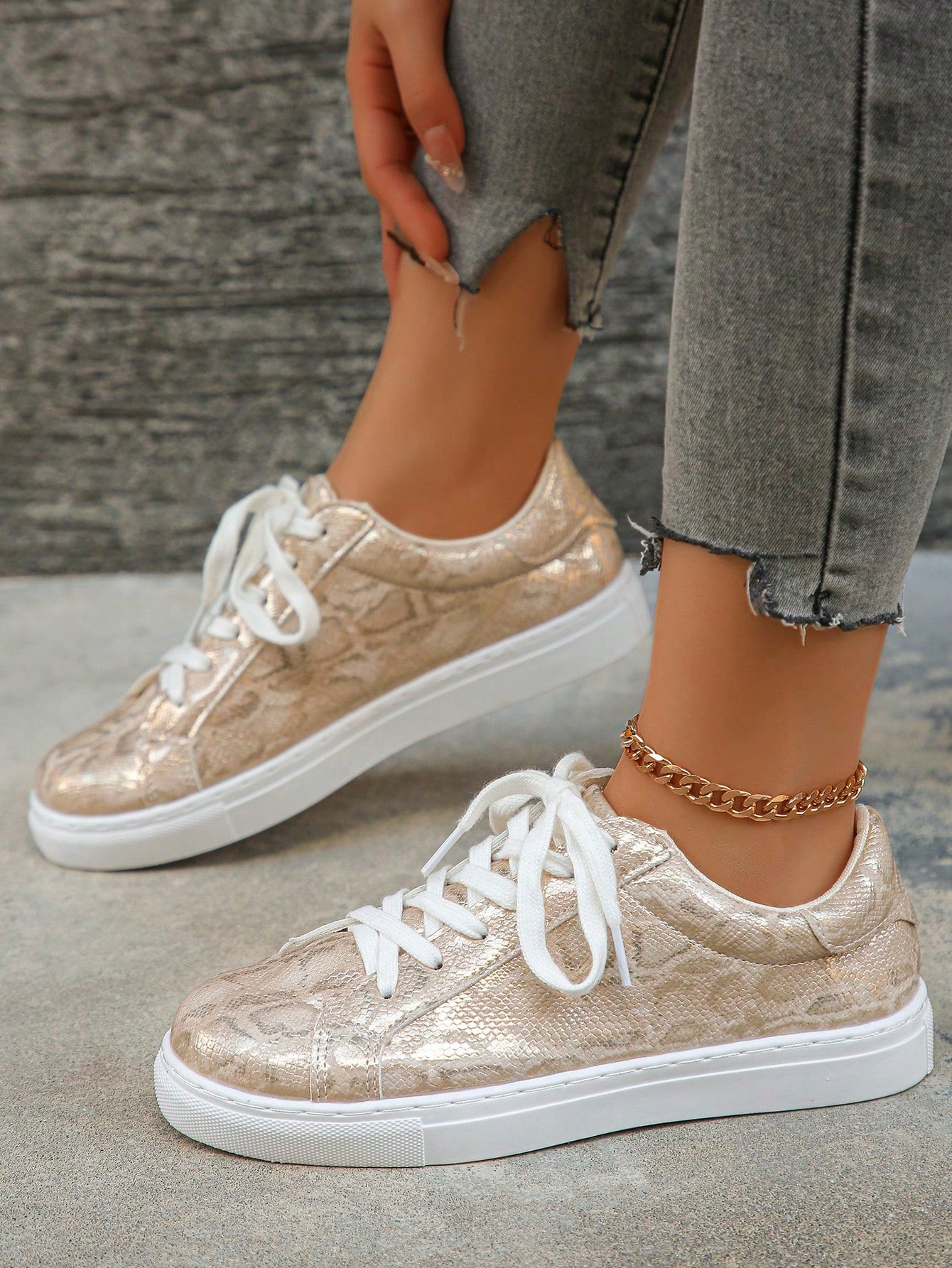 Stylish and Comfortable Gold Snake Print Sneakers for Women