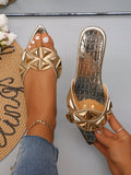 Stylish and Comfortable Women's Gold Outdoor Metal Flat Sandals: Perfect for Casual or Holiday Wear