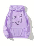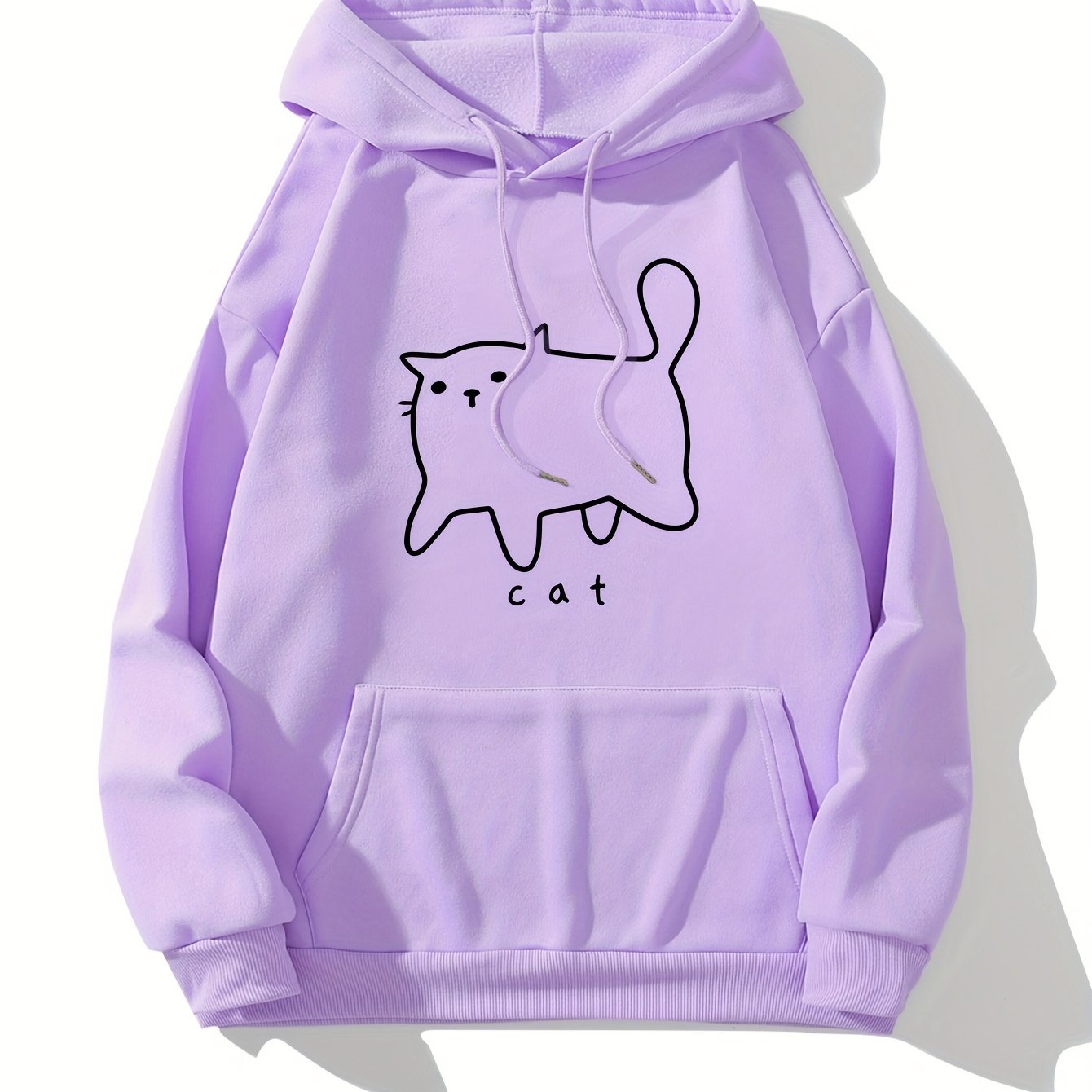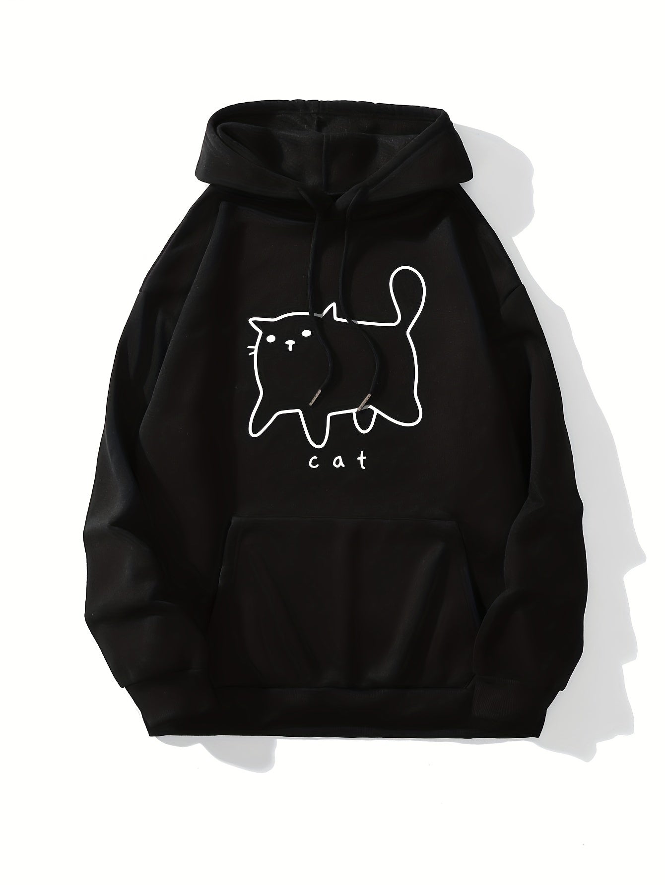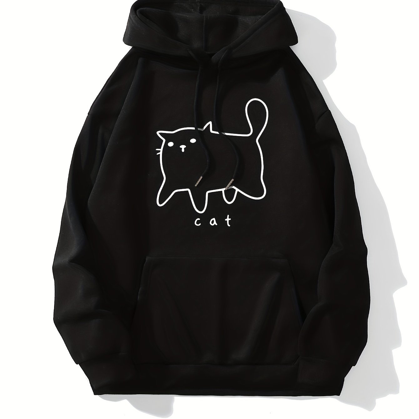 Stylish and Functional Cute Cat Print Hoodie - Women's Sweatshirt with a Versatile Drawstring Kangaroo Pocket