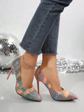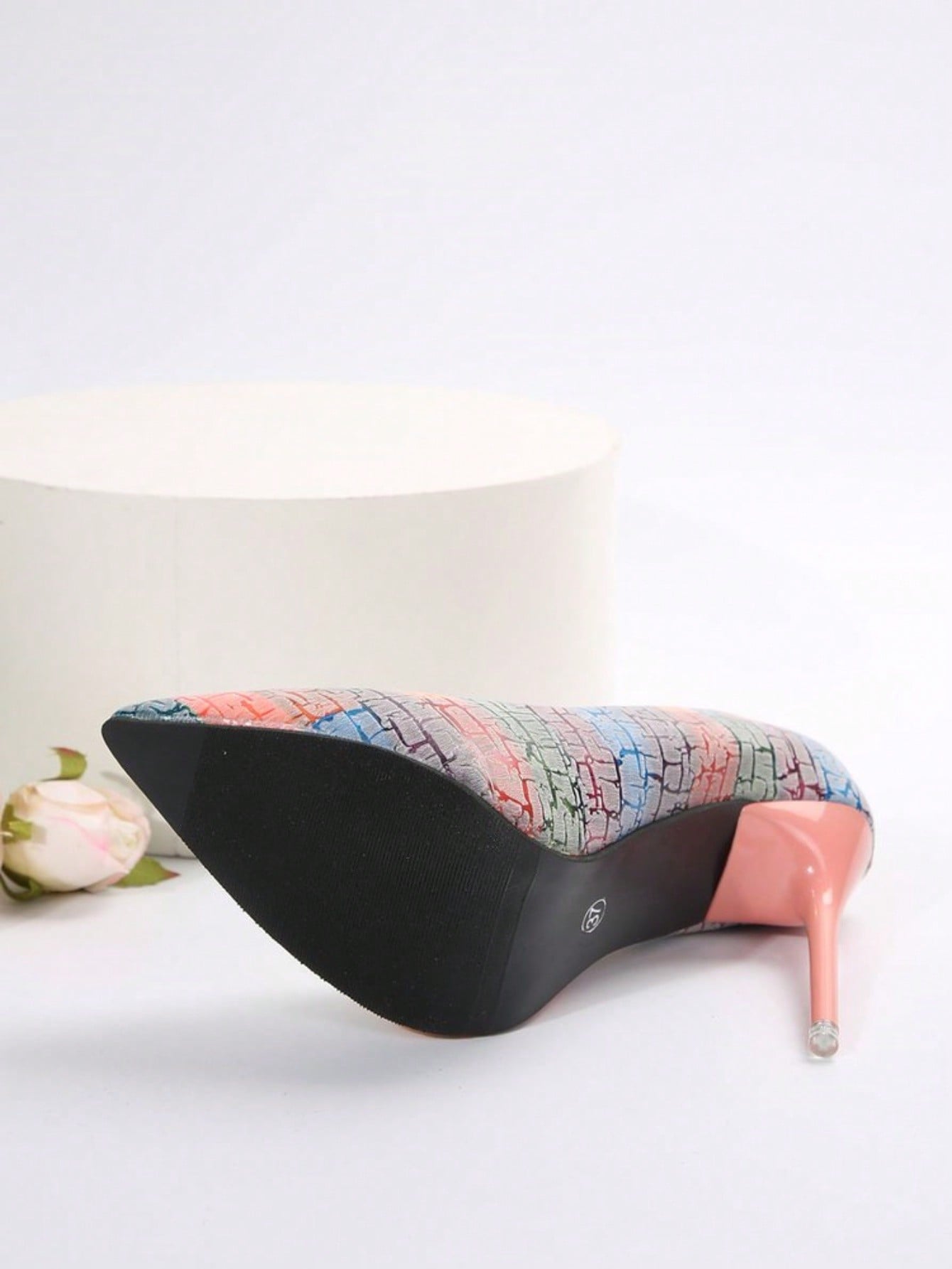 Expertly designed with a pointed toe and high heel, these printed heels add a touch of style to any outfit. Made for women who value versatility and fashion, they enhance confidence and elevate any look. Experience the perfect blend of comfort and chic with these heels.