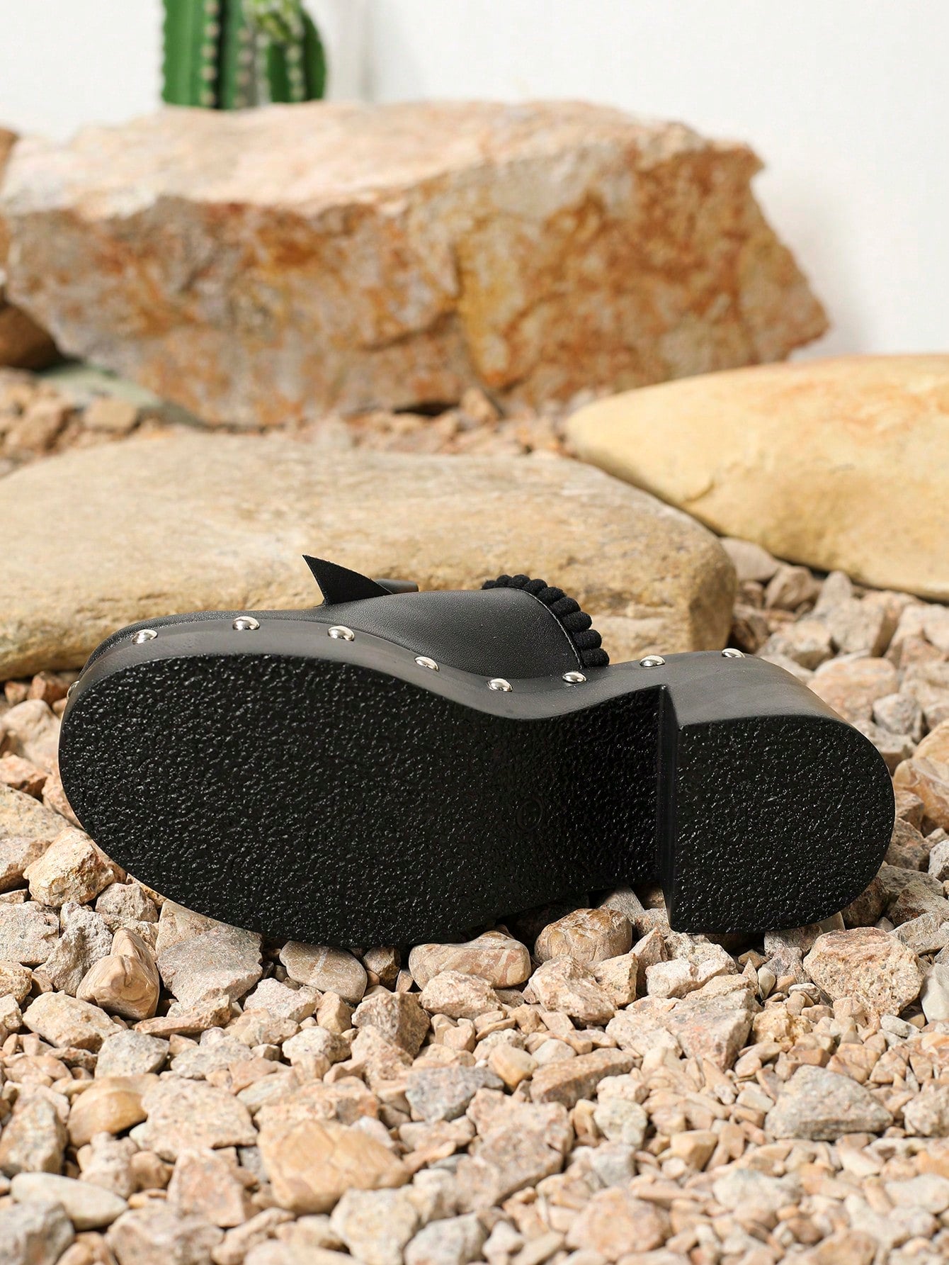 Stylish Black Pointy Toe High-Heeled Slippers: Chic Shoes for Fashion-Forward Women