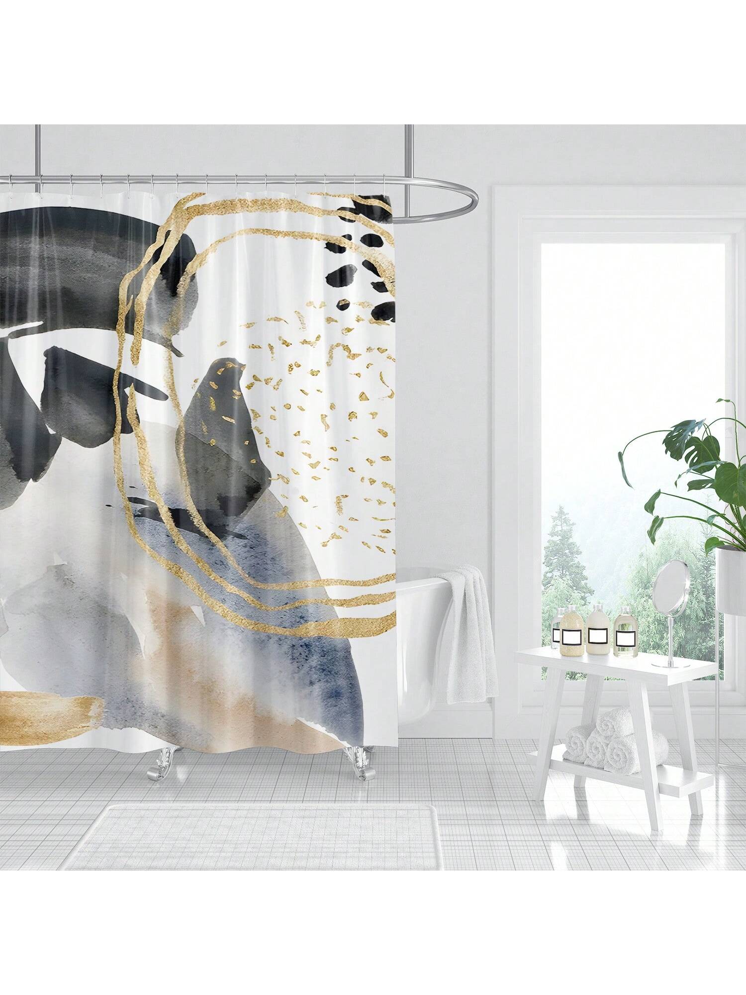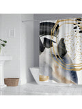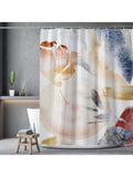 Stylish Marble Pattern Shower Curtain with Blue and Orange Stripes - Bathroom Decor Liner 180x180cm