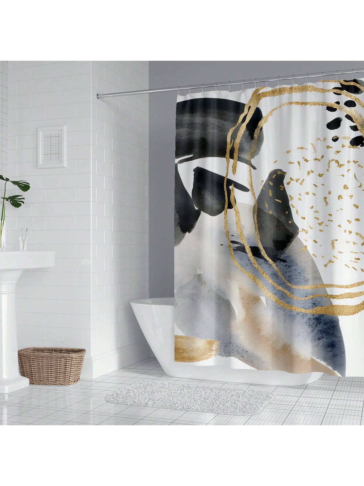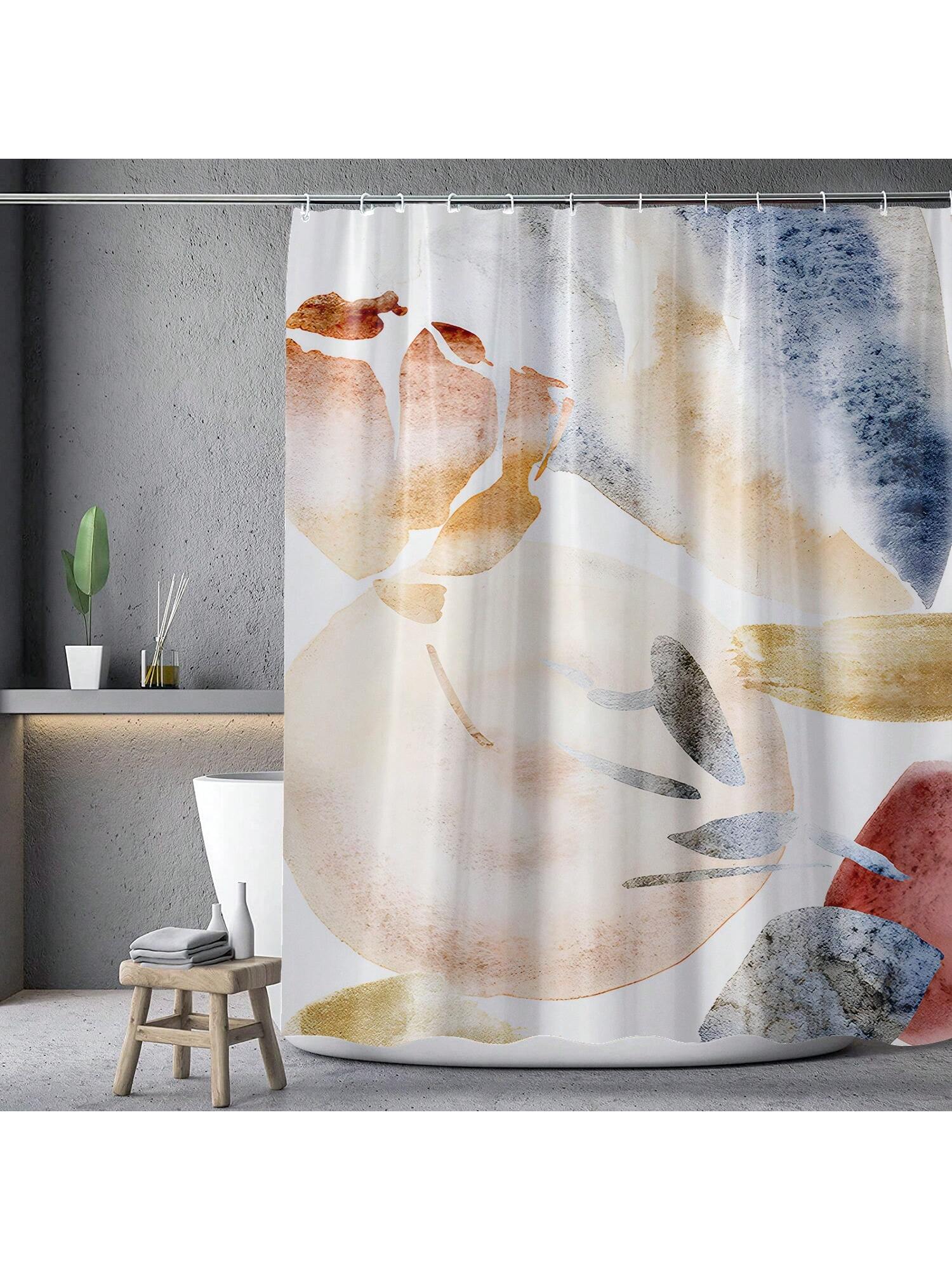 shower curtain features blue and orange stripes to elevate your bathroom decor. Made with a durable liner, it measures 180x180cm for full coverage. Add a touch of sophistication and functionality to your daily routine."