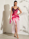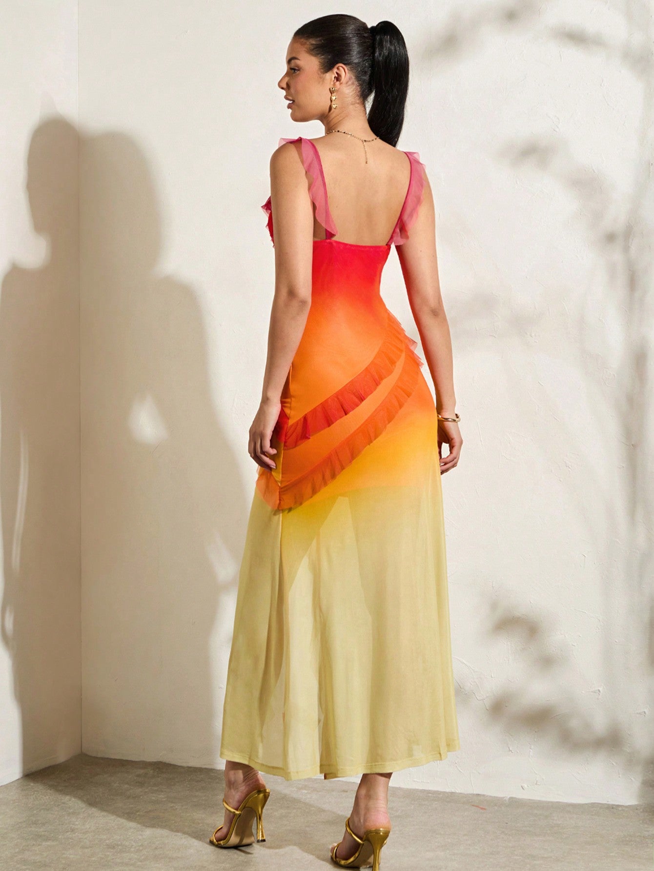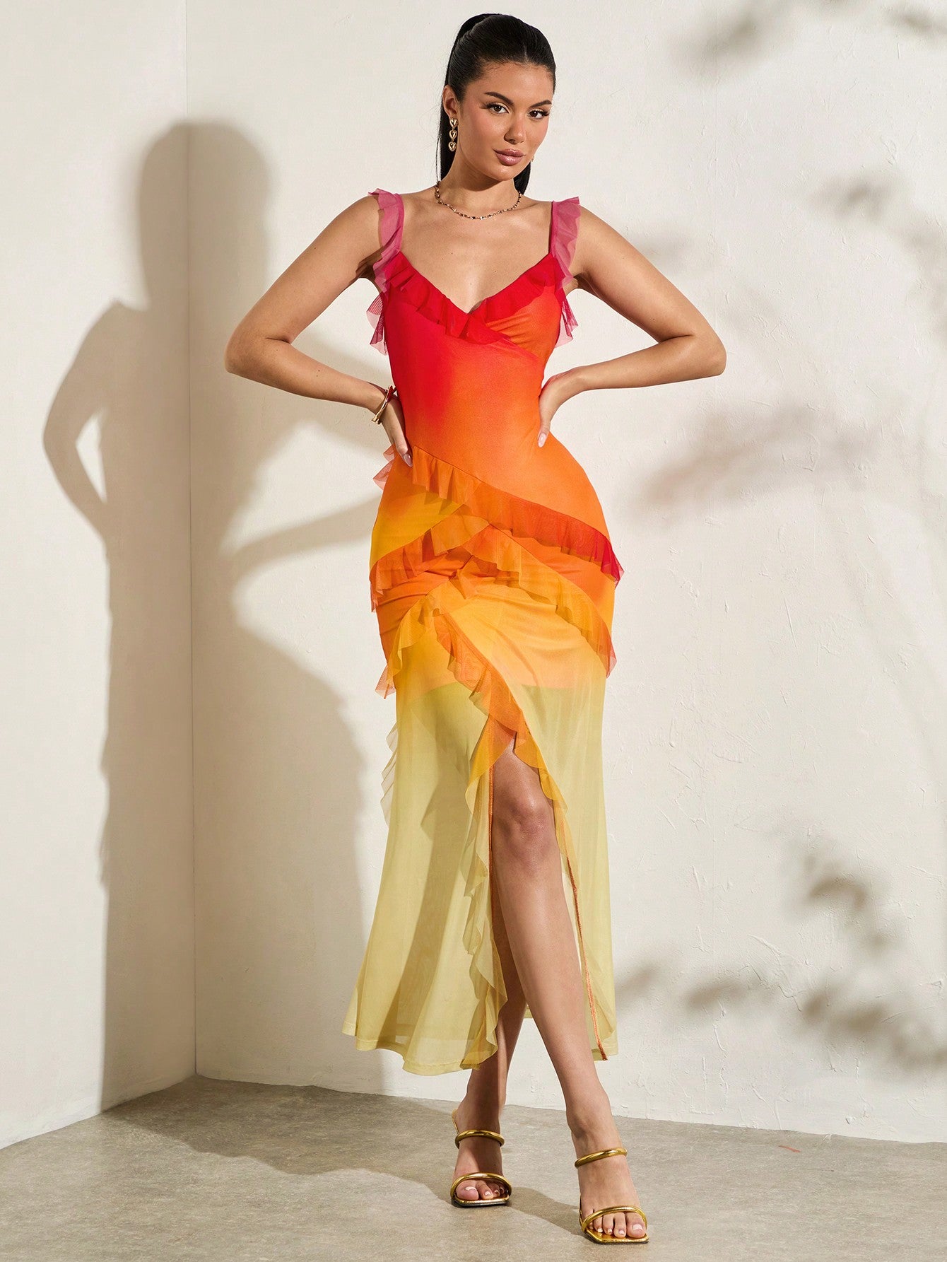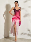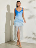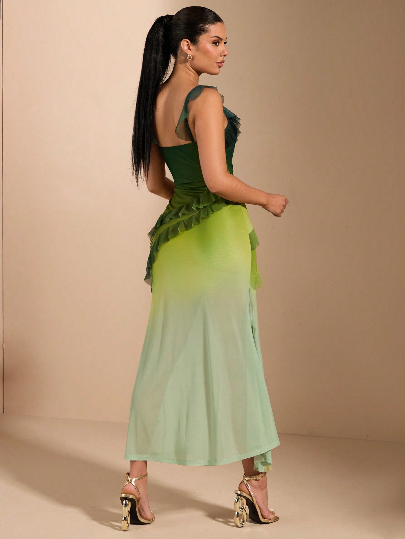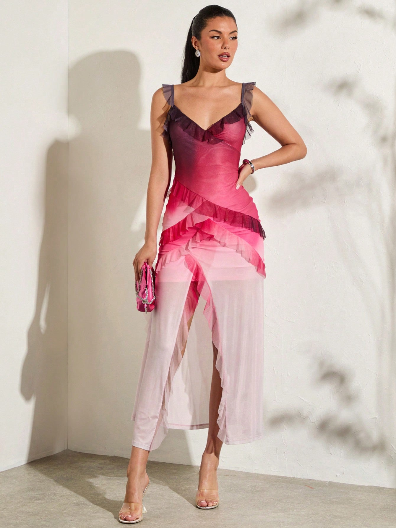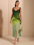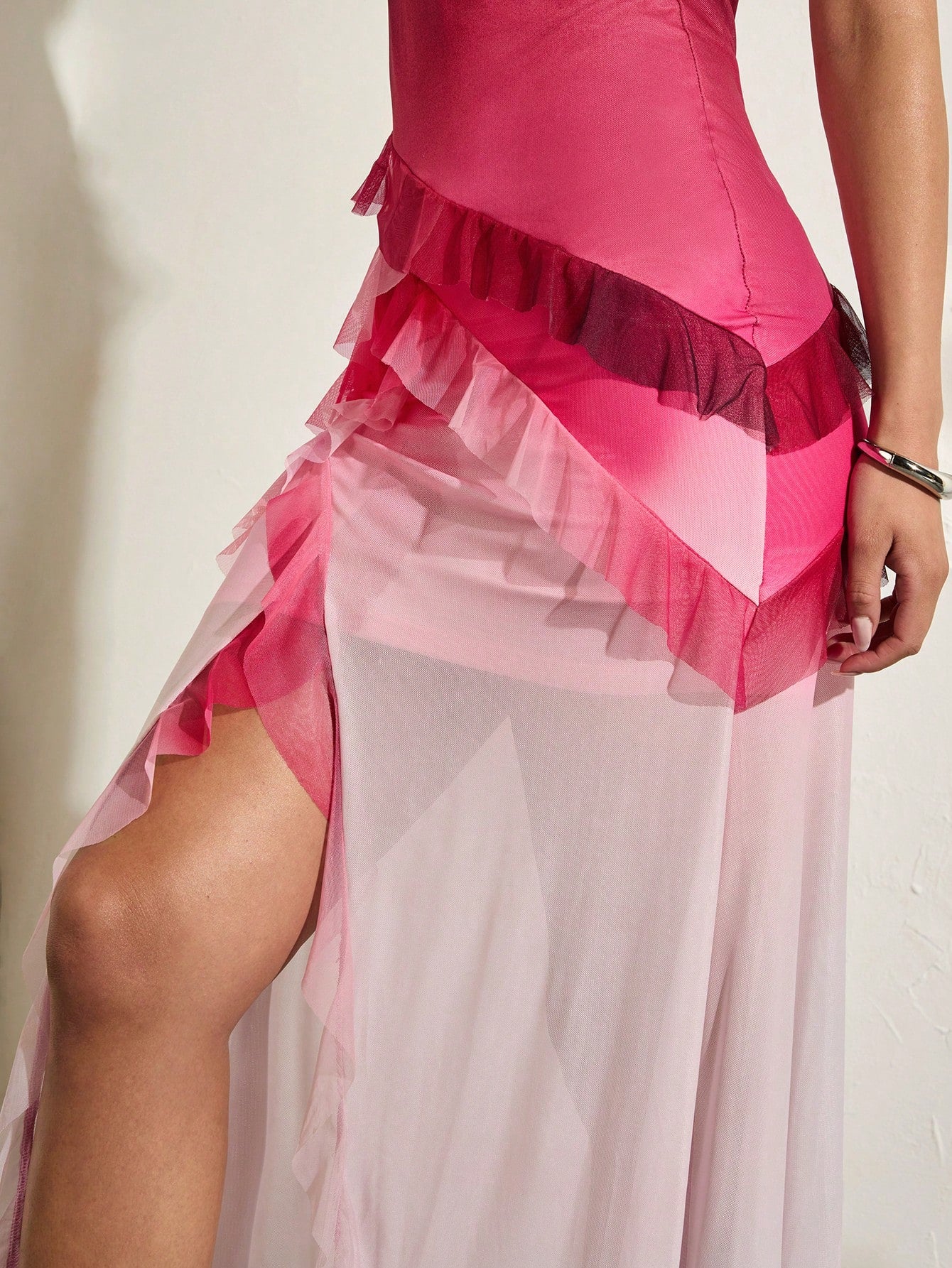 Stylish Sheer Elegance: Asymmetrical Crossed Folding Long Dress with High Side Slit