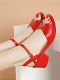 Elevate your summer style with these chunky heel sandals! Featuring a chic ankle strap, these stylish steps provide stability and comfort for all-day wear. Perfect for adding a touch of sophistication to any outfit. Step into the season with confidence.