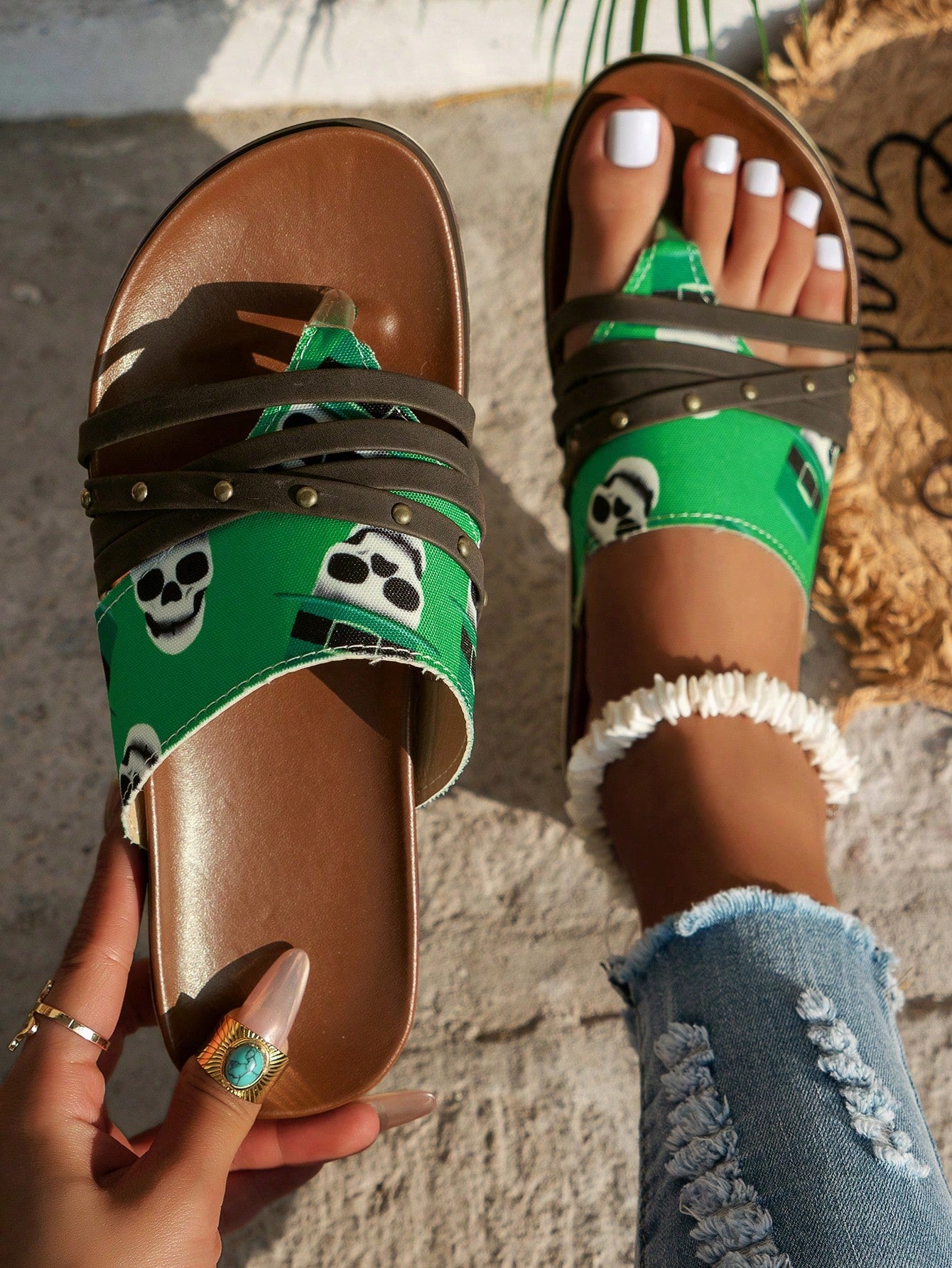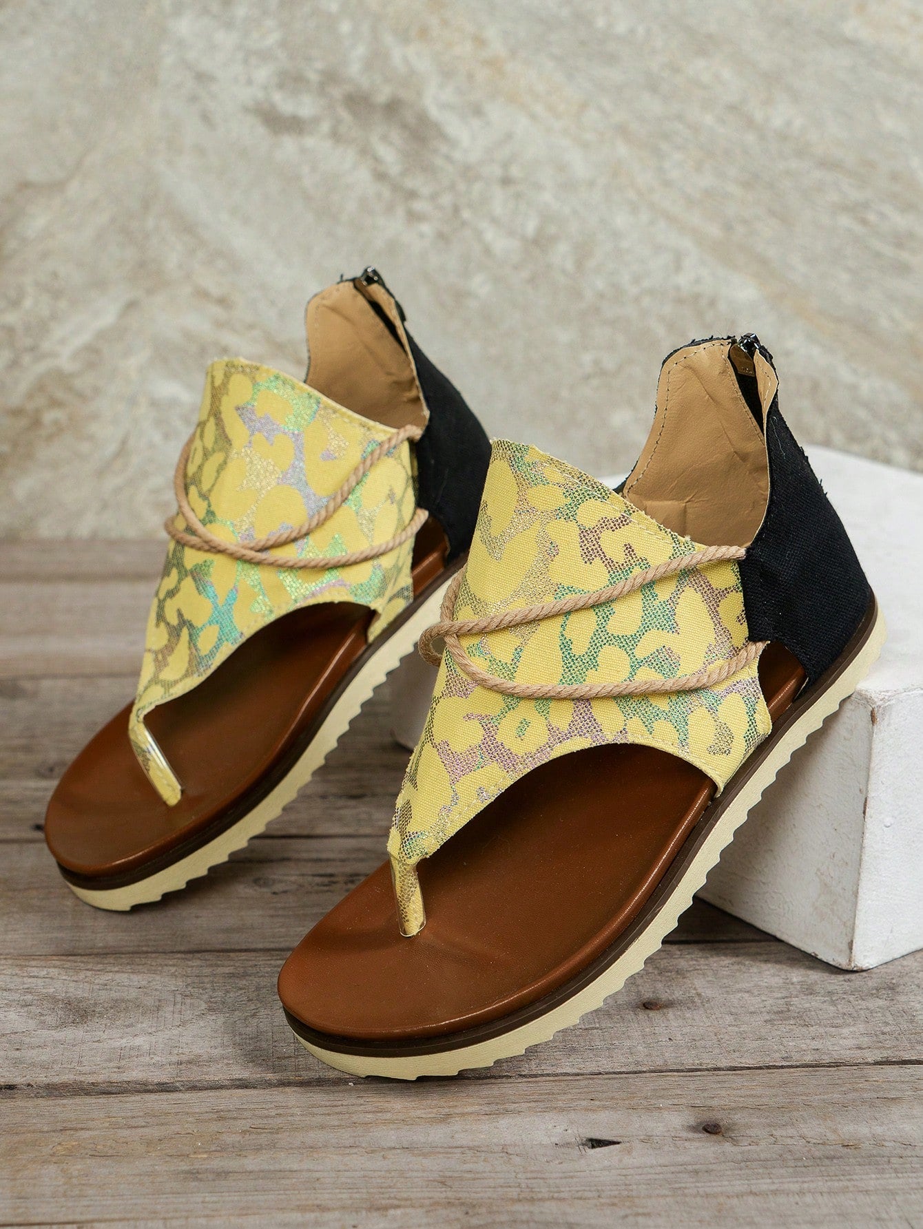Sandals from our Women's Large Size 2023 Collection offer a unique and trendy look. With a range of vibrant prints, these sandals are perfect for summer and provide both style and comfort. Available in a large size for a perfect fit."