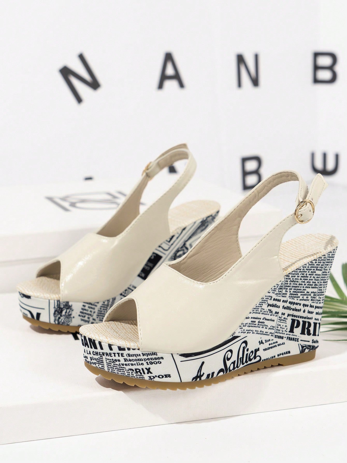 Stylish Waterproof Platform High Heel Sandals with Unique Newspaper Buckle Design