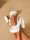 Stylish White Lace Platform Heels: Perfect for Party and Wedding Season