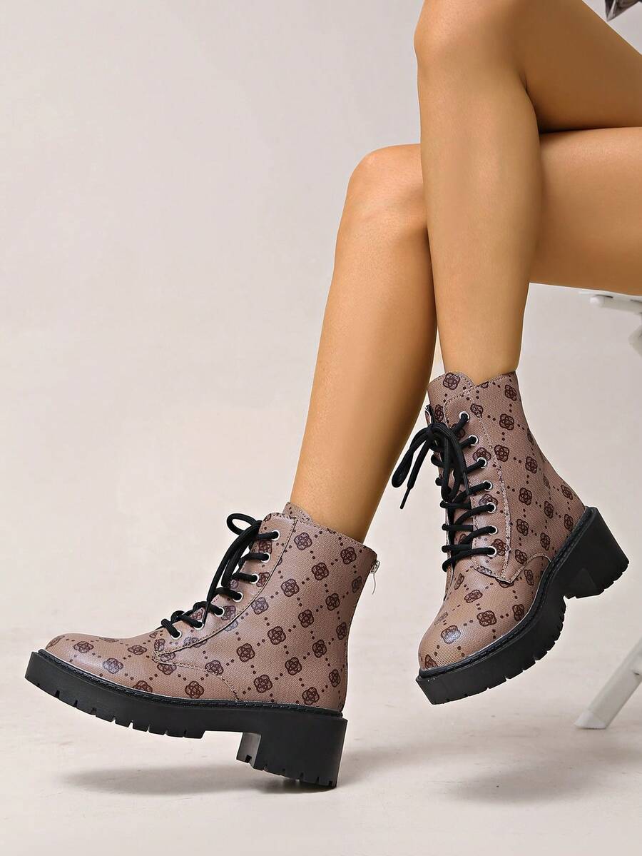 Stylish Women's Thick Sole Motorcycle Boots for Autumn & Winter – Black & White Lace-Up Leather Footwear