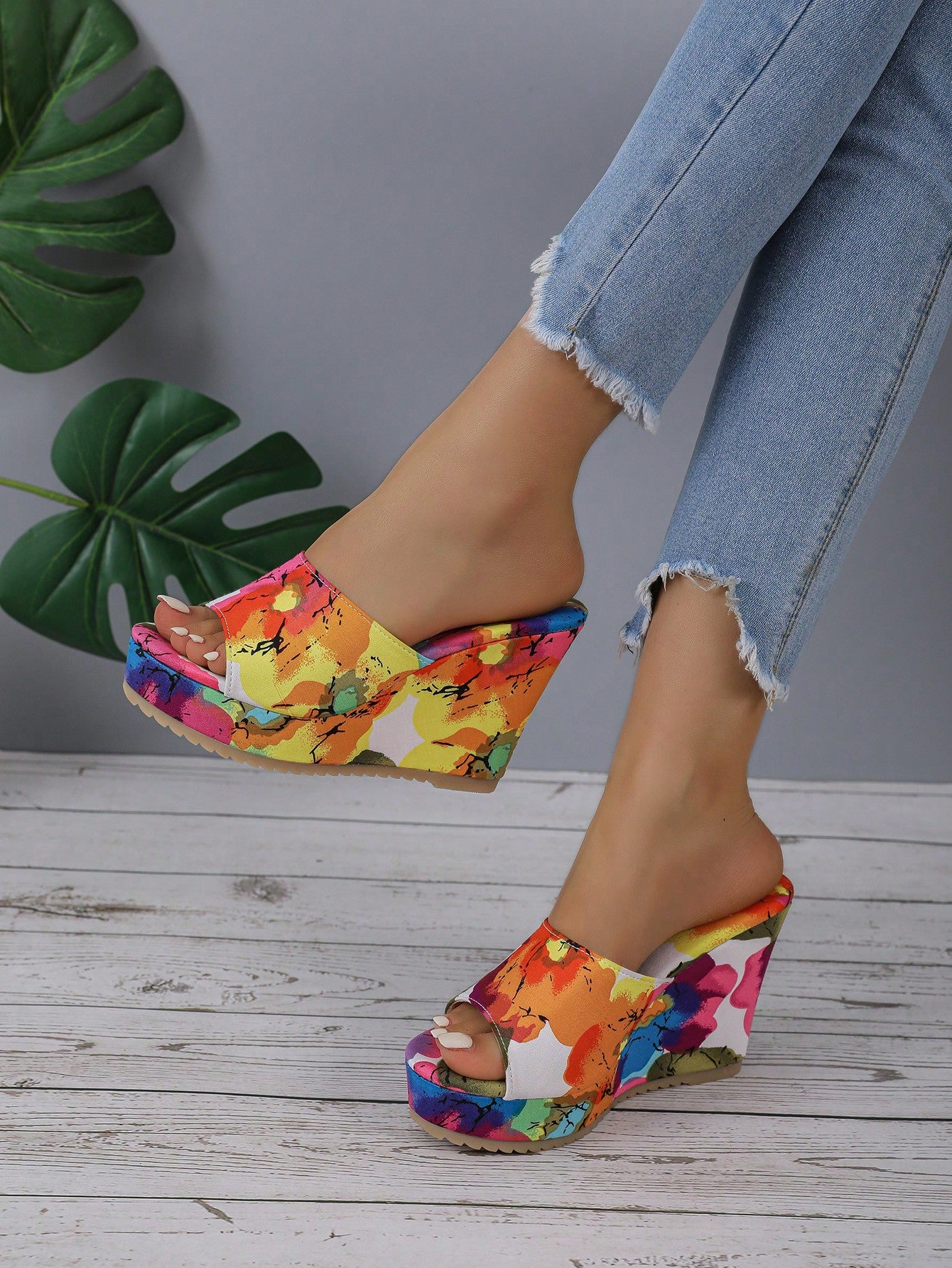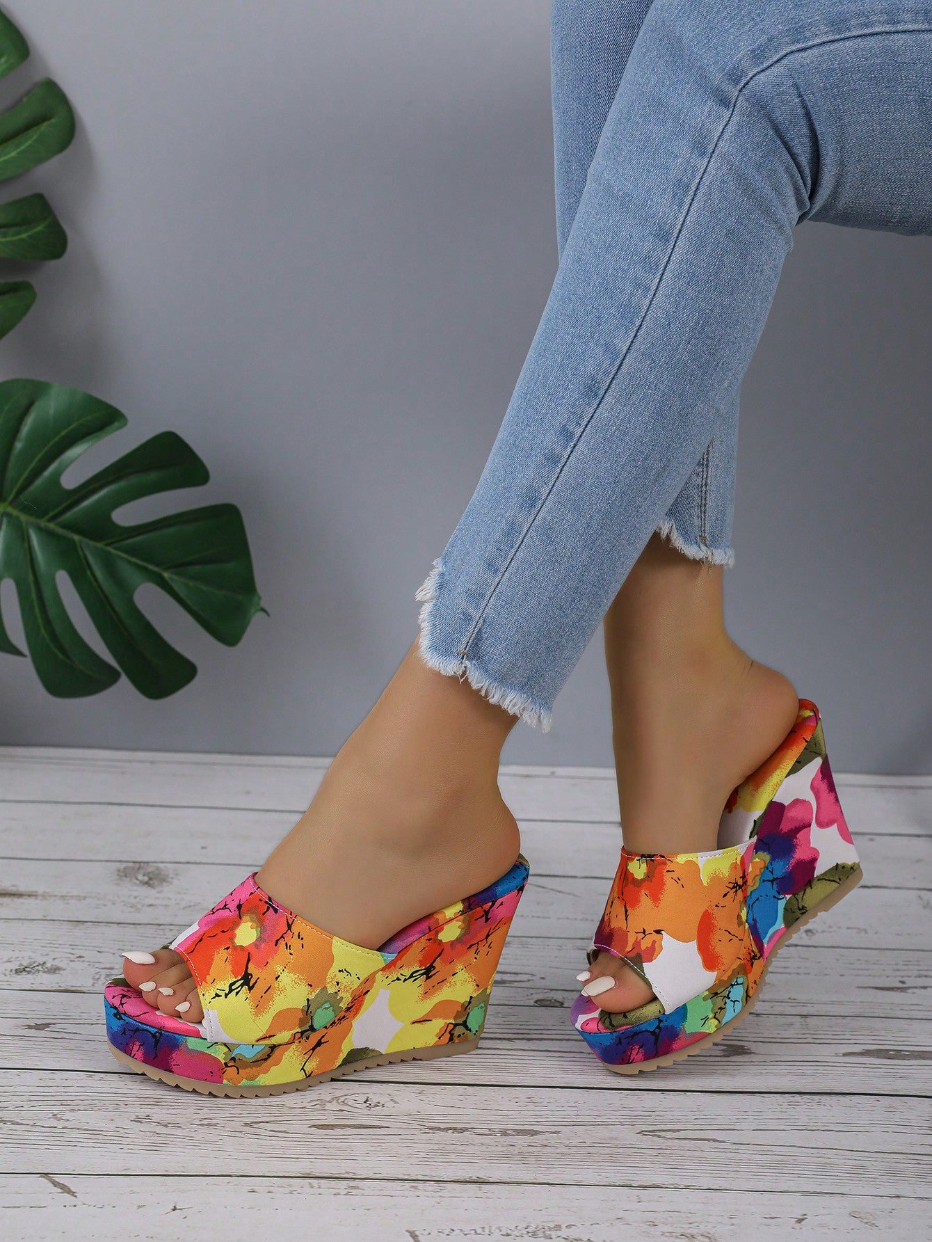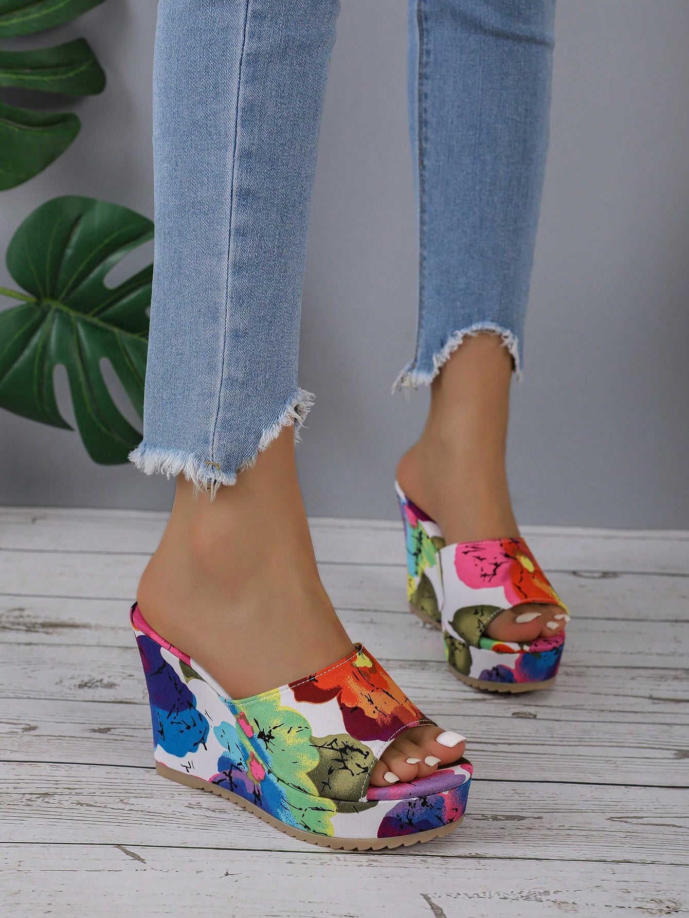 Summer Blossom Wedge Slide Sandals - Floral Fashion for Women