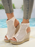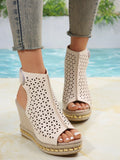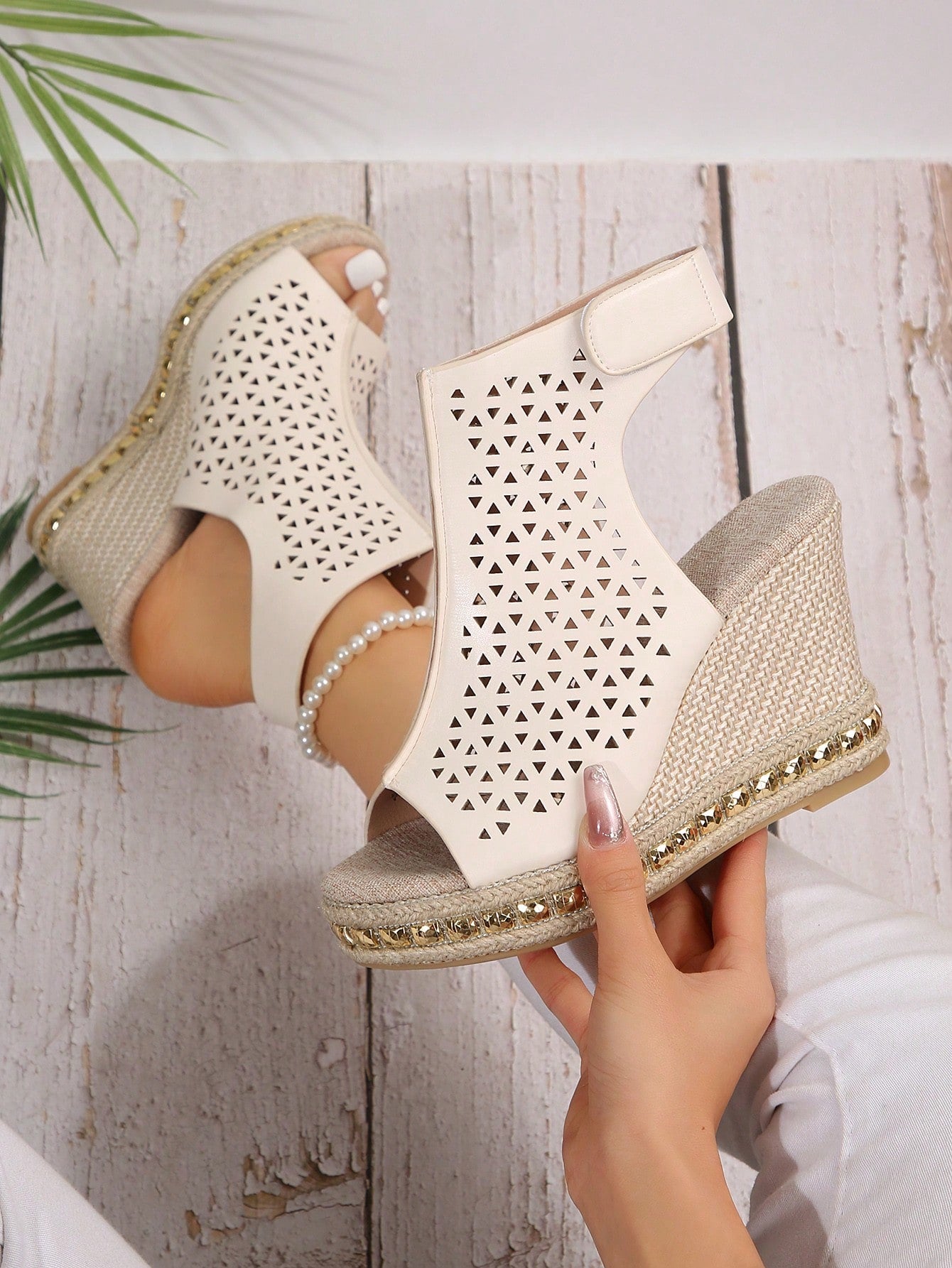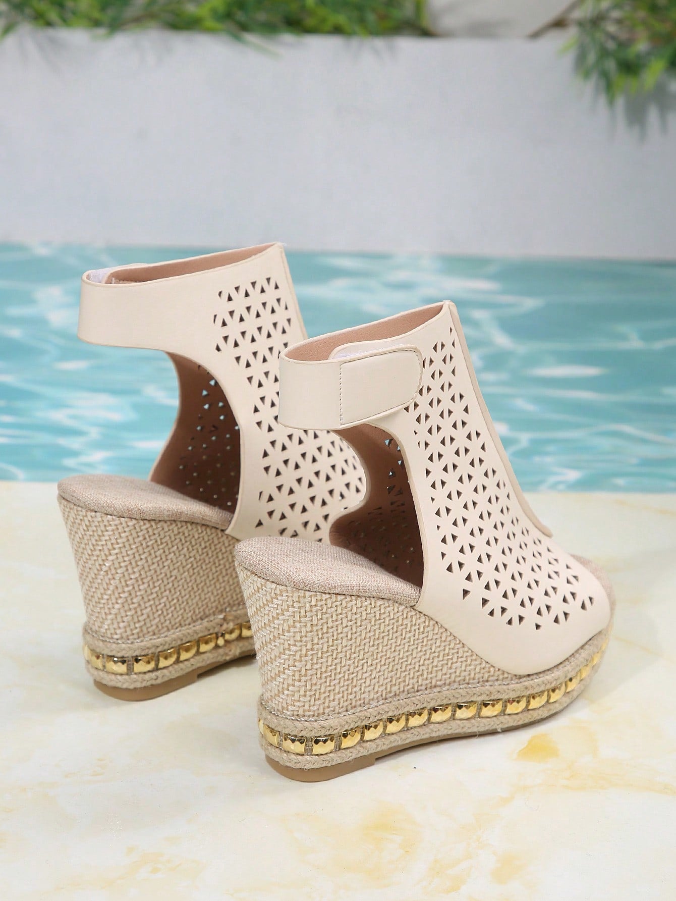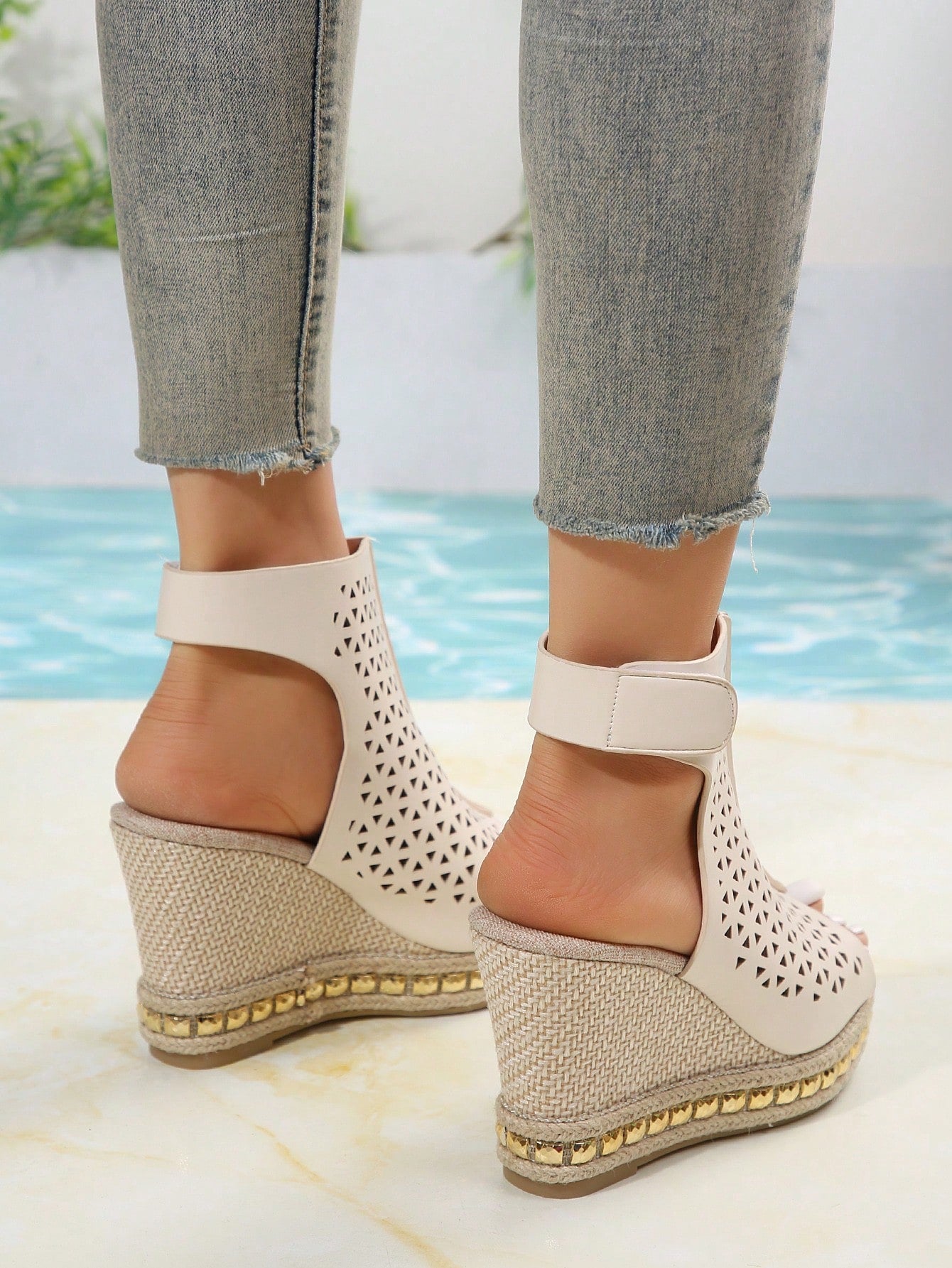 Summer Chic: Beige Leather Strap Wedges for Daily Comfort & Height