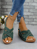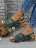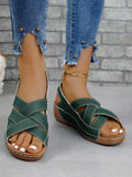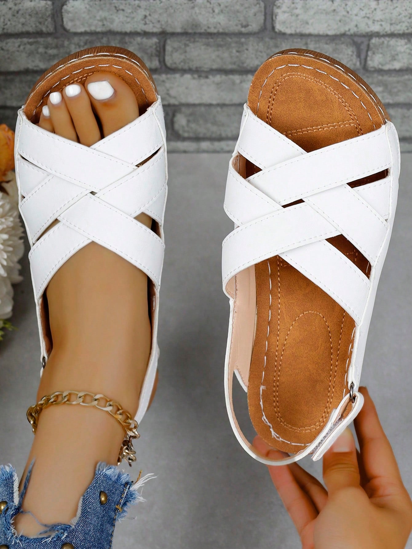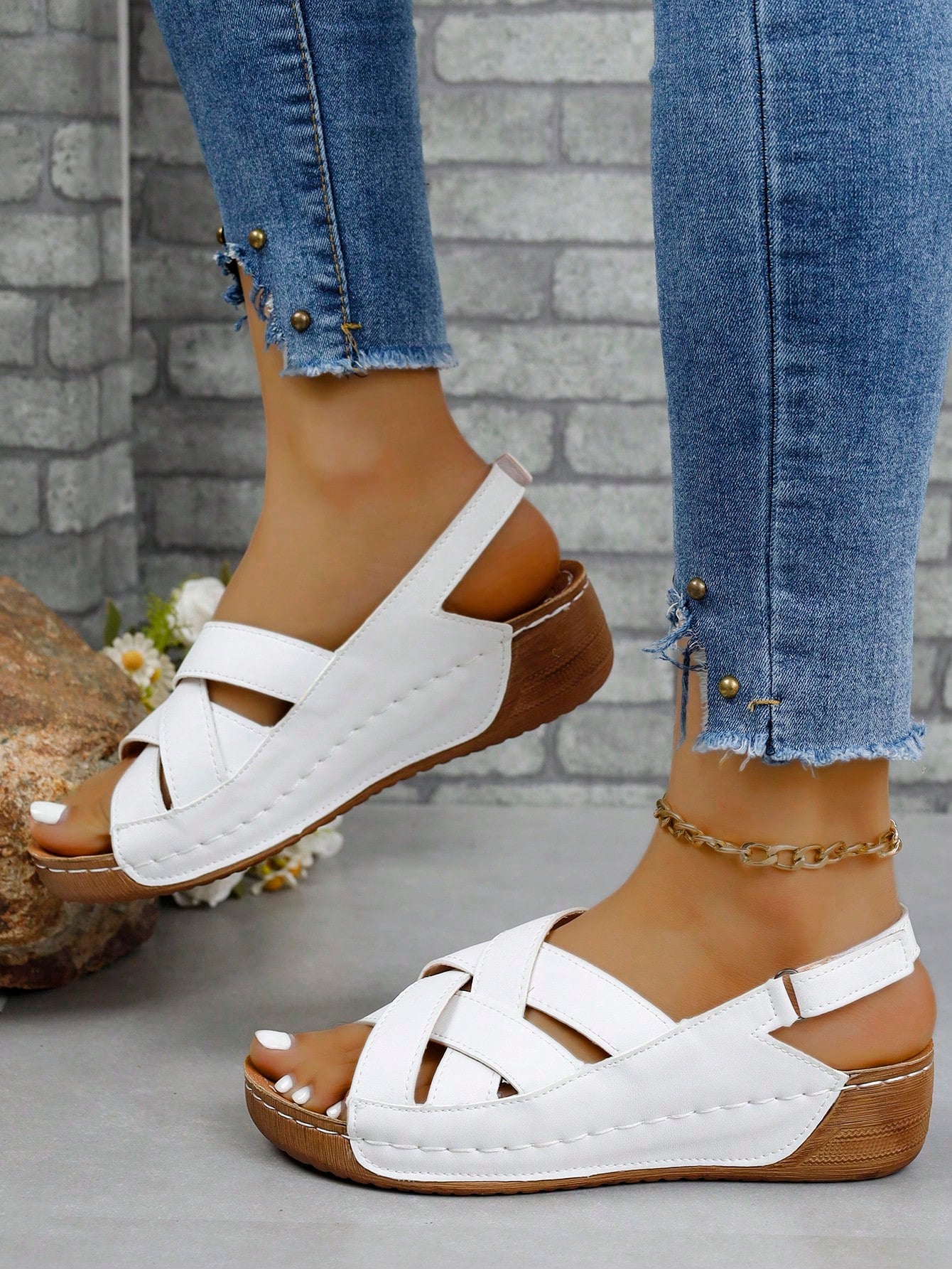 Summer Chic: Black and White Wedges with Ankle Strap and Cross Strap Detail