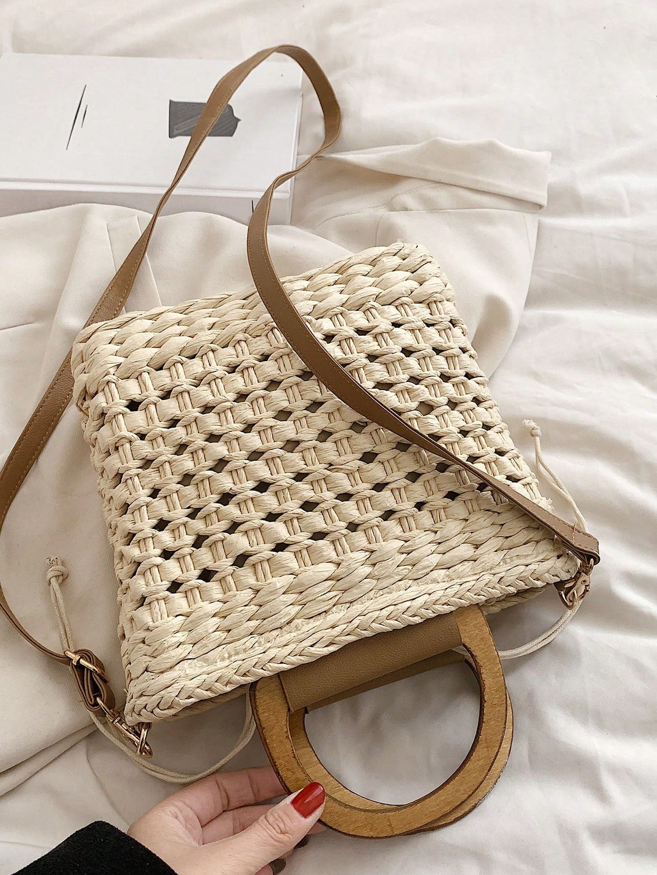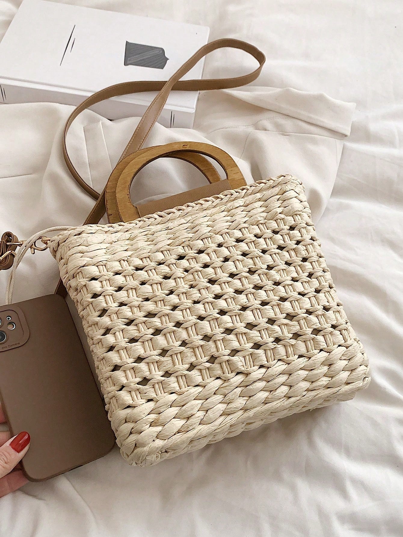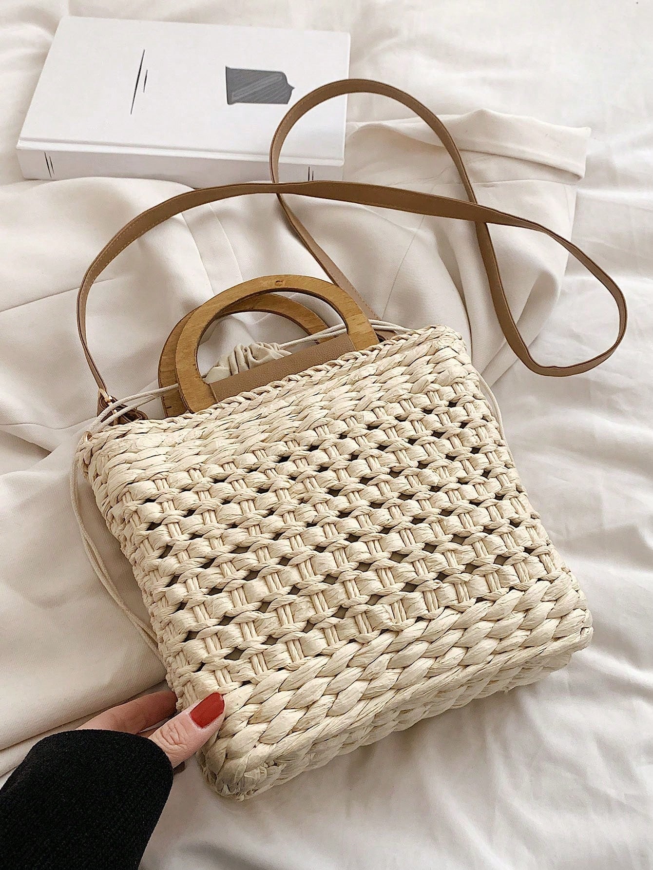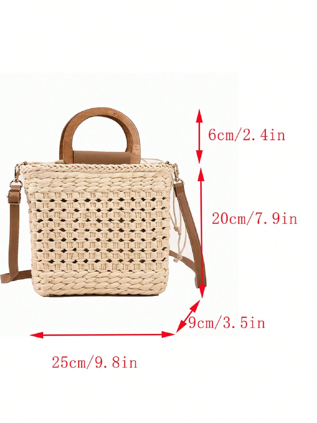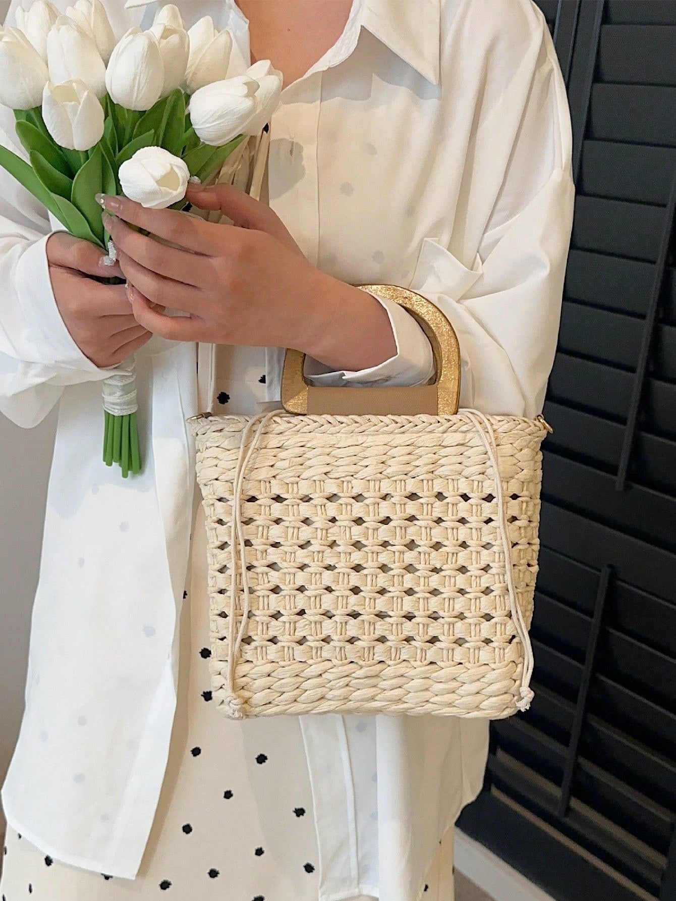 Summer Chic: Handwoven Wooden Handle Straw Beach Bag