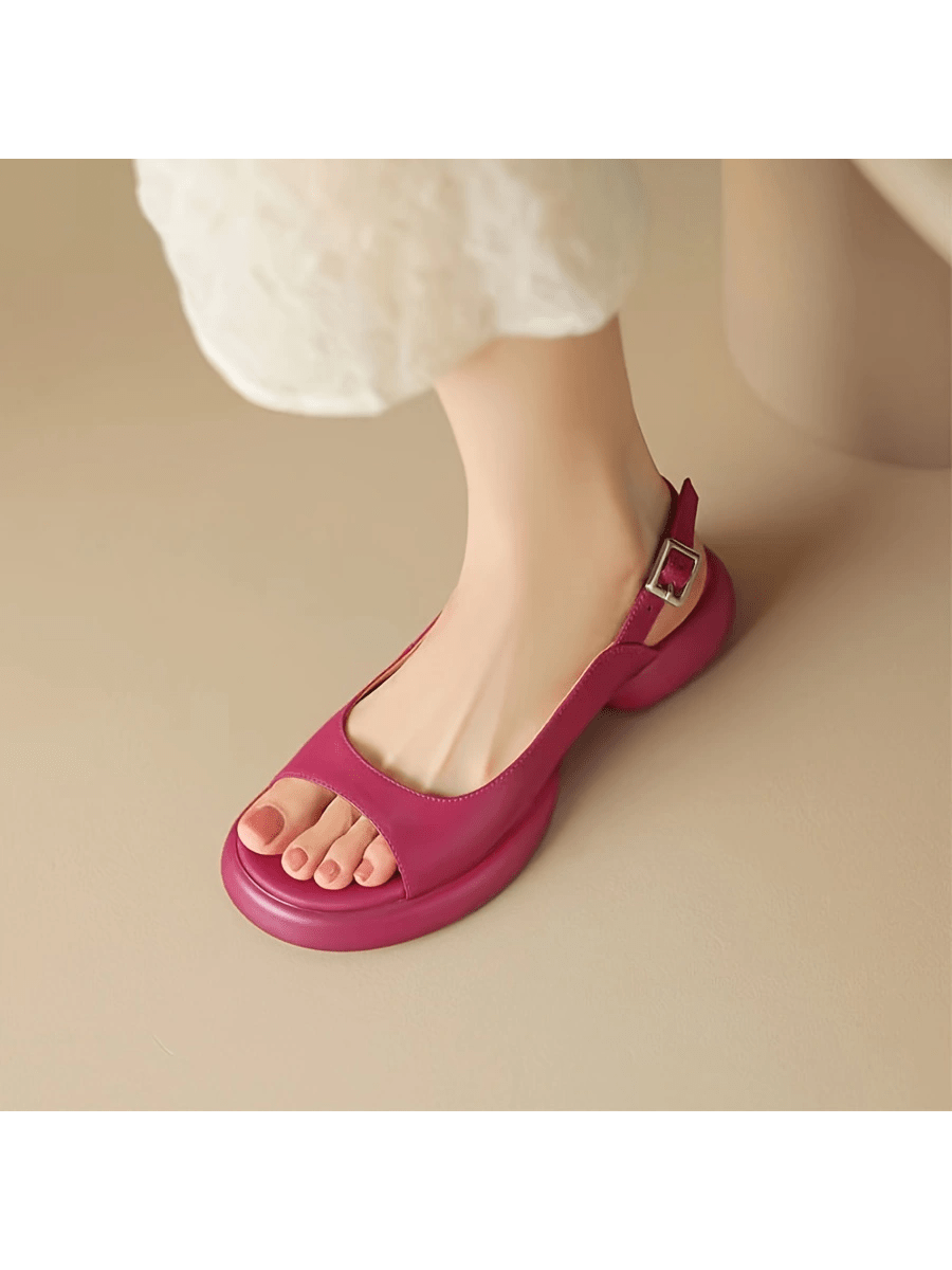 Summer Chic: Pink Thick Heel French Peep Toe Sandals for Fashionable Ladies